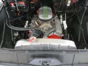 A truly exceptional interior which is a period work of art. The cushioned black bench seat is in excellent condition and provides a perfect seating position to offer brilliant visibility through the one-piece wrap-around windshield. The instruments are grouped in a singular triangular cluster all functioning and illuminated in a beautiful light green. The colour coded metal dash with chrome knobs and controls look stunning and a period retro sound system is cleverly installed to work in perfect harmony with the rest of the controls. Quality black carpeting is fitted and secured by ornate chrome tread plates and are protected by rubber Chevrolet mats. Fabulous in all areas.