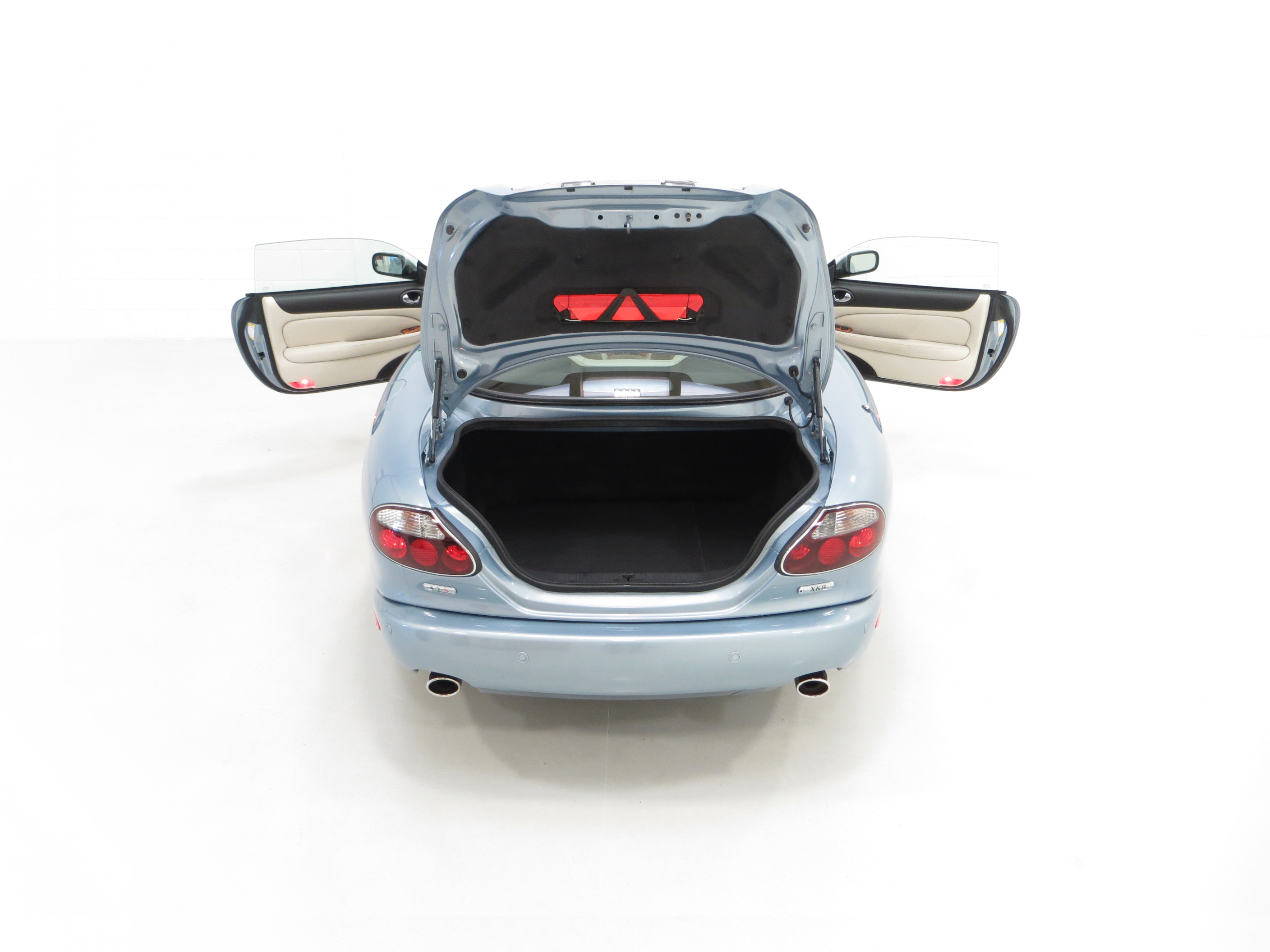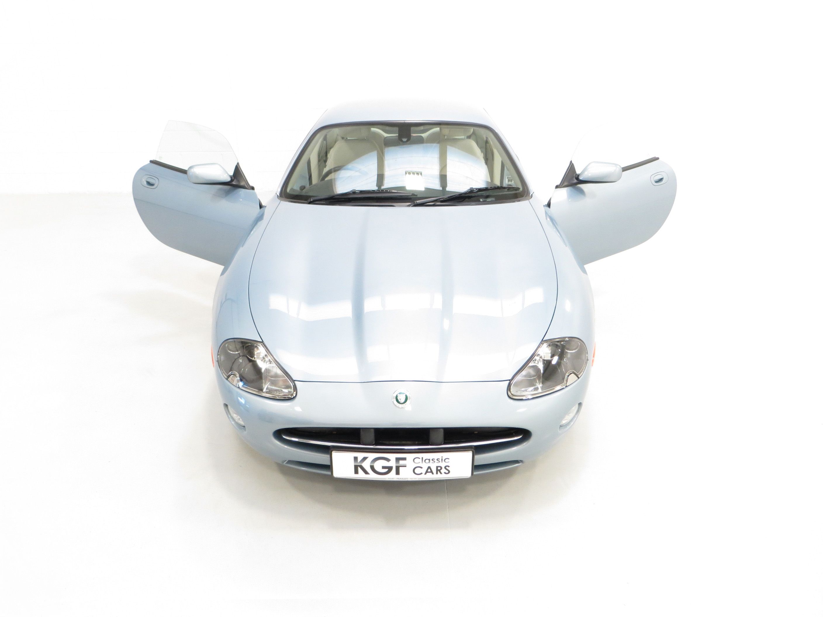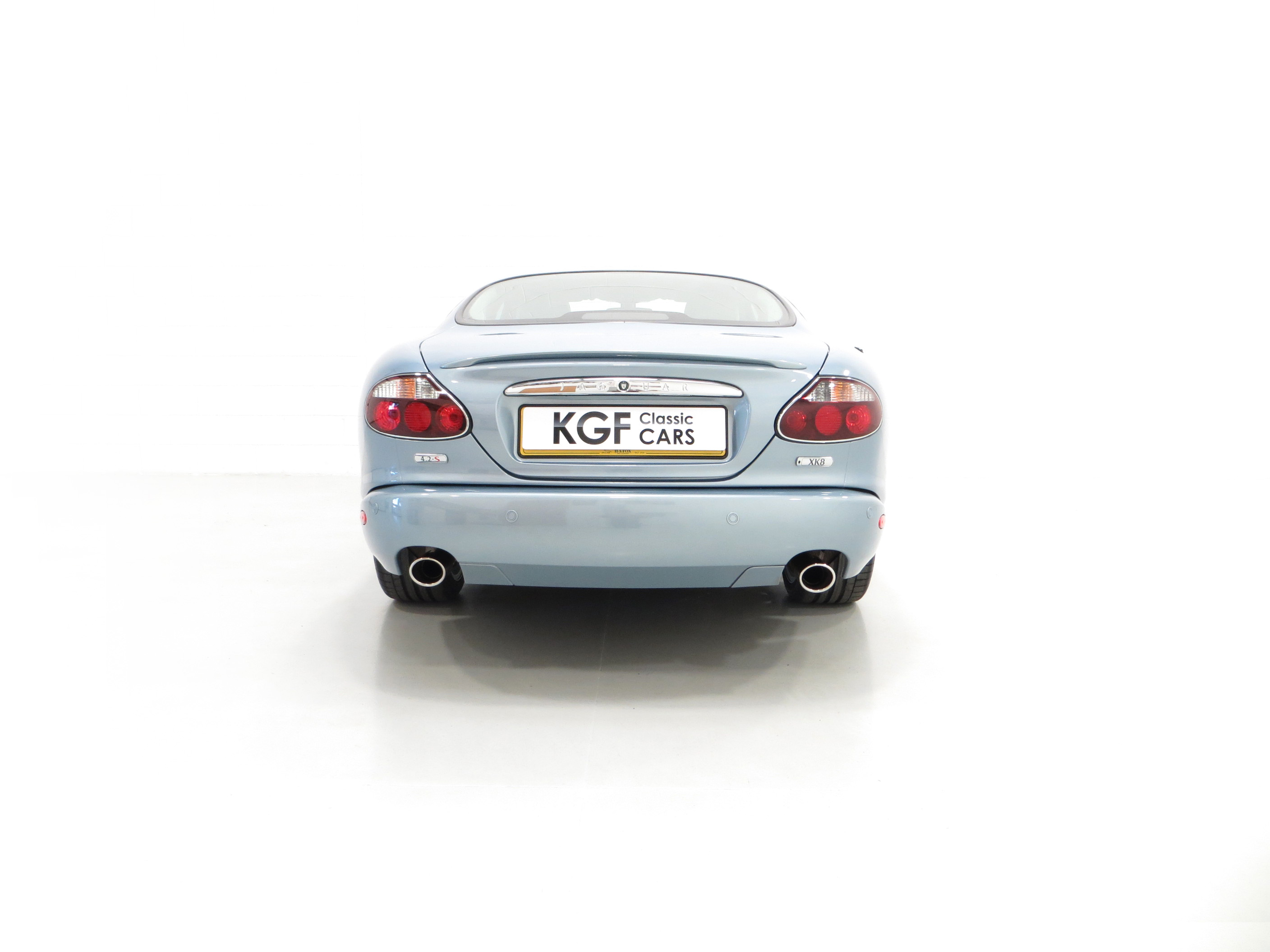 This exceptional timeless XK8 4.2-S Coupe represents a unique opportunity for a discerning enthusiast wanting perfection. Finished in original Frost Blue Metallic, (Code JJZ), the paintwork to the pin straight bodywork boasts a virtually flawless finish thanks to pampered garaged storage and super low mileage credentials. There are a few minor stone chips barely noticeable. Jewel tail lamps with chrome surrounds and an embossed chrome boot lid plinth all add the glorious appeal and all other trims sections are pristine. Unique 4.2-S features to include nearside rear model designation plinth, white Jaguar bonnet badge with chequered accent and polished door treadplates with chequered-flag emblems are perfectly preserved. Supplying Jaguar Main Dealer number plates remain fitted. Graceful, sleek and without question one of the best available.