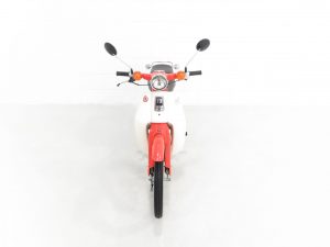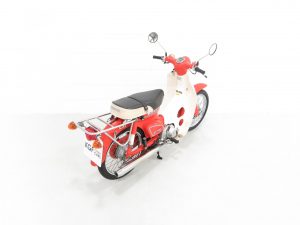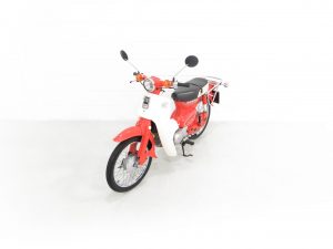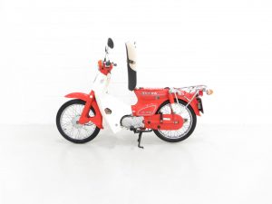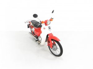 Introduced in 1958, the Honda Cub/Super Cub has been in continuous manufacture ever since and production surpassed 100 million in 2017 making it the most produced motor vehicle in history. The idea for a new 50cc motorcycle was conceived in 1956 when Honda Motor’s Soichiro Honda and Takeo Fujisawa toured Germany and witnessed the popularity of mopeds. The requirement however for the motorcycle to succeed in the developing world was, primarily simplicity, and larger wheels than those of a moped in order to cope with badly surfaced roads, or indeed non-existent roads in rural regions. Another requirement of Takeo Fujisawa was that the bike could be ridden one handed whilst carrying a tray of soba noodles, siting that the vast numbers of soba noodle shops in Japan would no doubt want one as a delivery bike. The iconic and phenomenally successful Honda Cub series is widely credited for mobilising and in large part, revolutionising, the developing world.