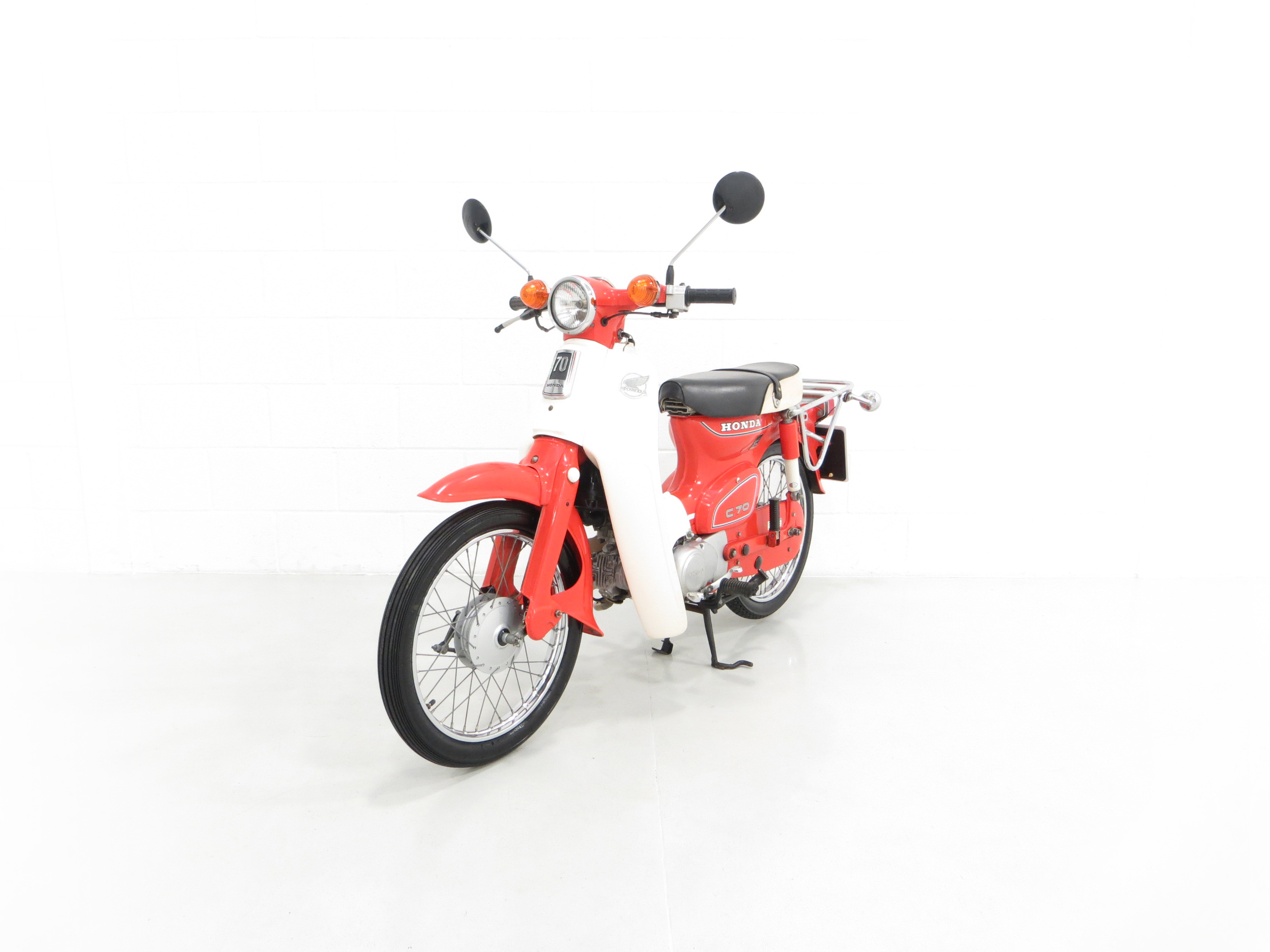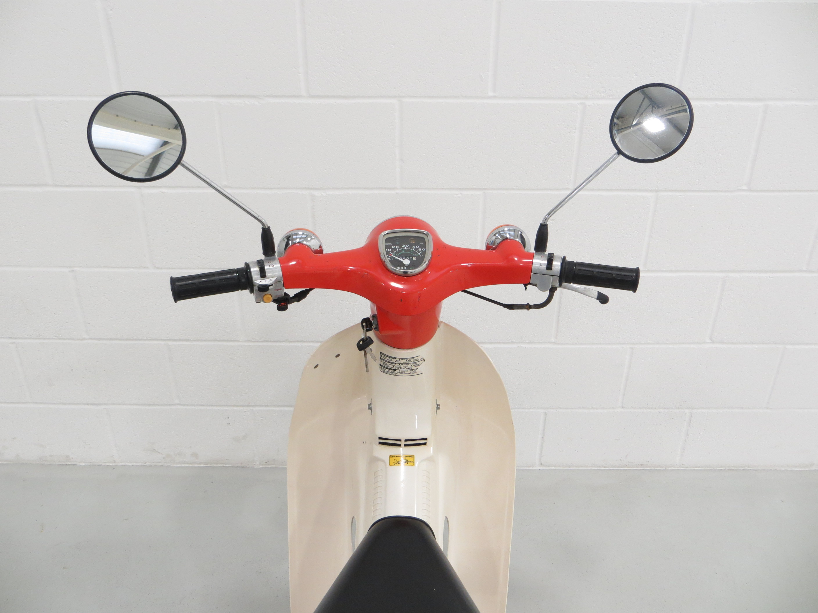 An original retro UK Honda C70-C Round Light model with 3,600 miles.