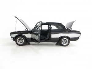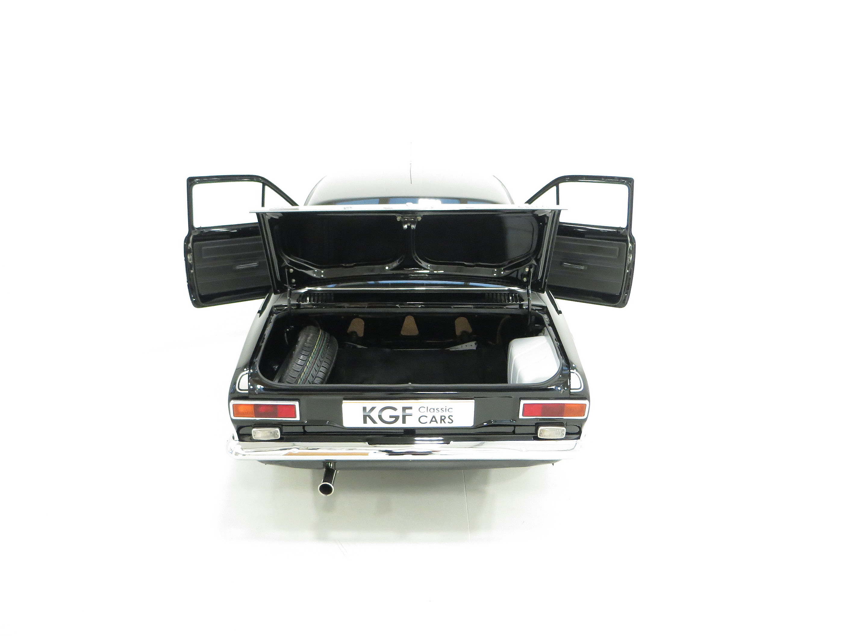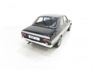 Built at Fords Advanced Vehicle Operations factory in Aveley in July 1974 this vehicle is one of 3,759 genuine AVO RS2000’s built for the RHD market. Registered with the AVO Club as a genuine factory Black example with only a tiny fraction having been produced in this non-standard colour, the club is only aware of a handful still in existence. Fully traceable history from date of registration on the 20th September 1974 up to the present, this car has only had seven former keepers. Such is the condition and provenance of this rare RS2000 that is has been magazine featured twice with a six page spread in Retro Ford in 2013. Old invoices make fascinating reading of the care lavished on this car and a CD containing hundreds of photos is included of the detailed restoration in 2009. Recent expenditure by the current fastidious owner totalling thousands of pounds with CWC Restorations in Tyne and Wear for upkeep and servicing means this car is ready for the show season and the next Blue Oval Ford fan wanting what must be one of the rarest Mk1 Ford Escort RS2000’s.