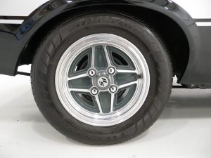 The undamaged and optional Rallye Sport alloy wheels measuring 5.5×13 inch are all correctly date stamped and have minor blemishes to the polished sections. Genuine RS centre caps are fitted and the spokes are finished in the factory dark grey. 175/70 R13 Firestone tyres are fitted to all four corners and the direct acting vacuum servo assistance dual-line braking system works effectively.