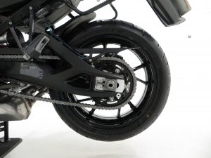 The racy satin black cast aluminium 17in wheels are as new and factory fitted Bridgestone 120/70 ZR17 front and 190/55 ZR17 rear tyres have covered just 164 miles and still have the coloured banding within the tread! The powerful BMW Motorrad ABS brakes with optional ABS Pro feature a 320mm double front disc and 265mm rear disc to offer tremendous safe stopping power. Brembo and BMW callipers together with ornate drilled discs look ever so purposeful on this formidable machine.