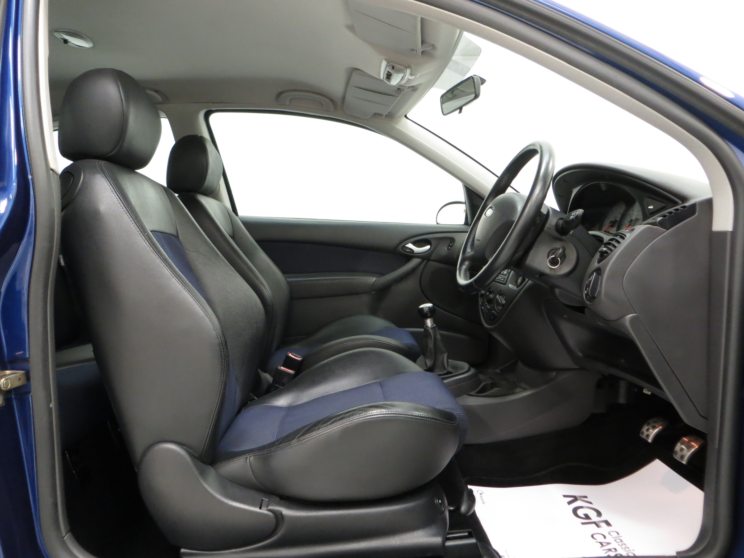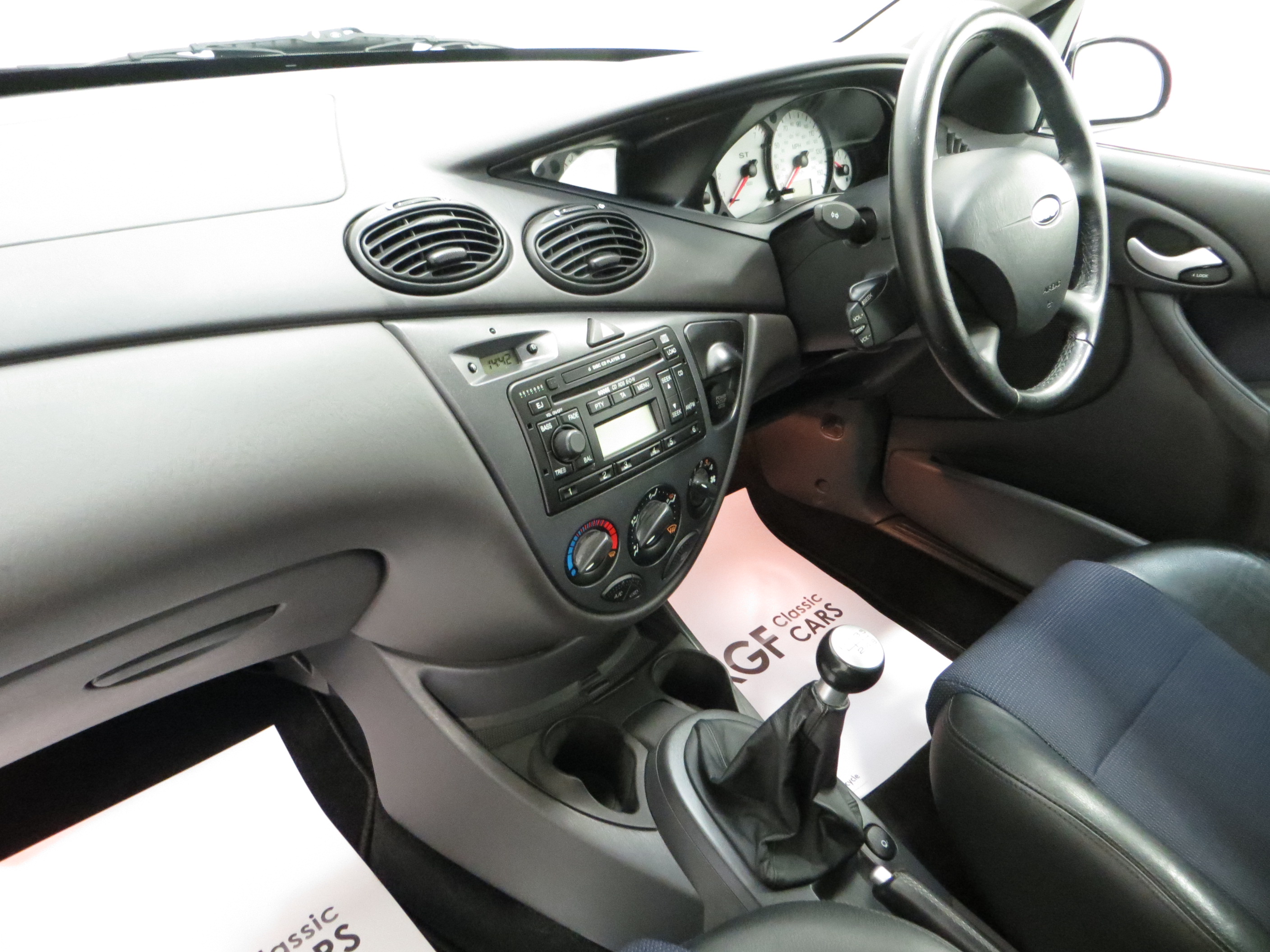 Inside this sporting fast Ford are a pair of body-hugging partial leather sports front seats in Blue Waffle and Midnight combination, (Code AL), all in immaculate order. The entire cabin space, seats and trim can only be described as exceptional and it is very obvious that this is a very well cared for example. All functions and controls operate including the air conditioning and model 6006N stereo radio/6CD. Tailored floor mats have preserved the pristine carpet. An unmolested hot hatch Ford interior and factory standard.