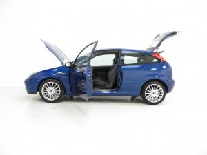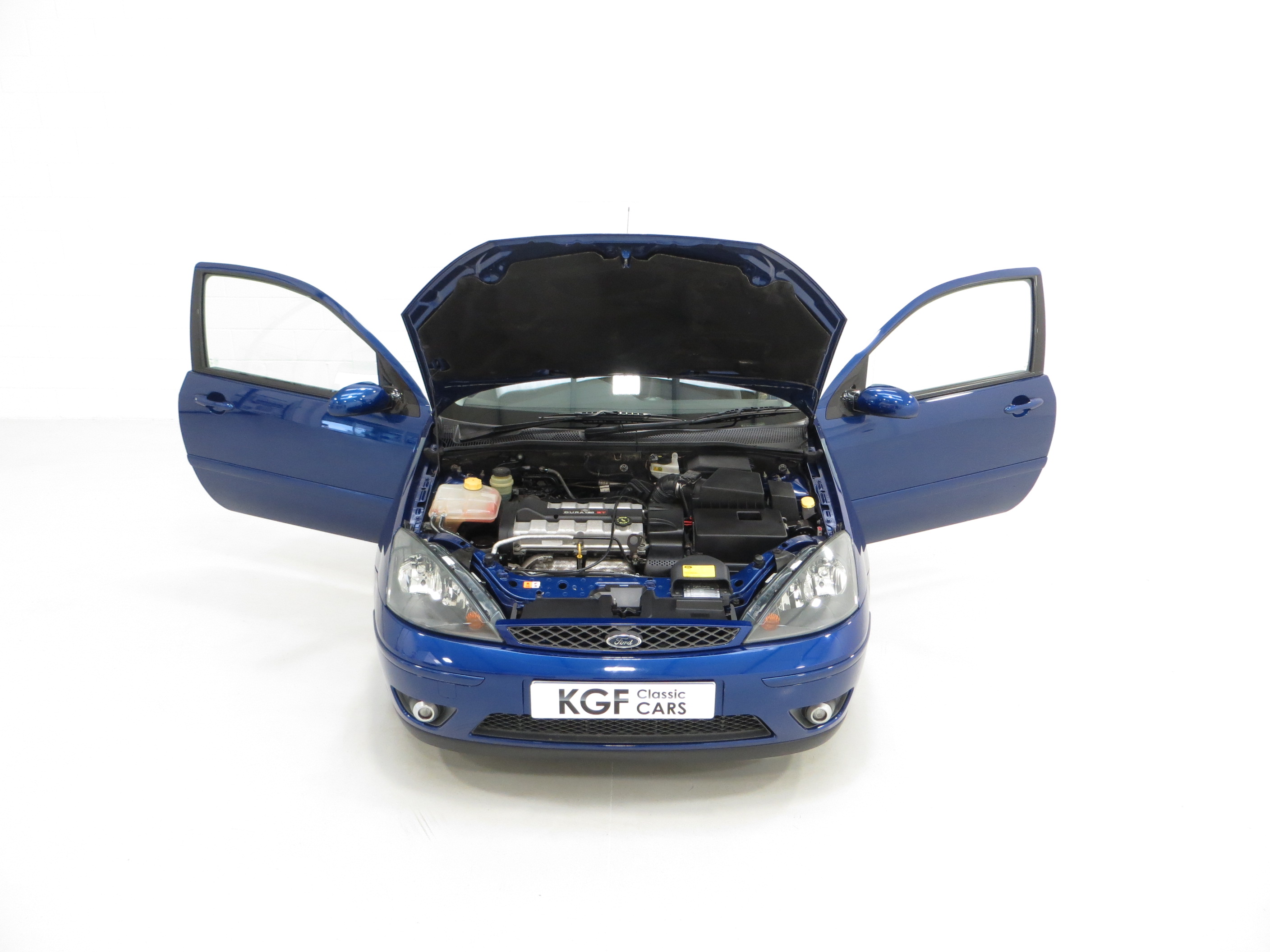 Fast becoming a highly sought after modern classic hot hatchback, the Focus ST170 presented here has covered a very low and fully documented 39,982 miles from new. In totally standard form and finished in desirable Imperial Blue, (Code Q2), this is arguably the most iconic colour and remains synonymous with Fast Fords. The paint finish is incredible and virtually flawless owing to fastidious mature ownership and strict garaged storage. The racy exterior sports body-styling and trim sections and badges are as new. Originality seekers will be pleased to see factory stickers and labels in the door shuts as well as the Ford dealer number plates. The underside and wheel apertures are super clean and original. A prime example of a cosseted and unspoilt Focus ST170, becoming very hard to find.