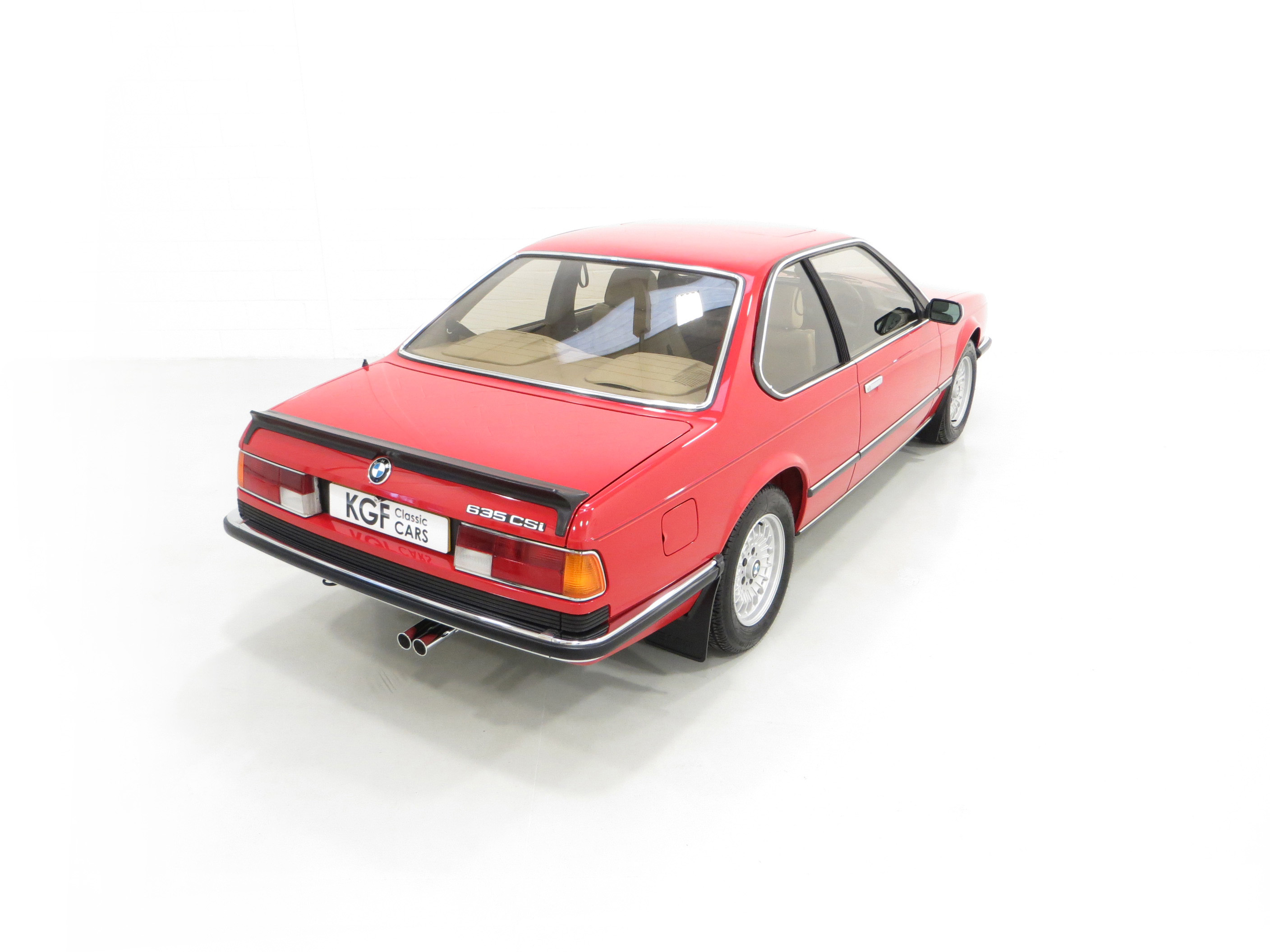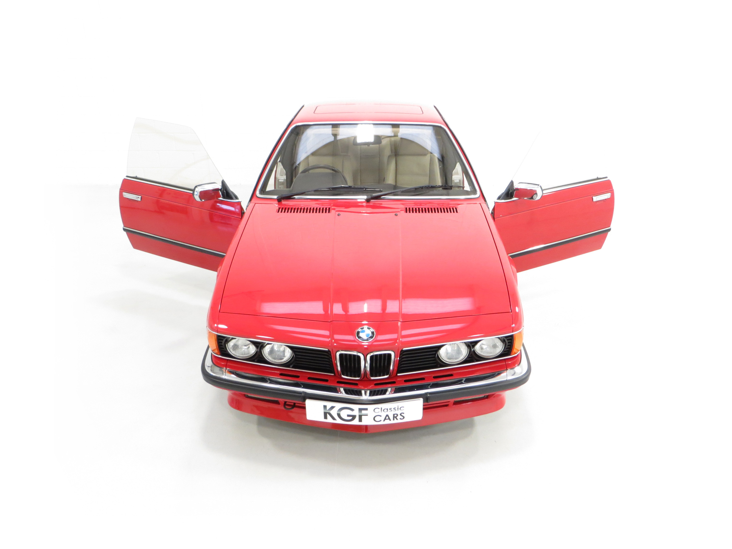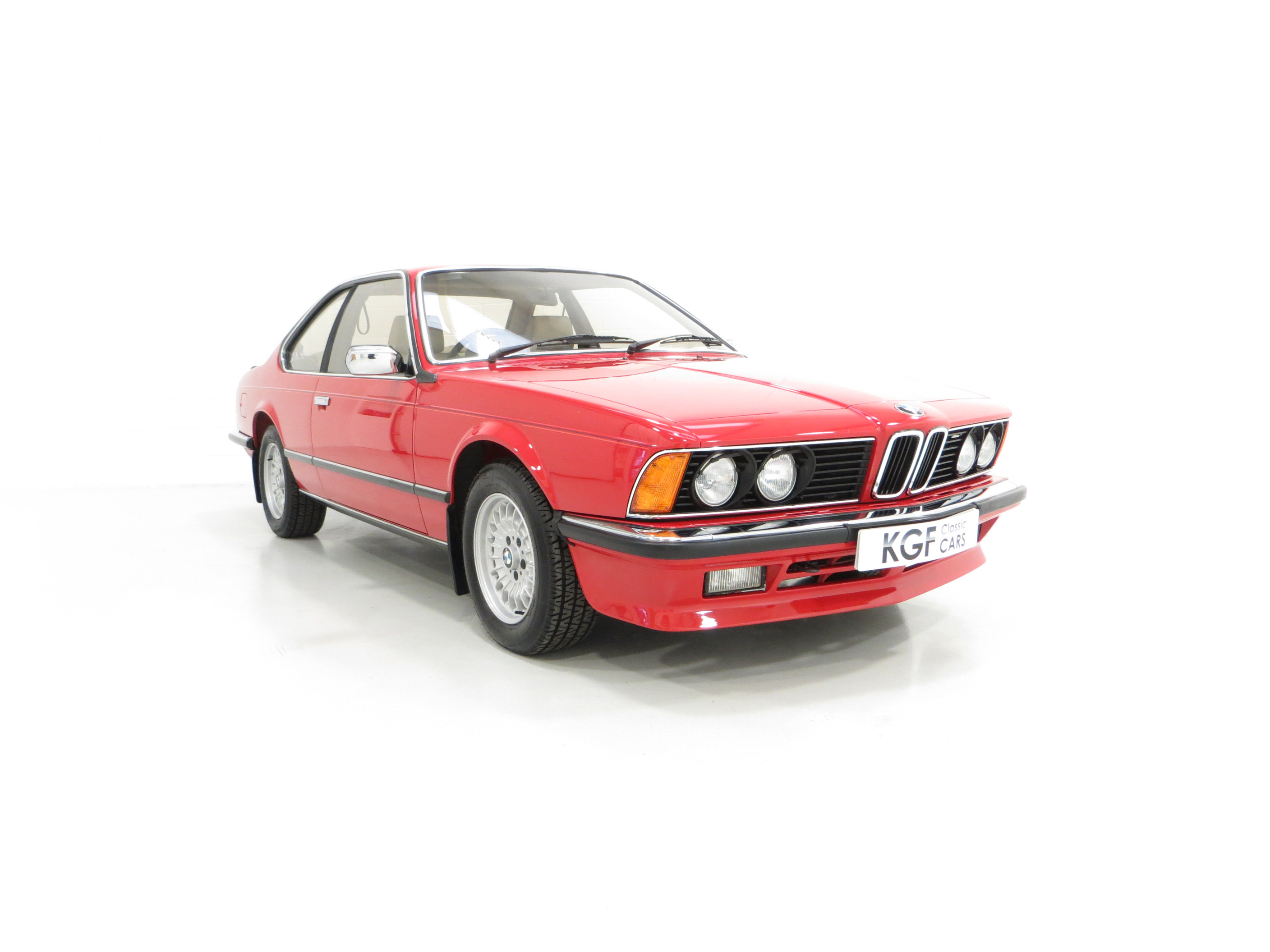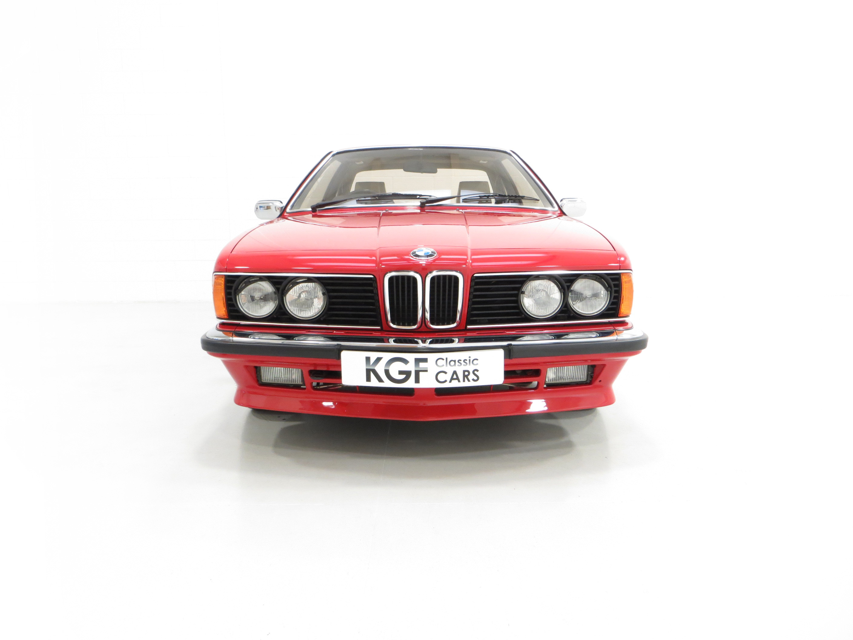 The unmistakable and elegant lines of this original BMW 635CSi are timeless. This beautiful example is finished in immaculate BMW Zinnober Red, (Code 138), and the paintwork gleams with a deep glossy shine. Incredibly low miles, optimal storage conditions and pampered upkeep have resulted in what must be, one of the most perfect untouched examples in existence. All exterior trim, glass and lights remain in excellent order and the extensive chrome brightwork has a glorious mirror finish. The front screen still has the running-in sticker attached and there is one tiny mark to a rear panel. The underside and wheel arch apertures are factory finish and very clean. The epitome of first class automotive engineering and one for the BMW connoisseur.