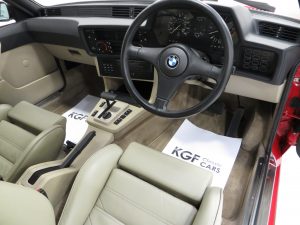 The driver orientated ergonomically designed cockpit in this BMW 635CSi is pure sophistication and luxury. The factory optional contoured sports seats in Pearl Beige leather, (Code 206), are spotlessly clean and commensurate with the low 23,136 miles covered. The rear bucket shaped seats are wonderfully factory fresh along with all other interior materials. Carpets have been protected by genuine BMW velour mats and the dashboard is completely free from any cracks. All incorporated switches and functions are intact and operate as they should including all Liquid Crystal Displays and the check control panel boasting a full complement of LED lamps. Night time driving is instantly familiar with all instruments and switches illuminated by clear but eye-soothing orange lights. The factory original Blaupunkt radio finishes the retro 80’s look! The boot area is pristine and the tool kit complete. Attention to detail wherever you look.