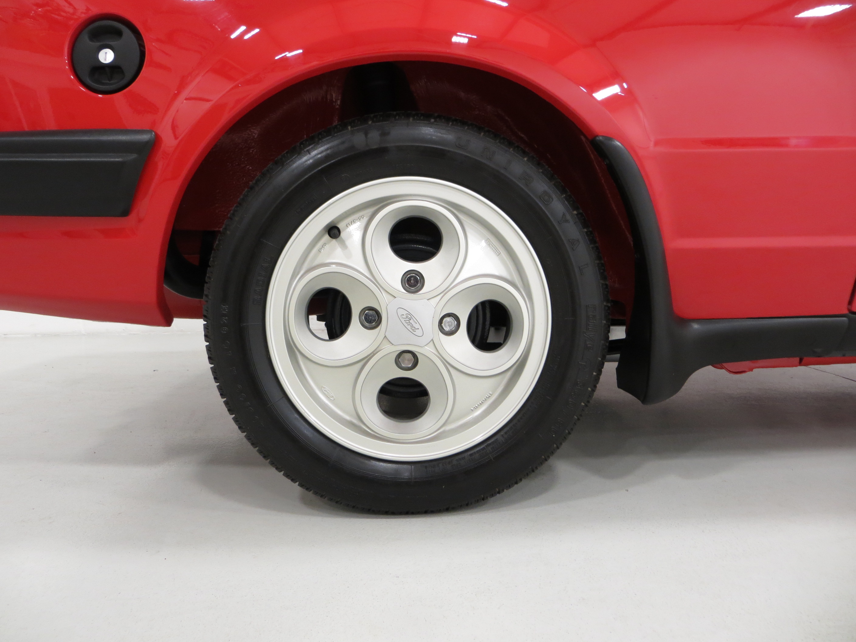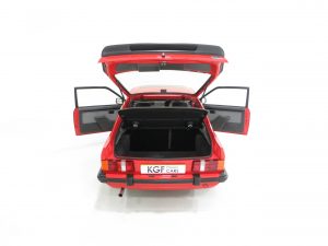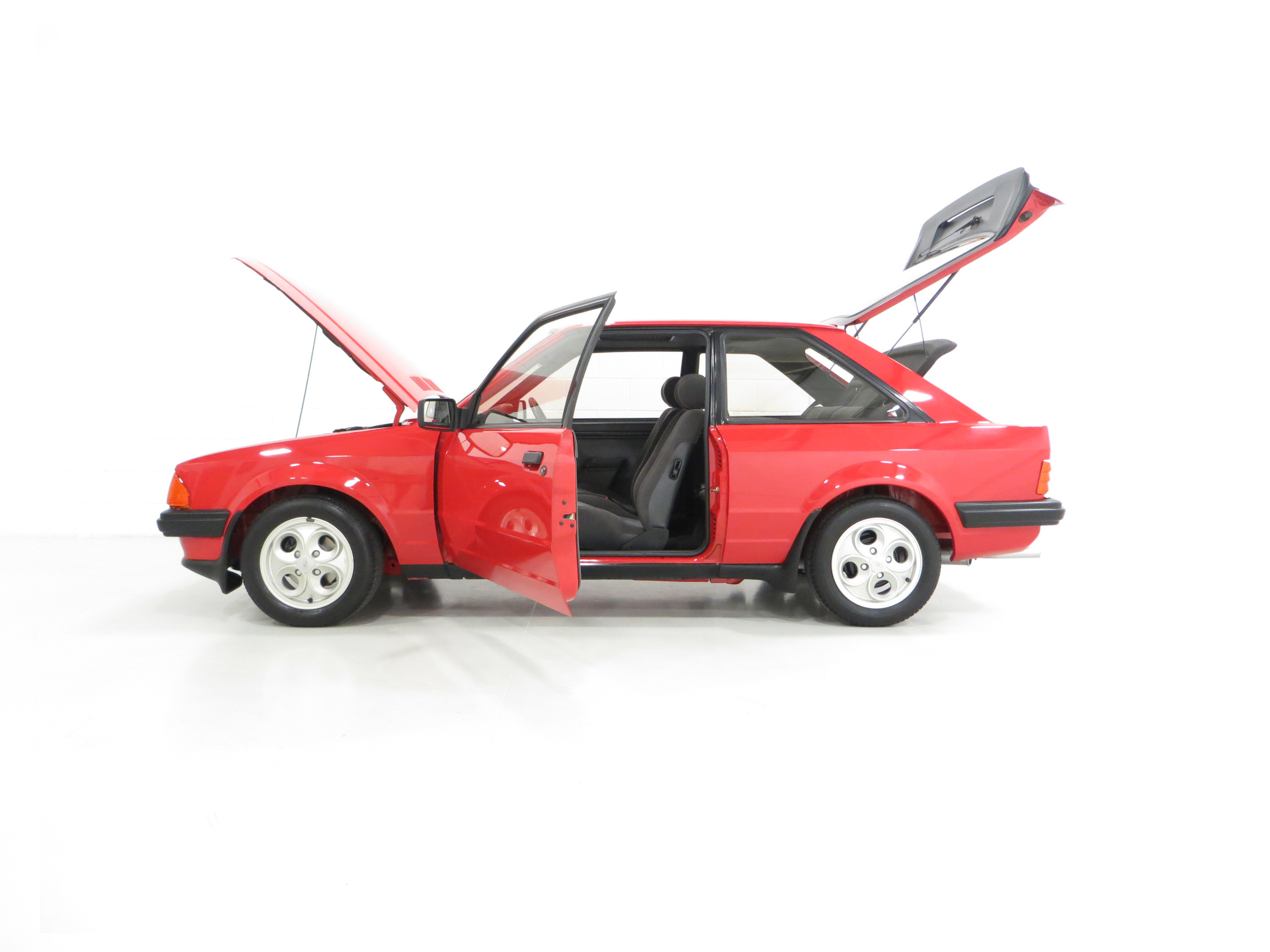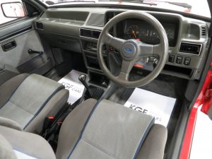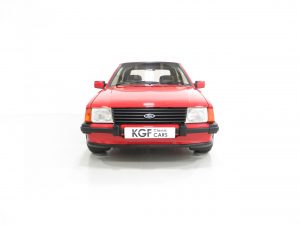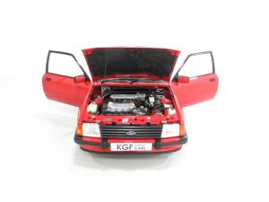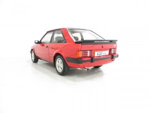 This show winning example is finished in the original colour of Rosso Red, (Code R5), a direct replacement for the previous Sunburst Red and available on only the very last Mk3 XR3i’s. The paintwork is incredible with a bright uniform finish and the factory panels remain fitted with stampings visible on the inner wings and all other key hidden areas. A fully detailed underside in body colour is worthy of ‘floor mirror’ display and will wow onlookers, even a genuine Ford exhaust system is still fitted! The trim sections, glass, lights and badges are in excellent order and the supplying dealer rear screen sticker remains fitted. A superb example of this legendary contender in the 1980’s hot hatch war and desired by many now.