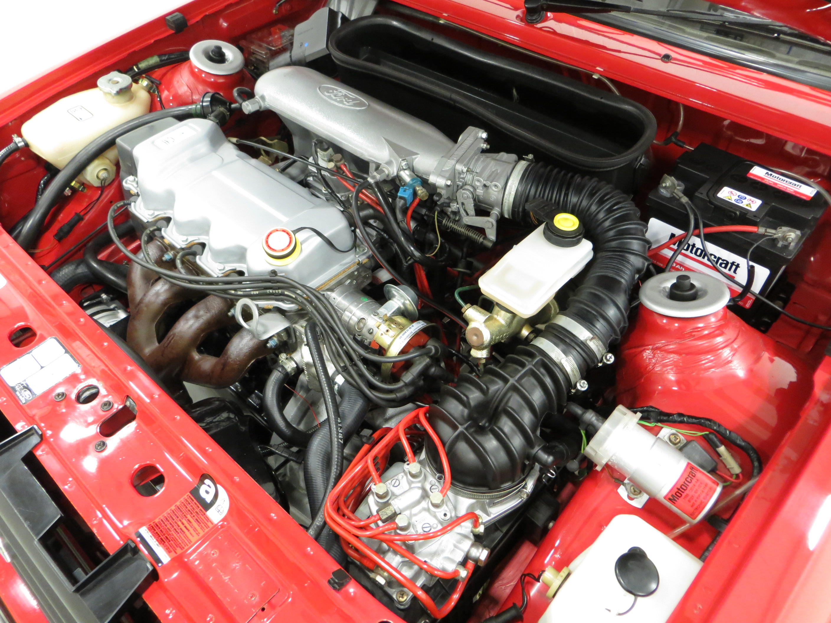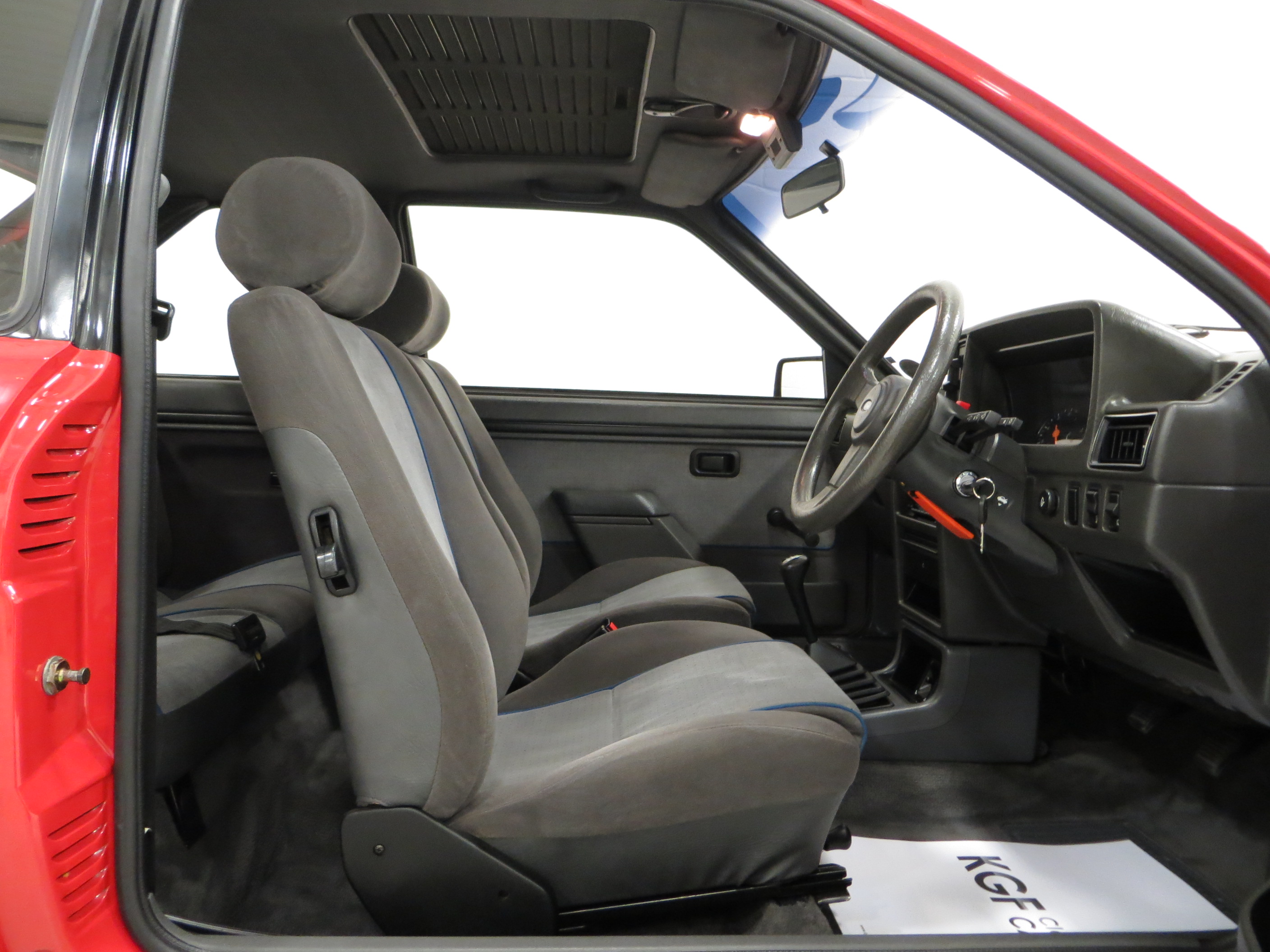 Fitted with Fords 1.6 Compound Value angle Hemispherical chamber (CVH) engine with electronic fuel injection, this car sprints along with 105bhp at 6000rpm giving a 0-60 of 8.8 seconds and a top speed of 116mph. The engine bay is pristine and displays clearly prominent factory plates and original stickers and is worthy of the many awards won. Ford aficionados will be pleased to see correct service items such as Motorcraft oil filter, starter motor and hoses. As piece of mind all fluids, belts and brakes have been changed in January 2020 at a cost of £1484.28. The 5-speed manual transmission is light and precise.