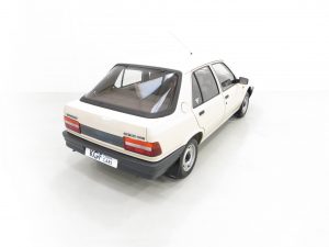 This early Phase 1 Peugeot 309 GE is finished in the deliciously retro colour of Antelope Beige, (Code EDW), a colour more often seen on older models such as the 305 and 505. Having covered just 16,437 miles from new, the factory panels and paintwork are simply remarkable and all panel edges and seams are pin sharp. The lightweight panels are completely free from the usual dings and the paintwork boasts a wonderful uniform shine with only very minimal markings and touch ups. The underside is preserved incredibly well and even the exhaust still has labels intact! Factory Peugeot Saint Gobain and Triplex glass and supplying dealership number plates further uphold the originality and all lightweight trim is fully intact and damage free. A preserved early base model example now otherwise virtually extinct.