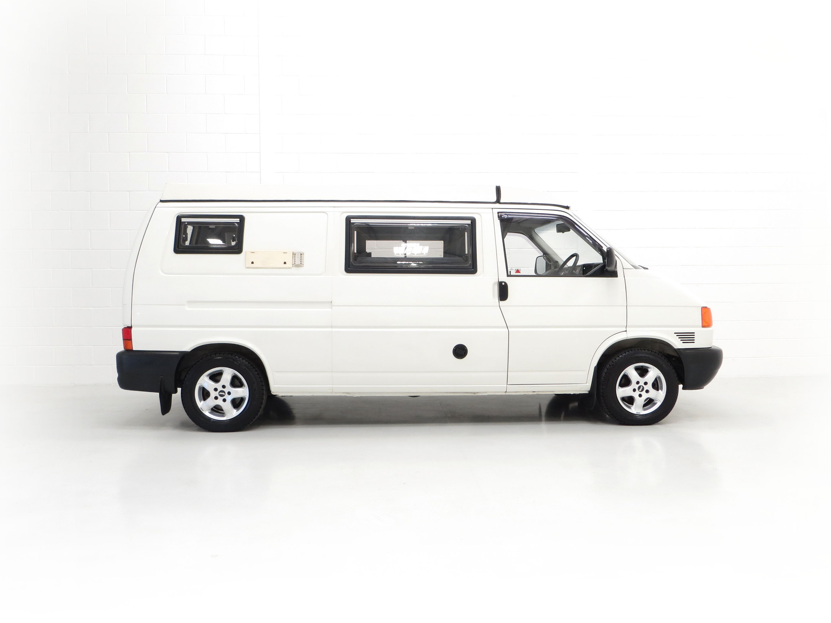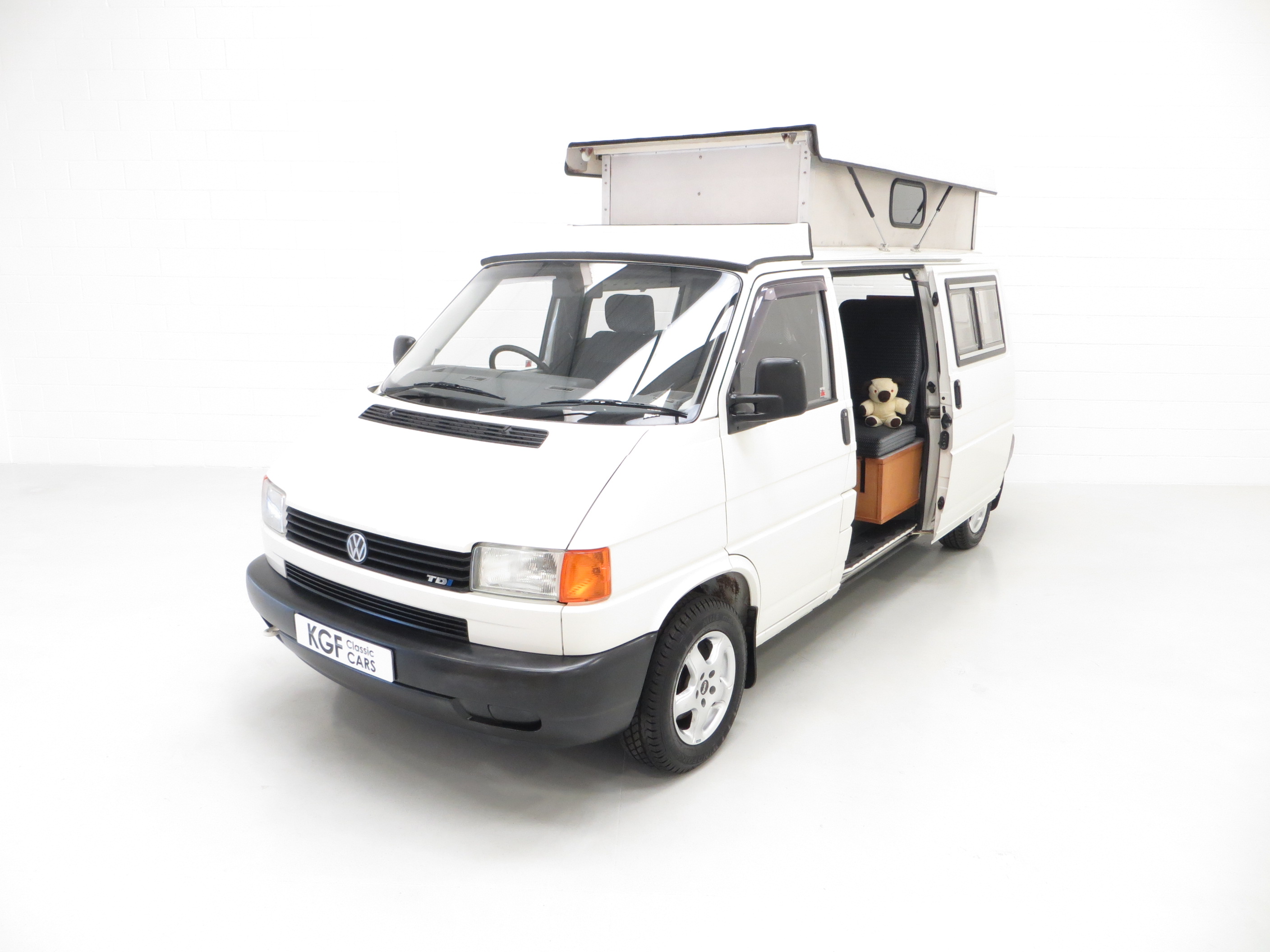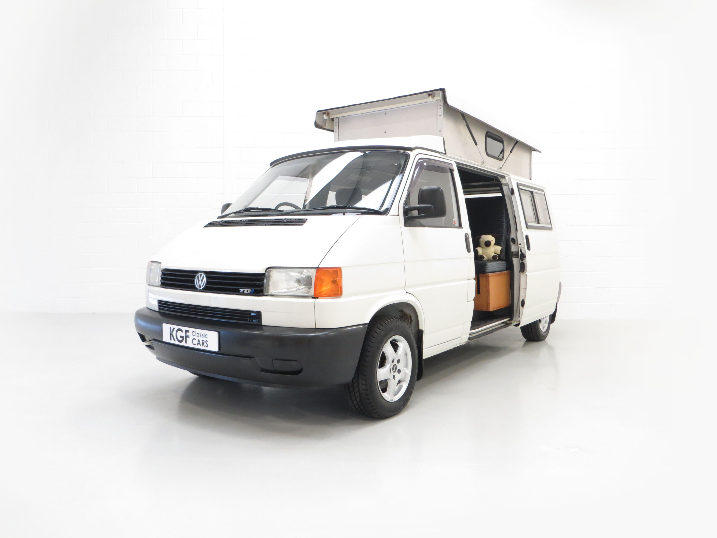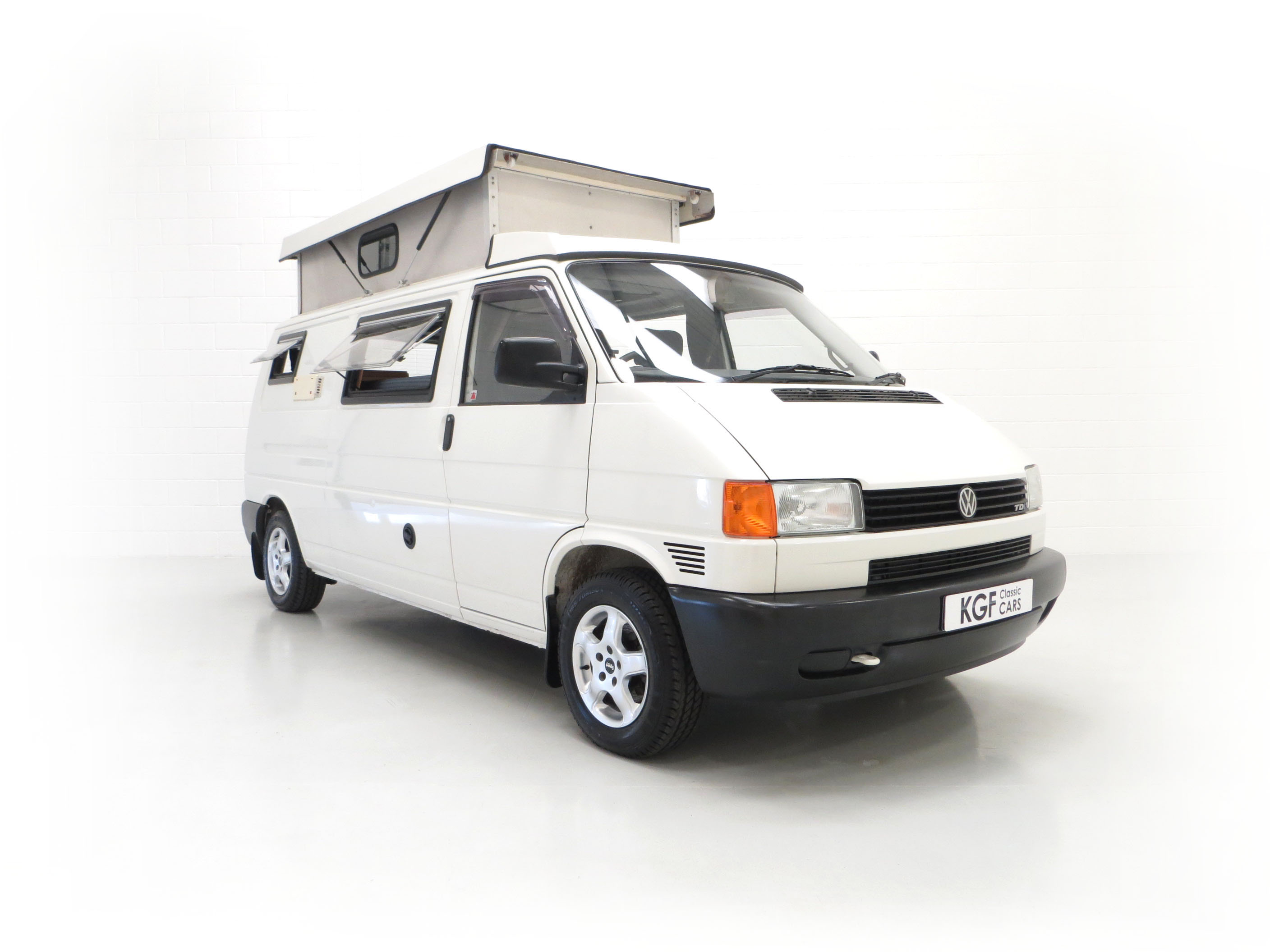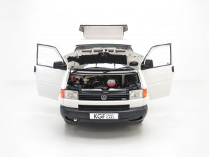 This LWB T4 Transporter was professionally converted from brand new by specialists Young Conversions Ltd, a firm founded in 1988 and still converting today! Finished in factory original Arctic White, (Code R902), the paintwork is incredibly well preserved and commensurate with the exceptionally low genuine 16,036 miles covered. A few light scratches, stone chips and touched-in markings are visible. The double glazed windows and elevating roof are fully intact and operate ingeniously. There is a chip in the windscreen and slight discolouration to the external plastic vents. Young Conversions Ltd decals remain fitted to the tailgate. Simply stunning and the perfect retro leisure vehicle capable for todays pursuits.