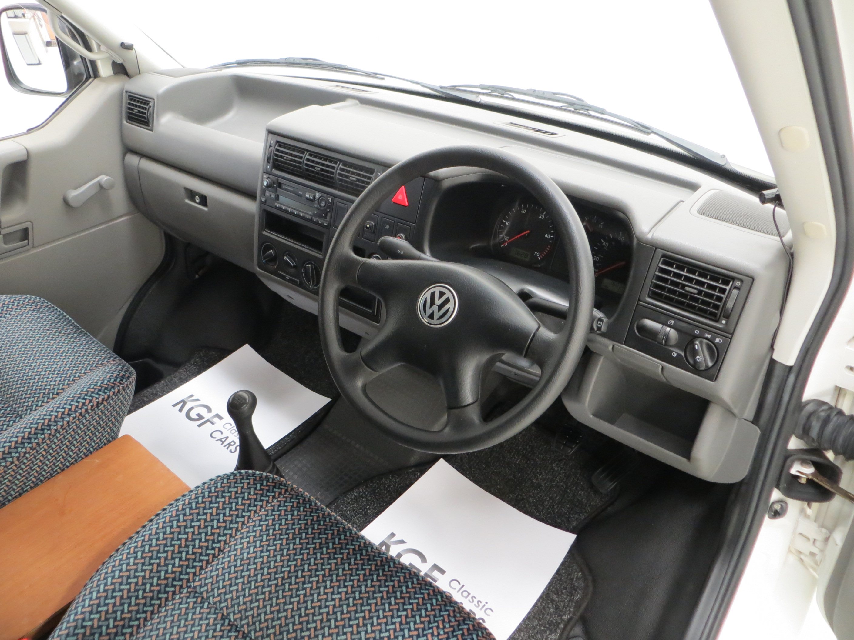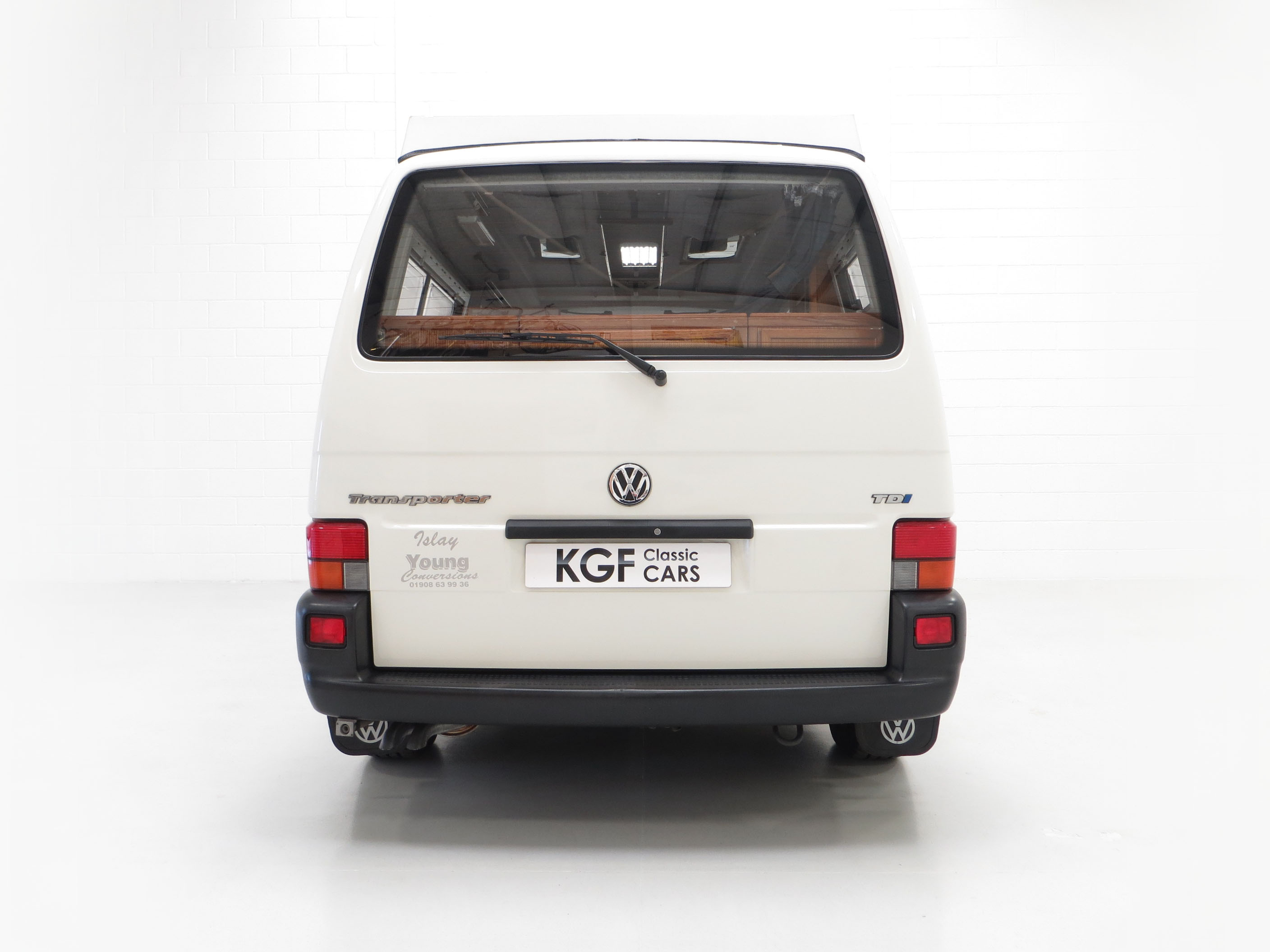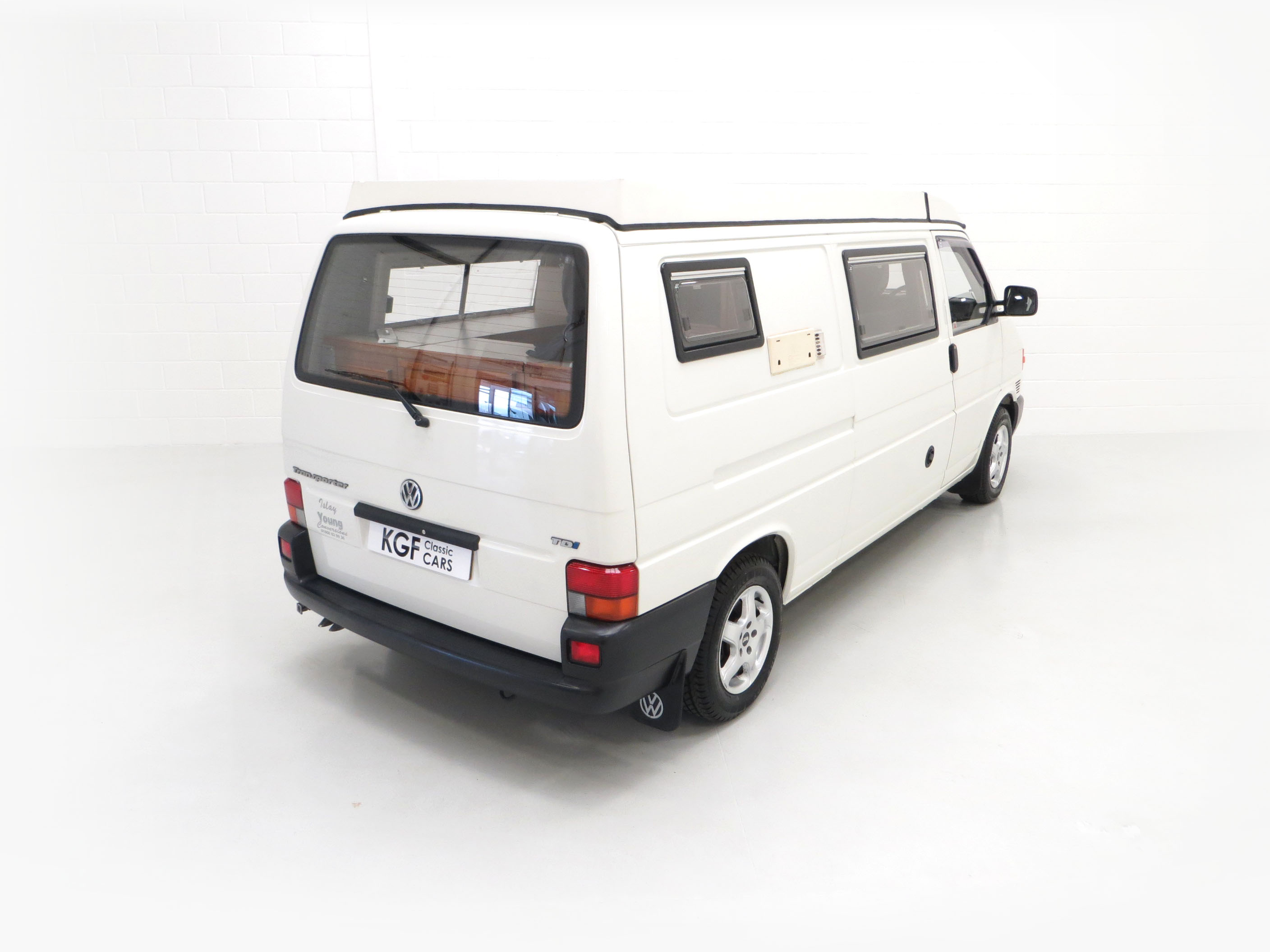 Long wheelbase body, alloy wheels, power assisted steering, rear tailgate door, side sliding door, Volkswagen BETA radio/cassette, remote central locking. Camping Equipment; Young Conversions Ltd bespoke ‘Islay’ design to include; Double glazed windows with blinds and fly screens, 12 Volt electrical system, auxiliary leisure battery, control panel, 12 volt socket, 2 x 16w fluorescent lights, 4 x flexible reading lights, 2 x gas cylinder in steel gas locker, Islay kitchen in Ash veneer MDF, Formica work tops, 2 burner hob and grill, Electrolux RM4201 fridge/freezer, solid-sided elevating roof, Islay seat/bed configuration, table with tripod, insulated roof, floor and trim panels, underfloor water tank with self-priming pump, sink, Trumatic E2400 blown air heating, swivel front captain seats. Dealer options; Mud flaps, Volkswagen carpet mats, door wind deflectors, fire extinguisher.