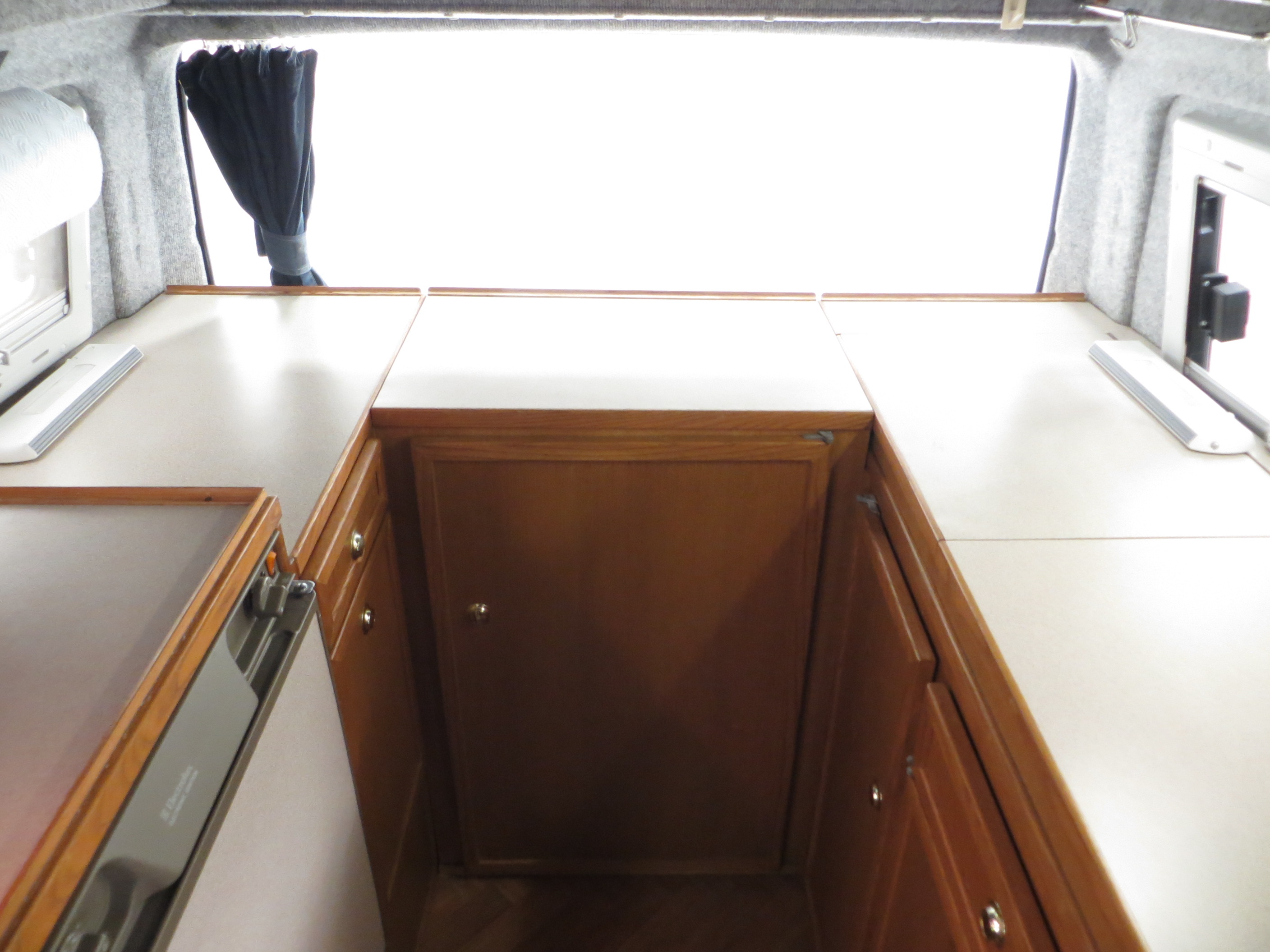 The interior of this high specification Motor Home is fully lined and insulated with high quality Marley Sceptre herringbone flooring. Remaining original to the Young Conversions Ltd specification, the Islay kitchen in Ash veneer MDF with Formica work tops is spotlessly clean and in excellent condition. All equipment is functional but the heating system has not been tested. The Clubhouse Turnberry fabrics are pristine. Minimal usage allows all cooking and food storage facilities to remain in exceptional condition. The spotless cab area is reflective of the 16,036 miles covered and completely original even down to the Volkswagen BETA radio/cassette. The swivelling captain seats are as new and the steering wheel and gear knob display factory veins found only on super-low mileage vehicles. Craftsmanship is assured as this is not a kit supplied conversion but rather a full specification professional interior, ready for camping trips and fun days out!