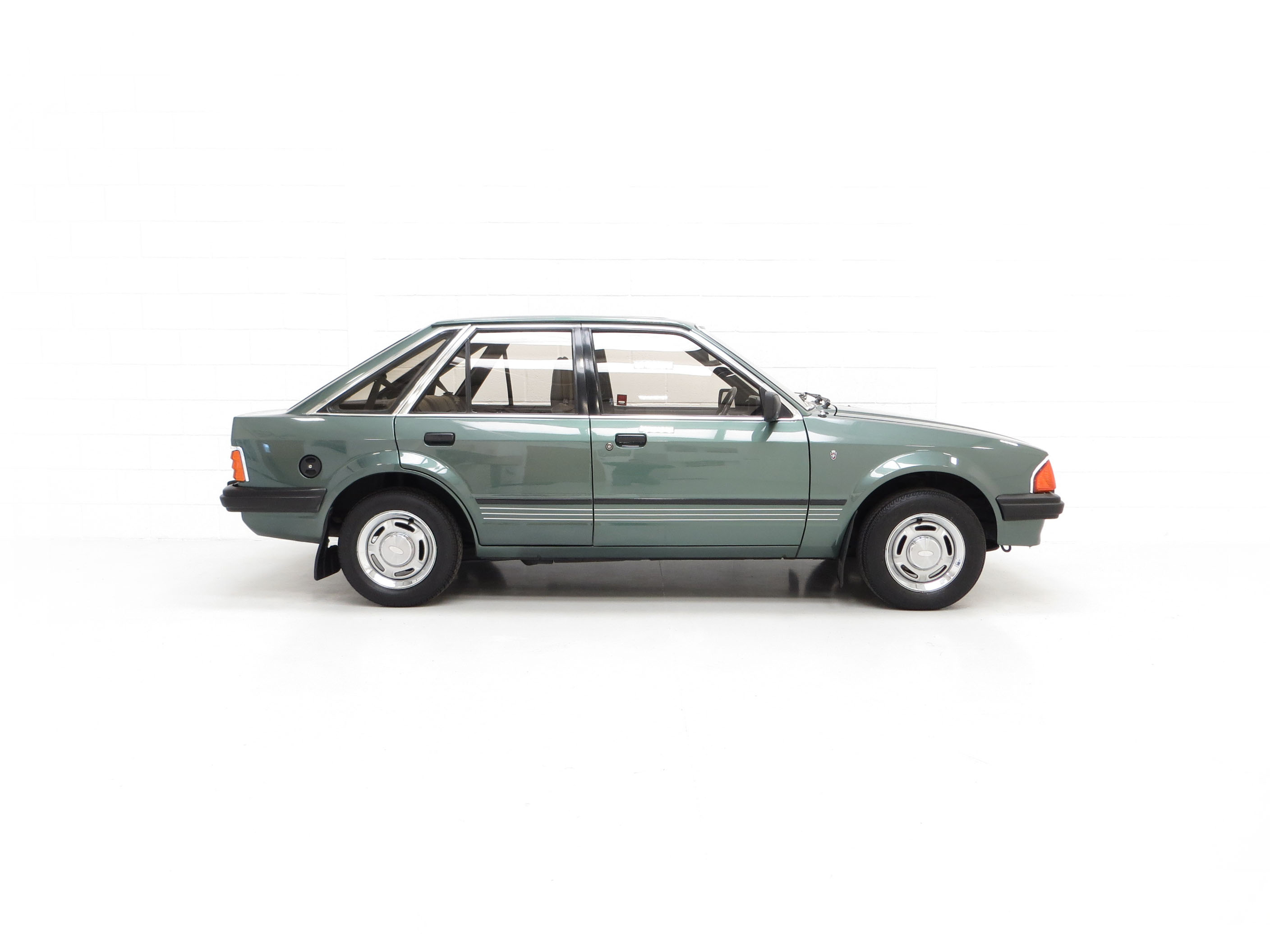 This wonderful and very early Mk3 Escort Ghia is finished in Forest Green metallic, (Code 4 1), a launch colour for the Mk3. With fastidious family ownership from 1986 until 2020, this original example looks fantastic with a bright uniform finish and polished shine. The factory applied paint shows light aging, minor scratches and a few dings as you would expect of an original unrestored car. This garaged from new example is structurally exceptional with no weld repairs having been carried out nor required. The Ghia specification brightwork is remarkably well preserved and undamaged. Unique features of an early car are the boot lid void of rear wiper and wiper hole and the single bonnet mounted washer jet fitted prior to the twin jet scuttle siting. A once common sight on our roads, this lovely Ford Escort in desirable Ghia specification is sure to stir up nostalgia.