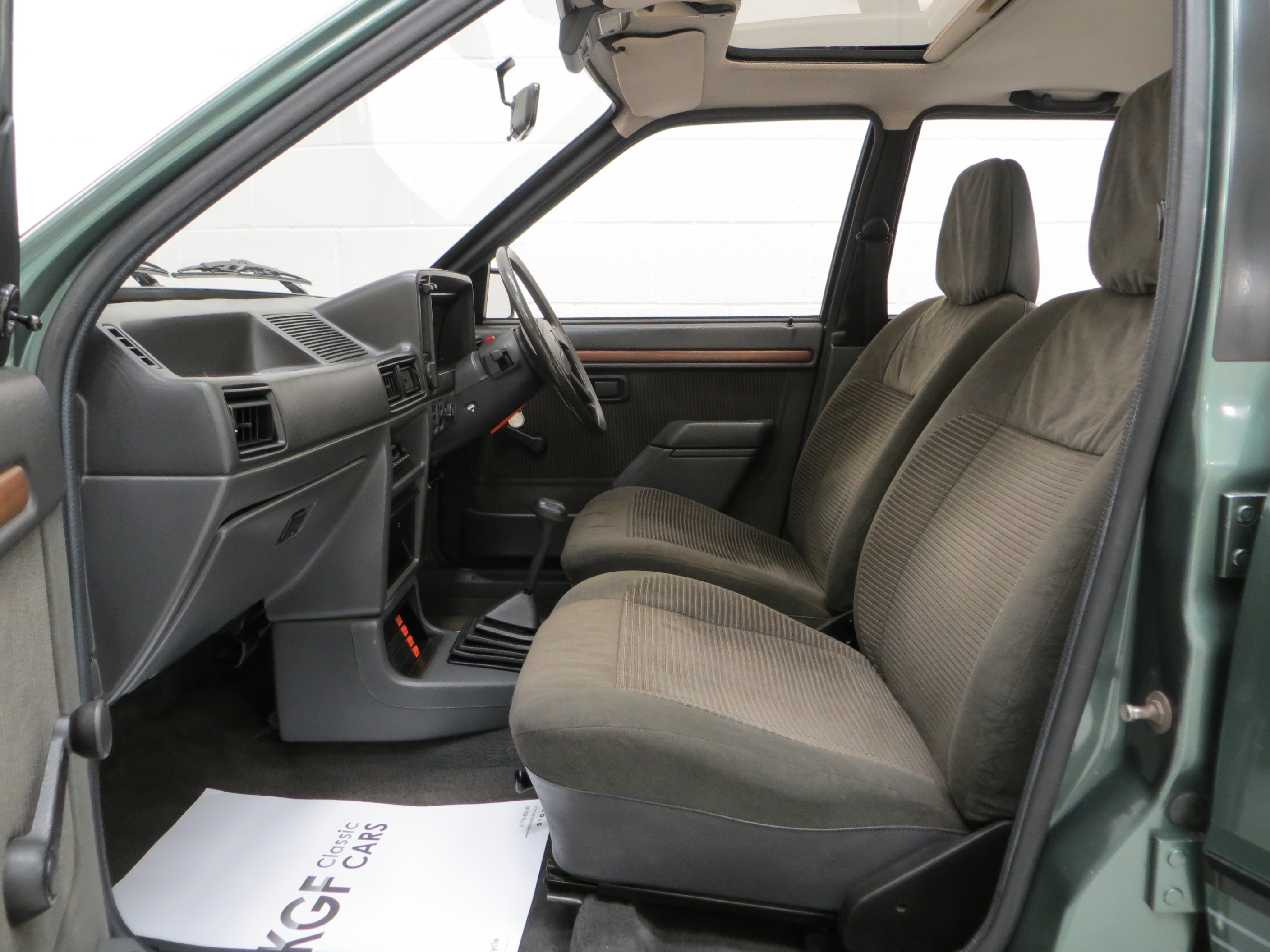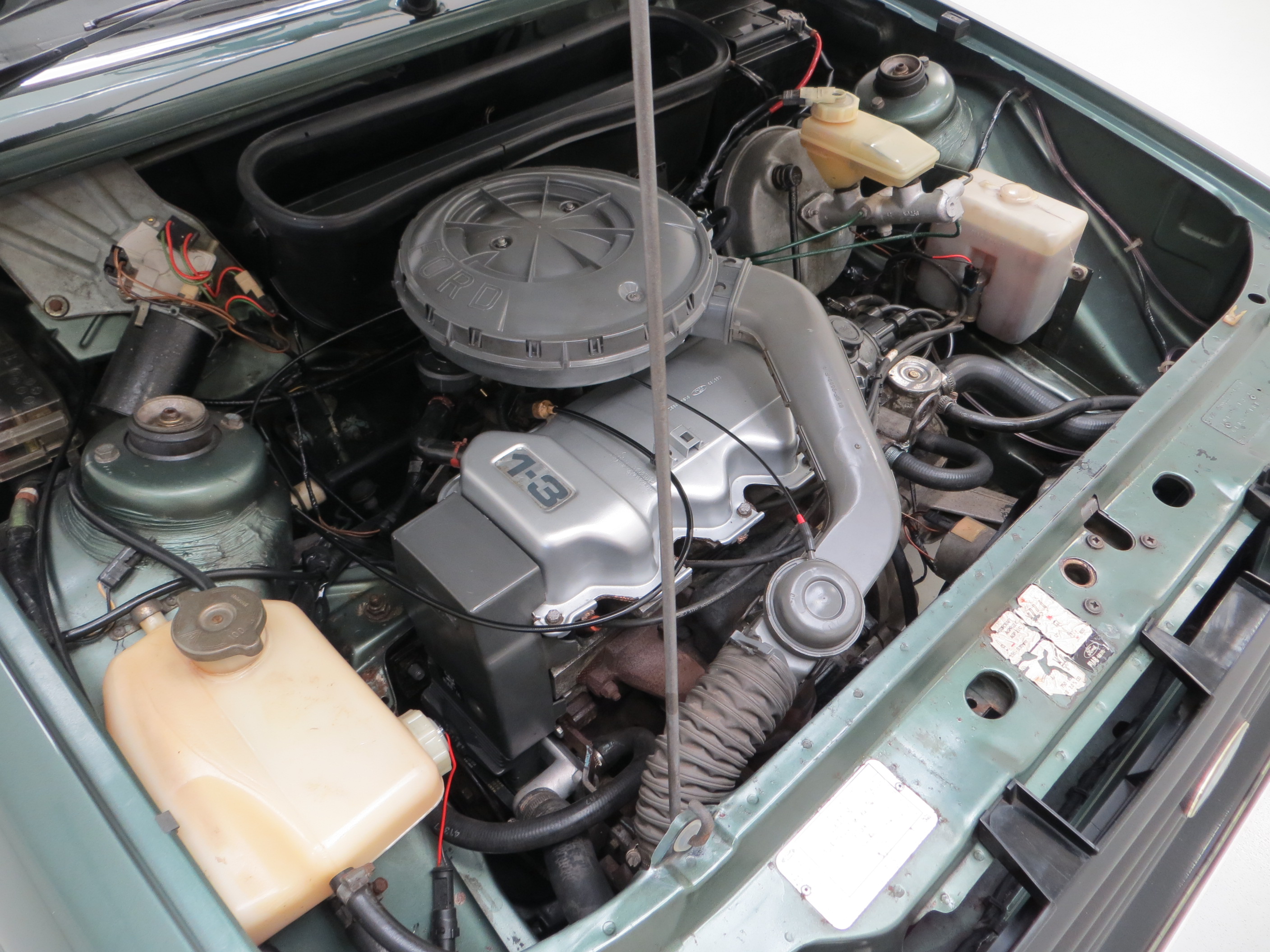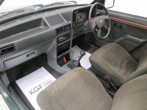 Five unrestored 5” x 13” styled road wheels with bright finish wheel centres and rim embellishers are shod in 155/80 R13 tyres with masses of tread remaining. The black painted edges to the wheel holes remain correct as per factory build, often lost upon wheel refurbishment. The diagonally split hydraulic circuit servo assisted brakes with ventilated 9.4in front discs and 7.0in rear drums bring the car up to a steady, straight and assured halt.