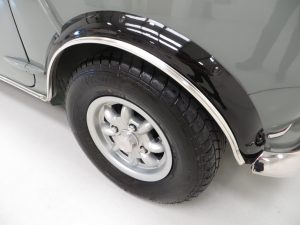 A full set of Minilite alloy wheels shod in Falken 165/70 R10 tyres are supplemented by the original pressed 4.5 inch Cooper ‘S’ steel wheels finished in Old English White. Disc brakes to the front and drums to the rear have a vacuum servo assisted brake power booster and bring the car to an assured halt.