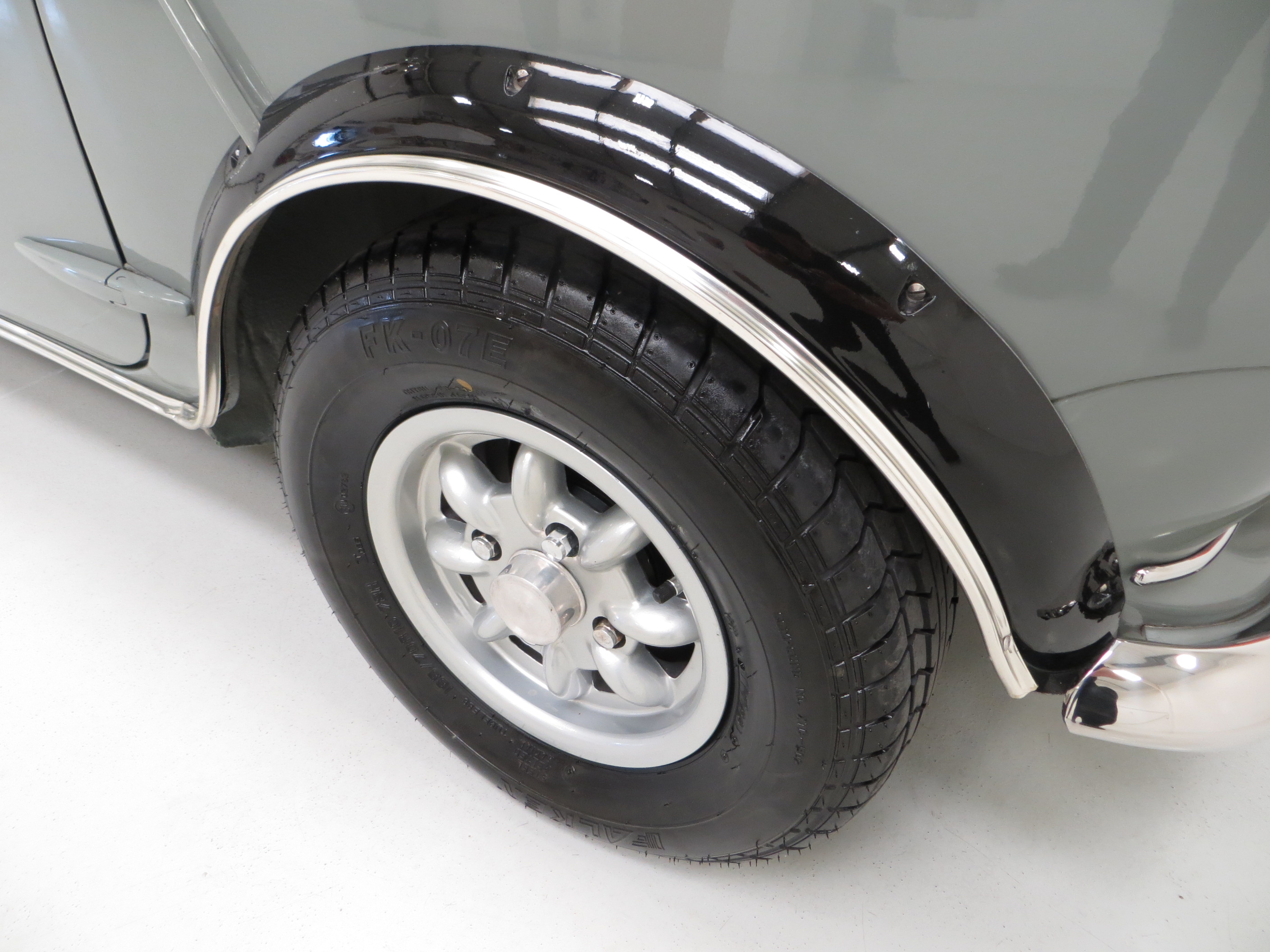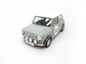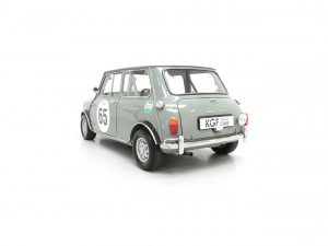 A rare homologation derivative produced by BMC this example is correct to the British Motor Industry Heritage Trust production record finished in Tweed Grey with Old English White Roof. Excellent chrome with the grille having the seven chrome-plated angled slats. The front bumper has been replaced and houses four halogen driving lamps and the rear has the correct tubular extensions. The tail light lenses have separate amber and red lens pieces unlike later one piece items and Lucus headlamps are fitted. The original badges are in excellent condition and are correctly fitted. Removable decals are fitted and can be replaced with the new owners name if required. The underside is structurally perfect and very clean but make no mistake, this example has been and can be, driven hard!