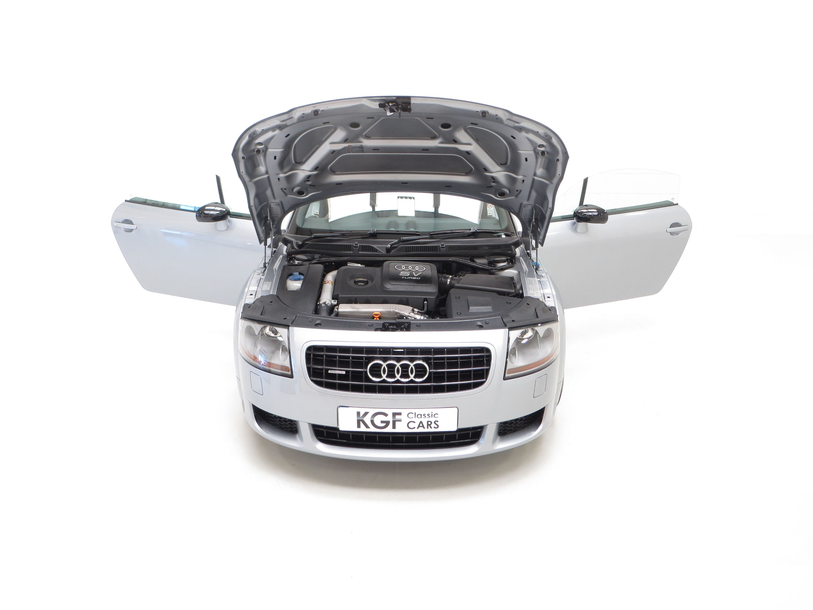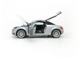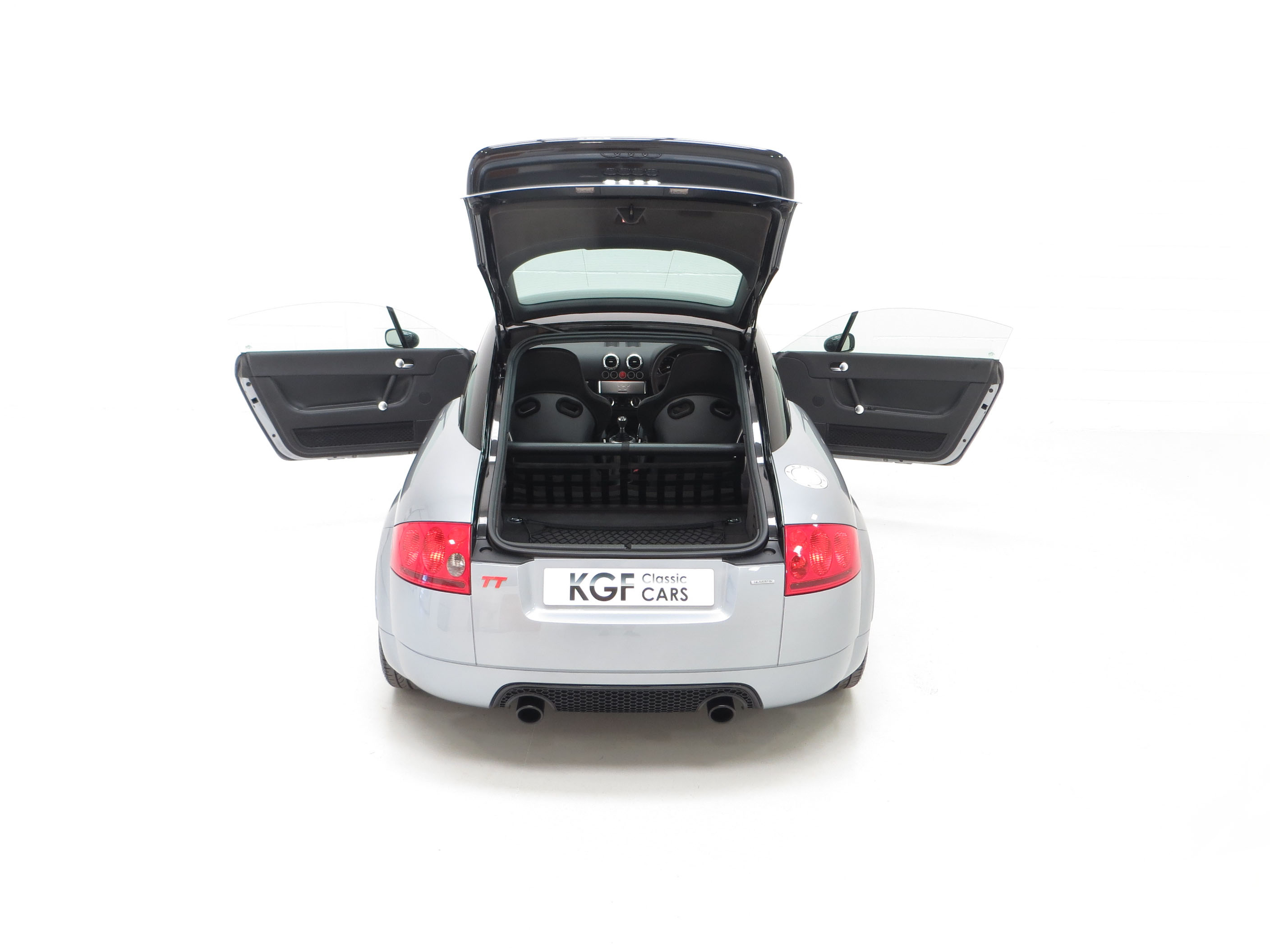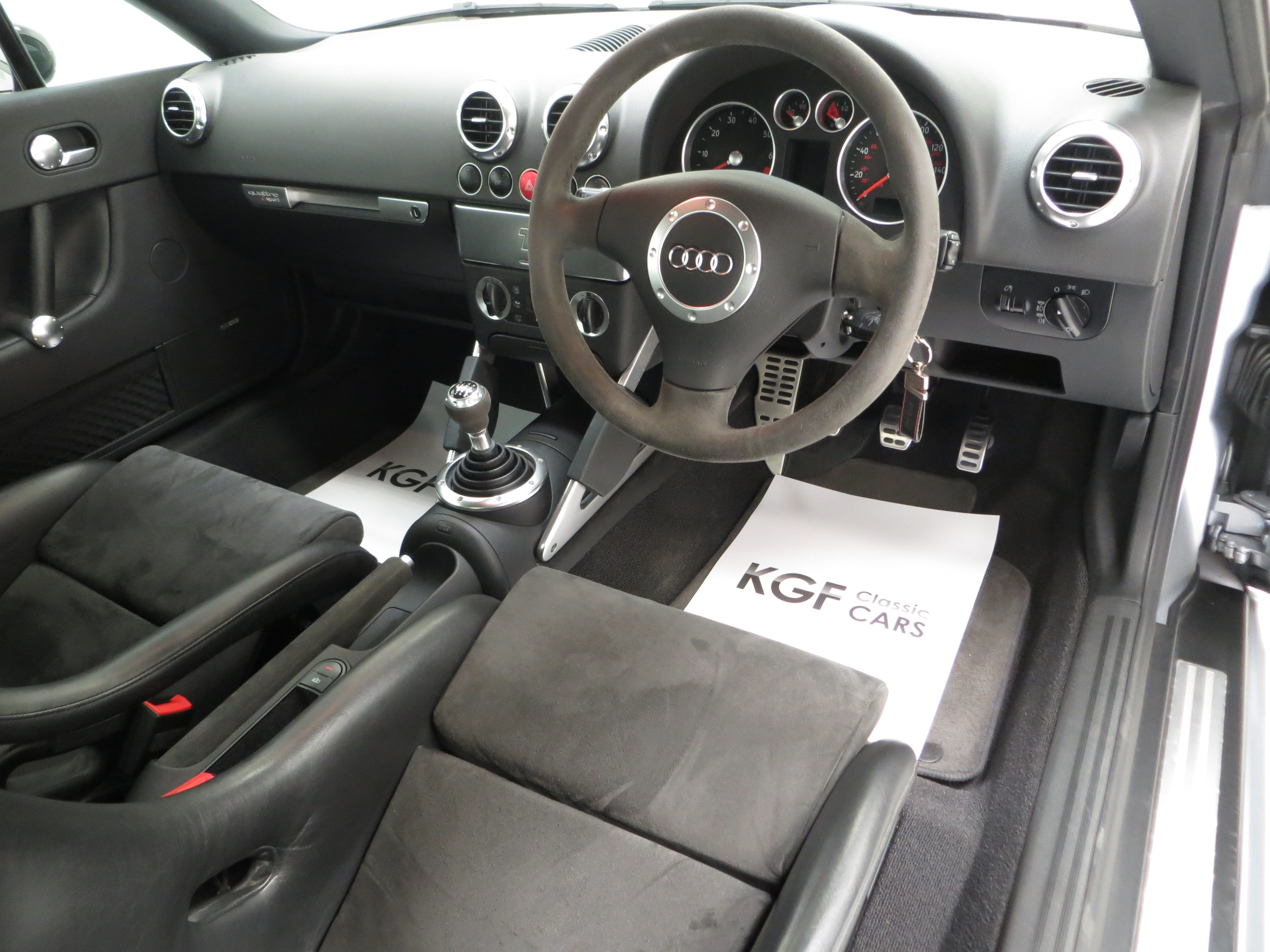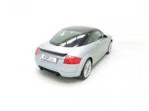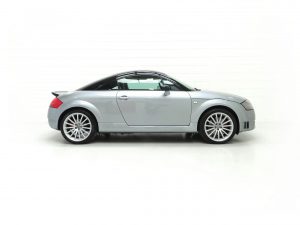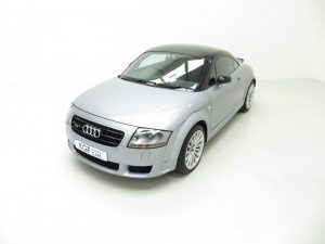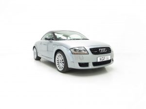 The only Audi TT model built by Audi AG high-performance specialist subsidiary Quattro GmbH in Germany, the Quattro TT Sport or TT Club Sport as it was known in Europe was built in very limited numbers. Just 800 UK cars were produced, less than the 1000 cars originally intended, and this example is finished in Avus Silver Pearl effect, (Code LY7J), with contrasting Phantom Black (Code LZ9Y). The paintwork looks superb and this completely standard example remains just as Audi intended. Expected of the vehicles age and mileage are some stone chips to the front bumper but this cars overall condition is one of being cherished. Correct black exhaust tips, larger rear spoiler and wider arch spats are unique for the TT Sport and all other trim sections are intact. Audi main dealer number plates are fitted and the front screen is the original still with the airbag warning sticker attached. An outstanding example of this much revered and coveted TT Coupe.