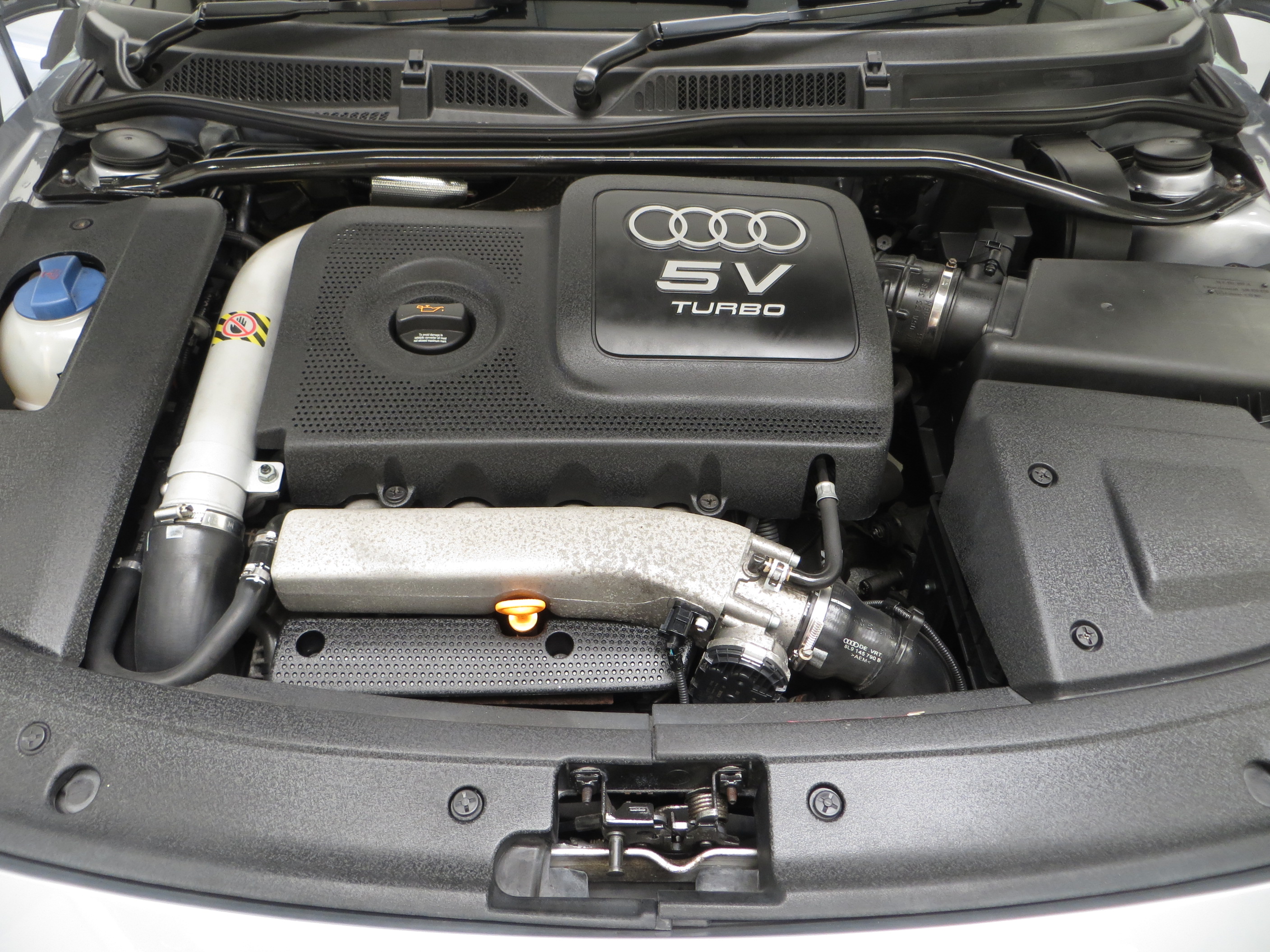 The increased power from the 1.8 turbocharged engine rising to 240bhp is the result of a different mapping profile and offers an exhilarating 0-60mph time of 5.7 seconds and limited top speed of 155mph. Further weight saving and weight distribution measures were achieved by the removal of the rear counterweight and relocation of the battery to the rear of the vehicle. The engine compartment is unmolested, very clean and has all stickers and plates clearly visible. The Quattro permanent four-wheel drive system mated to a precise 6-speed gearbox offers phenomenal stability and driver enjoyment.