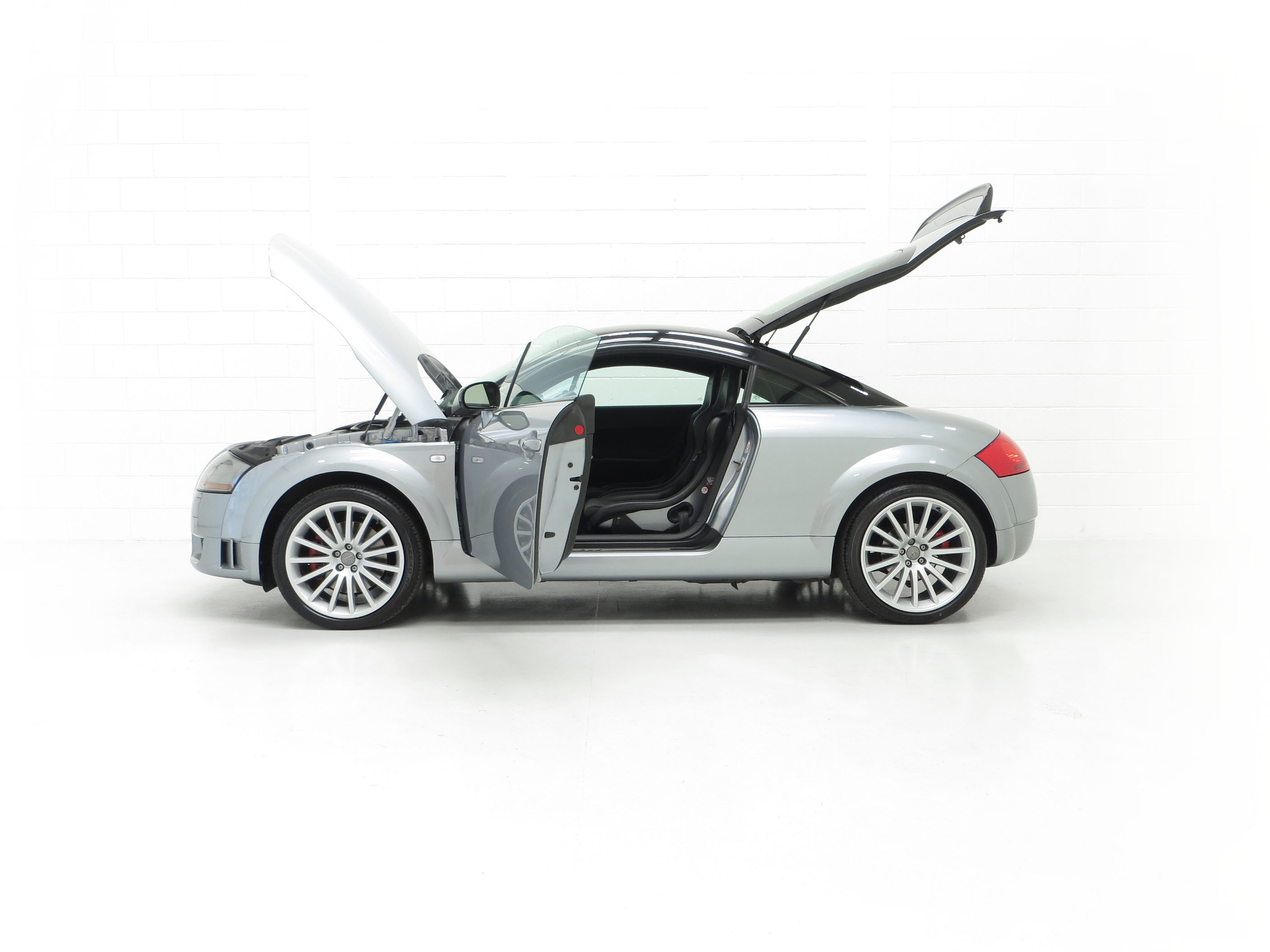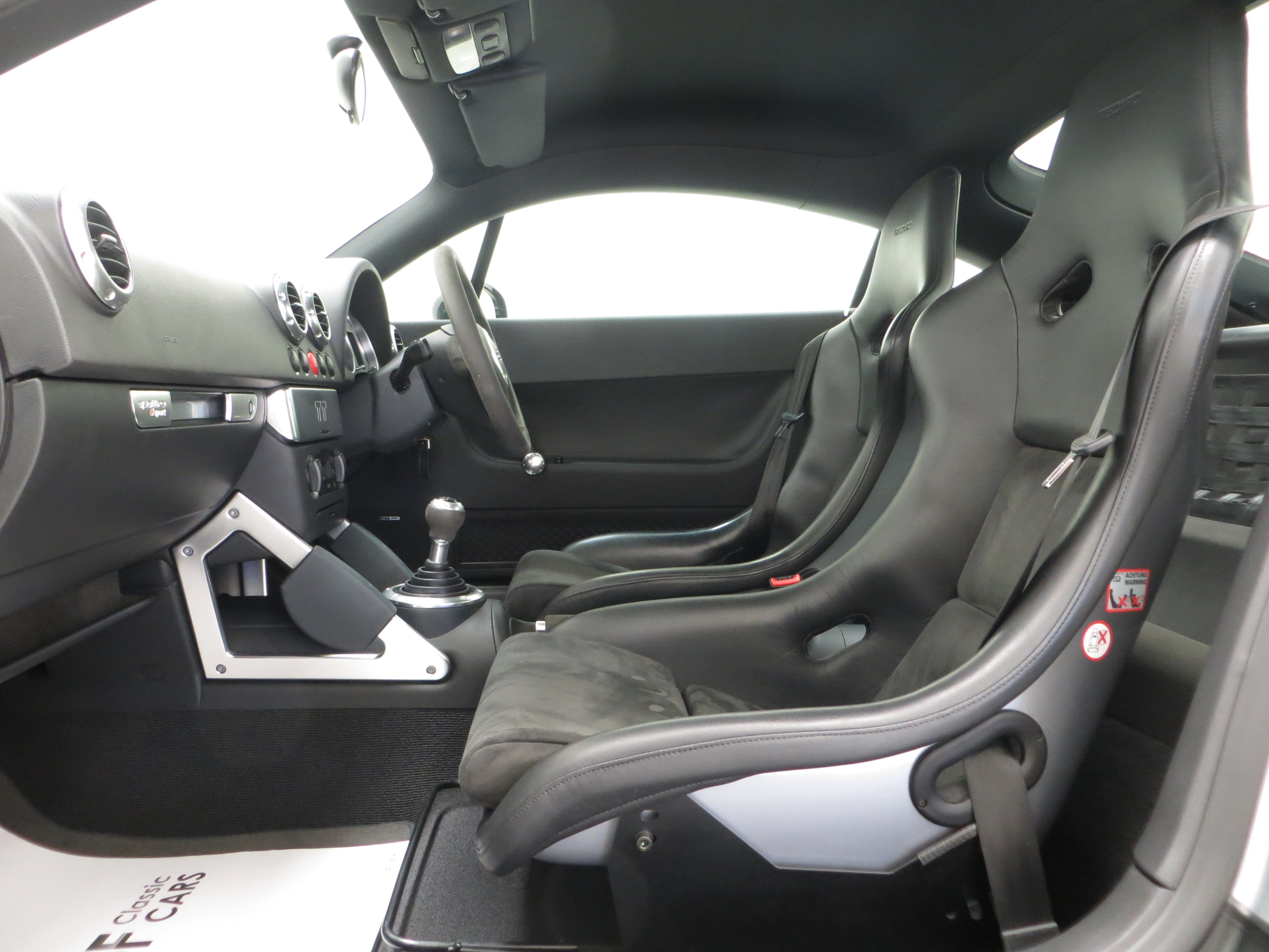 Galvanised body with crumple zones, side impact bars, xenon lights, headlamp cleaning system, front and side airbags, Aerodynamic Styling Package, Alcantara/Leather upholstery, Alcantara gear knob, handbrake and steering wheel, Recaro bucket seats with body coloured seat backs, stability bar replacing rear seats, tyre mobility system replacing spare wheel, Driver Information System (DIS), electronic climate control, Audi Chorus sound system. Factory options; BOSE speaker system.