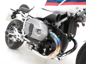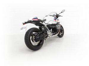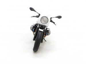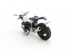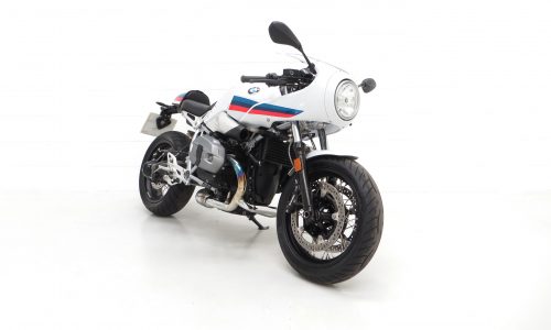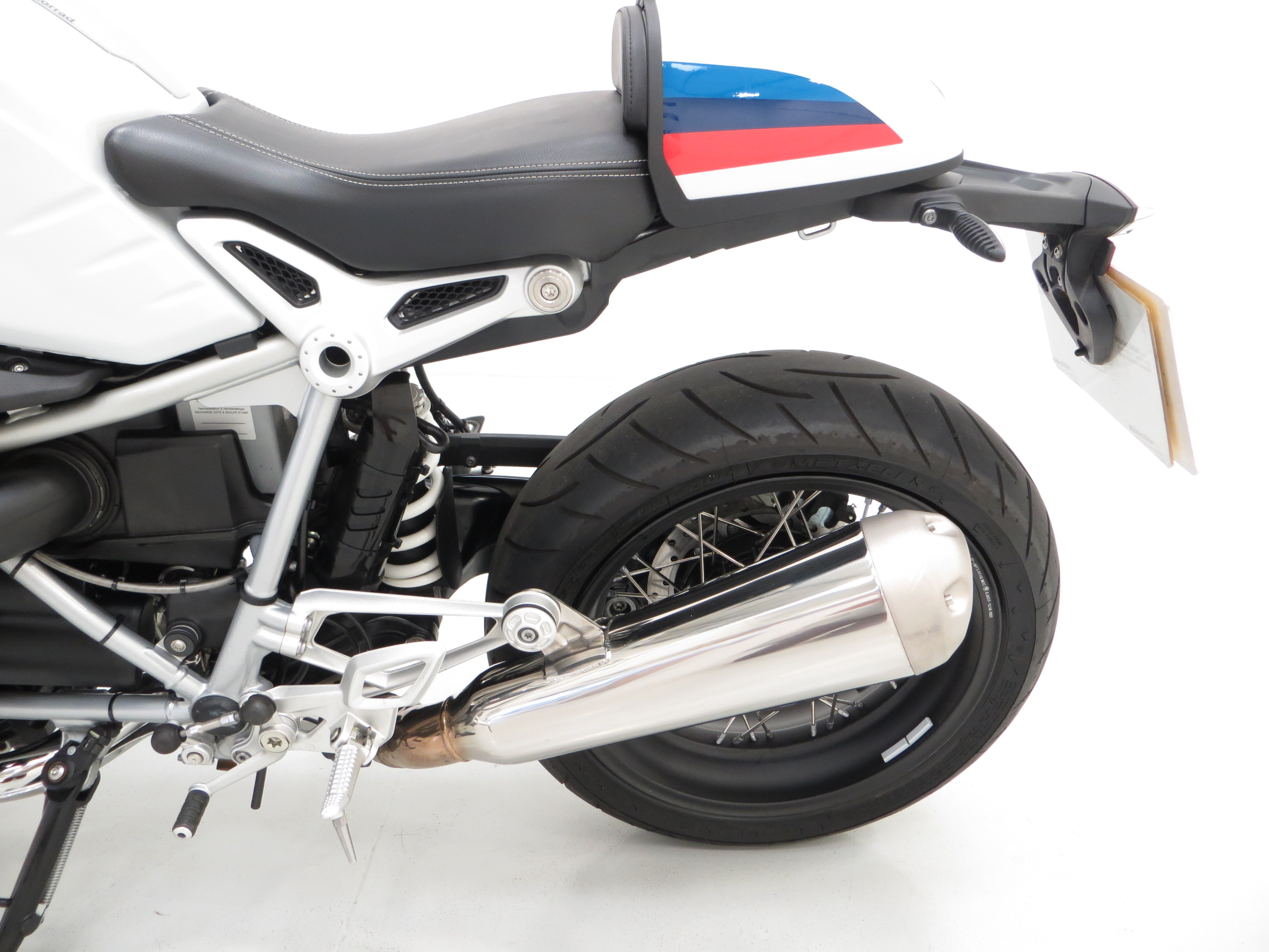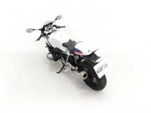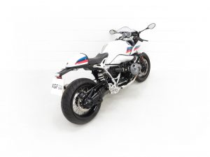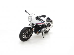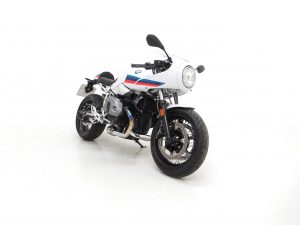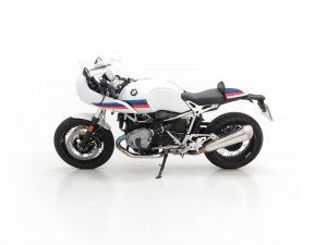 Sport-style half-shell fairing, one-piece seat with aluminium seat hump cover in body colour, steel fuel tank in body colour, BMW Motorrad ABS, die-cast aluminium single rear swing-arm with BMW Motorrad Paralever, Double disc brakes at front with four-piston fixed calipers, handlebar halves in low race position, side stand with cut-out switch, magnesium cylinder head covers, Compliant with Euro 4 emission standard, round headlight with chrome ring and BMW logo, on-board computer, digital clock, gear indicator, electronic immobilizer, power socket. R nineT Racer Sport additional equipment; Spoke wheels, chrome exhaust, LED indicators, heated grips. Dealer accessories; Datatag anti-theft security.