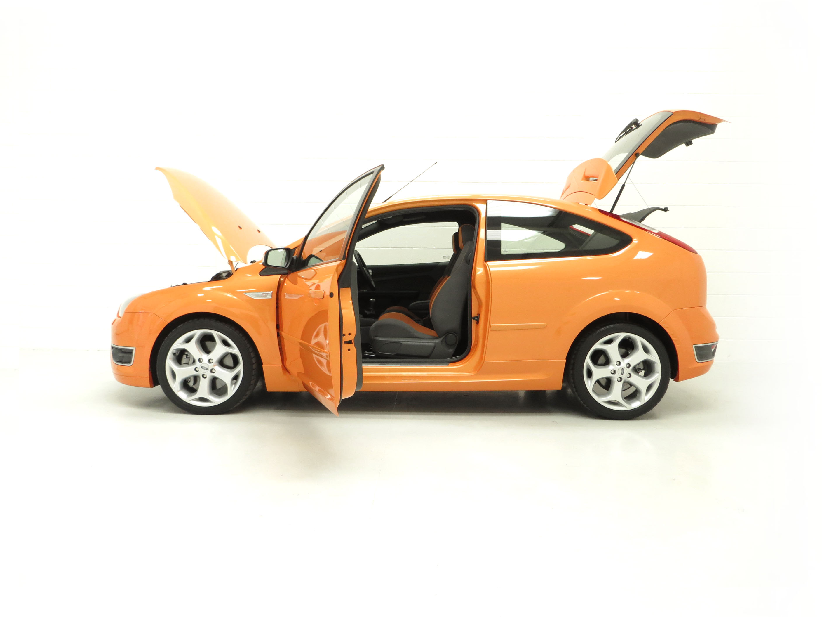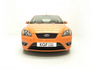 With one owner from new, 18,320 miles and full Ford main dealer service history, this factory original and totally standard Focus ST is one for the collector. A desirable 3-door version in factory optional and highly sought-after Electric Orange, (Code 7 4), which was the signature launch colour. The car looks incredible and boasts a vibrant uniform shine throughout. The original paintwork is virtually unmarked and all panels are pin straight. There is a tiny touched in chip to the rear bumper and another almost undetectable mark to the rear wing. The underside is super clean thanks to garaged storage and even fragile labels to the underside components remain intact. Supplying Ford main dealer number plates are fitted and the new vehicle invoice reveals the only owner requested the Focus badge to be removed, keeping the letters in a bag! All light clusters are crystal-clear. Unmolested examples with such outstanding credentials are rarely found and this car will delight even the most meticulous buyer.