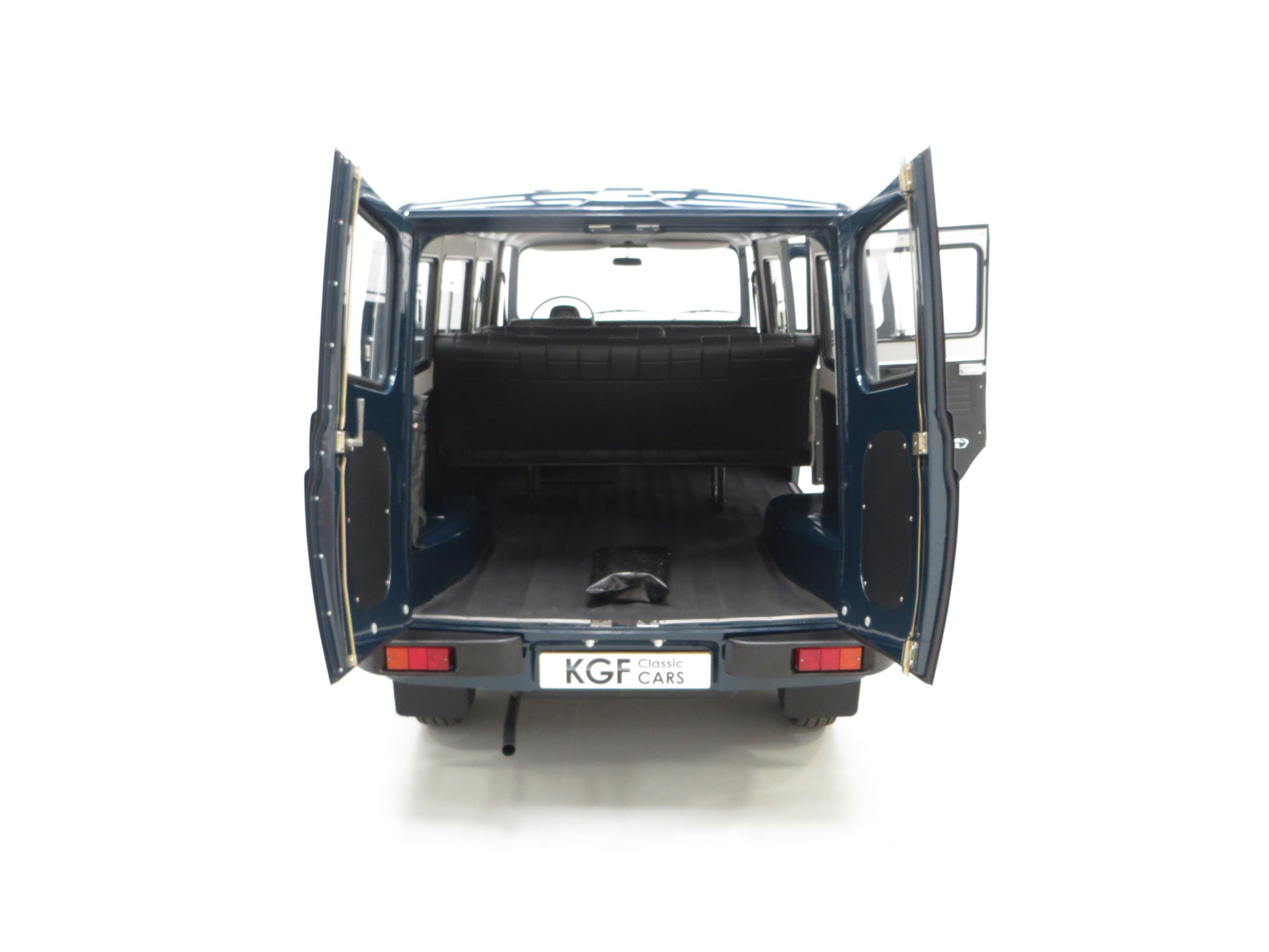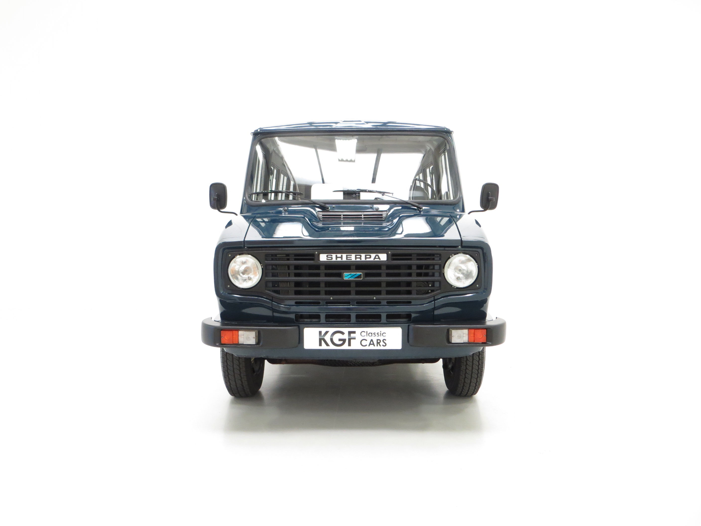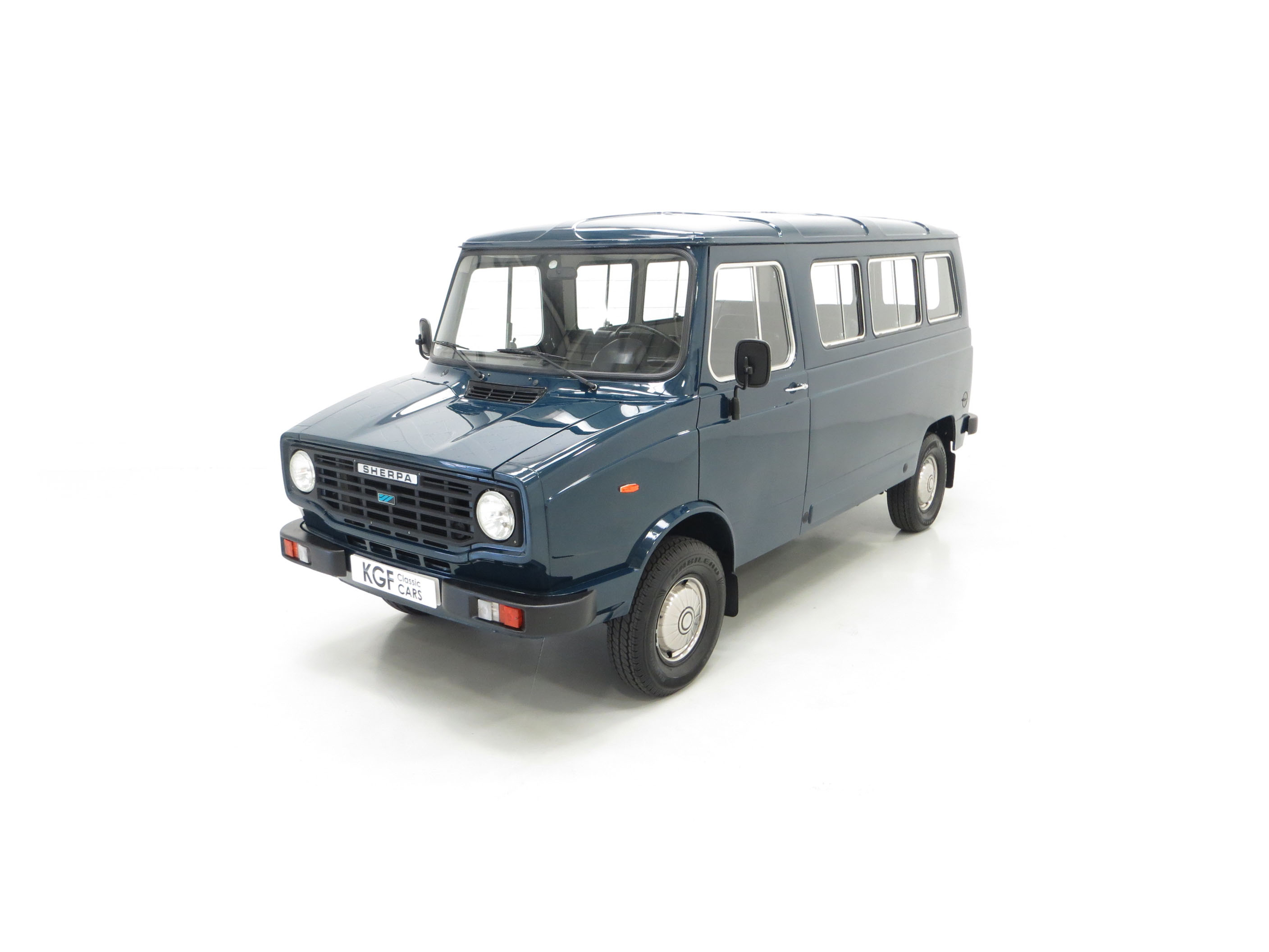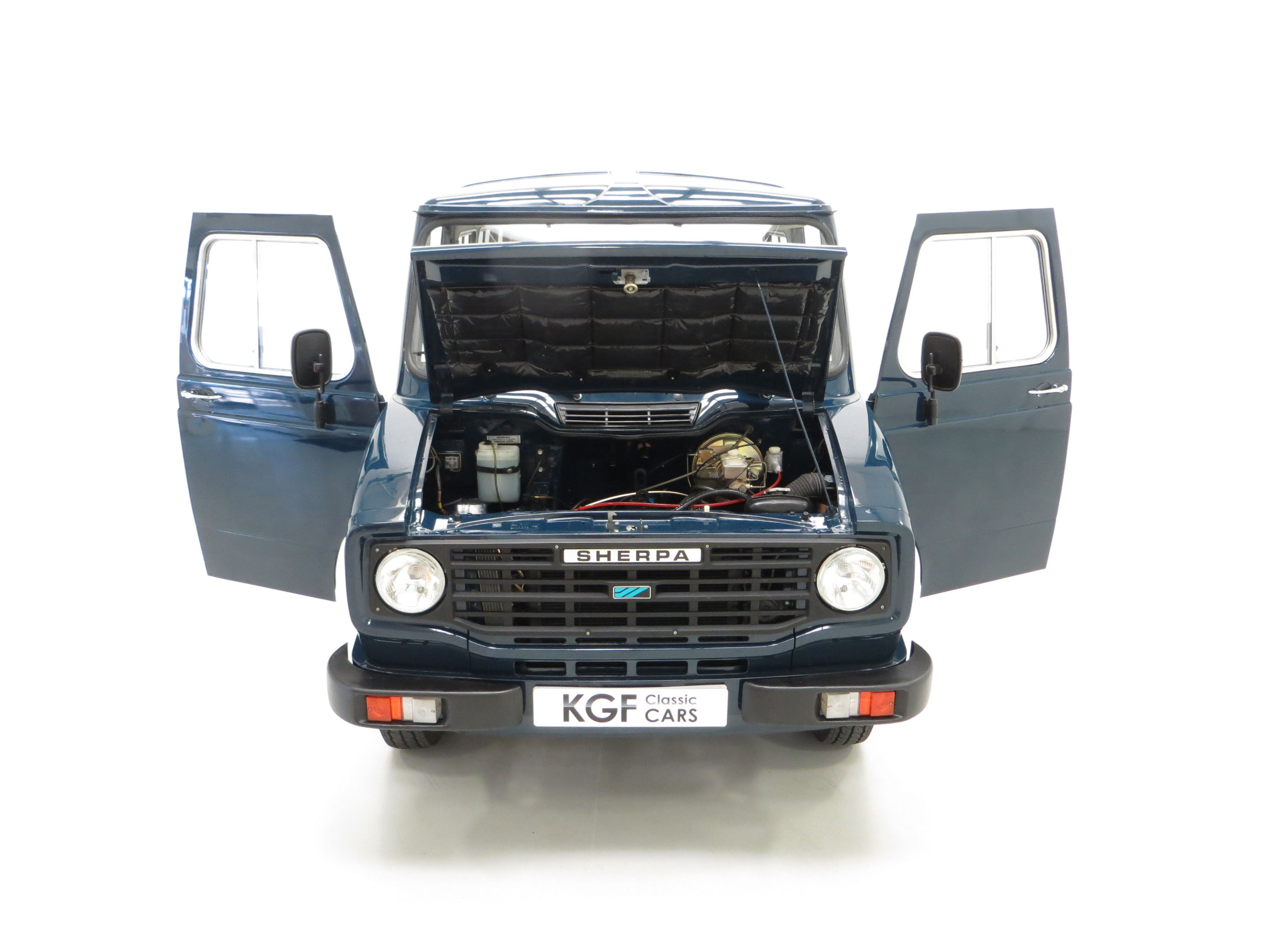 This iconic Leyland Sherpa 250 Minibus is a delivery mileage vehicle preserved in totally original condition. Factory-built, this Minibus has covered a genuine 87 miles from new and is finished in factory optional single colour gloss paint in Navy-Blue, (Code JAL). The paintwork is incredible and has been preserved thanks to dry indoor storage away from weather conditions and damaging UV light. Most examples began to rust and had acquired a plethora of bodywork damage within their first year, yet this example boasts perfectly straight panels and no rust whatsoever. Further factory originality is seen in the panel seams, spot welds and genuine ‘Leyland standard’ paint with the occasional run! Close scrutiny reveals nothing more than a small ding to the driver’s door and one to the nearside rear panel. A repair to the drivers step due to jacking error has been professionally carried out. The underside is equally as breath-taking. Thin poorly applied factory underseal remains with areas missed due to poor quality control and full inspection of the box sections and structure will amaze. There are coloured factory paint dabs, PDI markings and even a paper parts label still attached to one rear leaf spring! This is an astonishing vehicle.