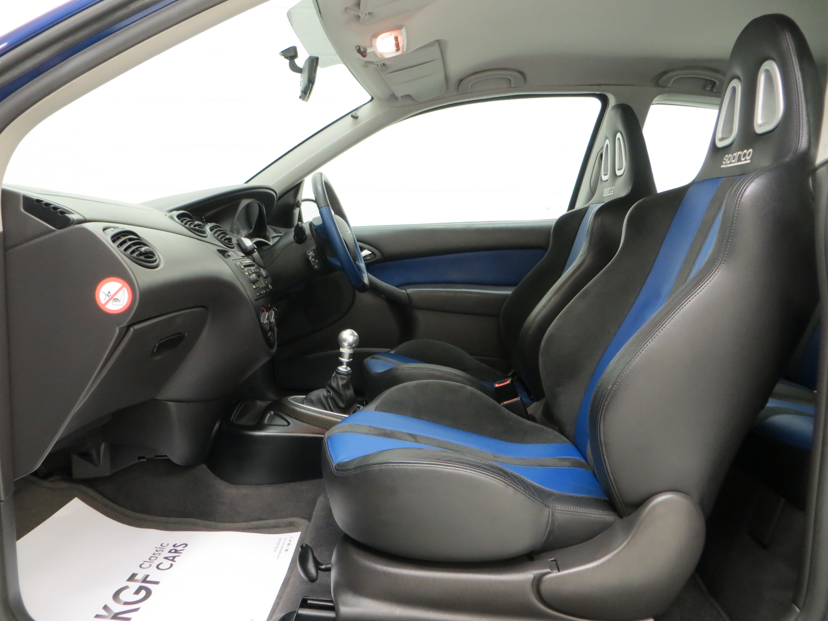 Computer optimised unitary welded steel body, rigid occupant safety cell, energy absorbing crumple zones, wider front and rear pressed steel wings, auxiliary air intakes, aerodynamic splitter and rear wing, mounted side sills, modified lower rear apron, driver and front passenger airbags, air conditioning, leather sports steering wheel with blue inserts, carbon fibre centre console with start button, limited edition number plaque, Sparco aluminium handbrake, gear knob and pedals, boost gauge and ‘change up light’, bright metal tread plates with RS script, stereo radio/6CD model 6006E, Thatcham CAT 1 alarm. Accessories; RS floor mats, Parrott Bluetooth system, ScanGauge, KW coilover kit.