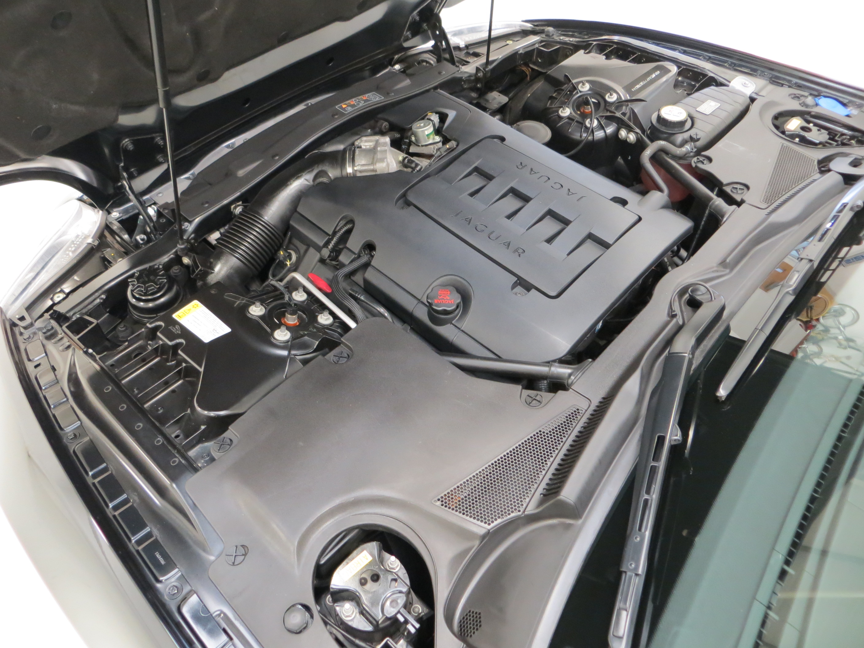 The sophisticated AJ-V8 4.2 litre 32 valve, all aluminium lightweight engine packs 298bhp and 420Nm of torque, enough to propel this Cat to 60mph in 6.3 seconds and an electronically limited top speed of 155mph. The engine bay is spotlessly clean and all factory plates and stickers are displayed, the engine itself being a V8 object of beauty. The electronically controlled intelligent six-speed automatic transmission with sequential shift and sport mode operates superbly to deliver a seamless surge-like power delivery.