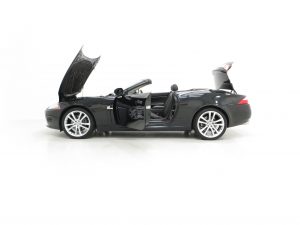 All-aluminium convertible body, automatic folding roof and aluminium tonneau cover, side power vents, Rollover protection system, Trac Dynamic Stability Control, front and side airbags, ISOFIX, Bi-Xenon headlamps, integrated corner lamps, automatic headlamp levelling, automatic headlamp on and rain-sensing wipers, headlamp powerwash, rear park assist with touchscreen visual aid, puddle lights, electric front seats/head restraints with memory, heating, and bolster adjust, dual zone climate control, cruise control with automatic speed limiter, tailored Jaguar floor mats, 7in touch screen control system, Bluetooth telephone connectivity, Navigation system. Factory Options; Senta 20in alloy wheels, heated folding exterior mirrors, heated windscreen, front parking sensors, Luxury Sport Interior theme, heated leather steering wheel, Aluminium Knurled and Piano Black centre console and fascia, Jaguar Smart Key system with keyless entry, Genuine Jaguar boot carpet protector. Portfolio Special Options; Bowers & Wilkins surround sound system.