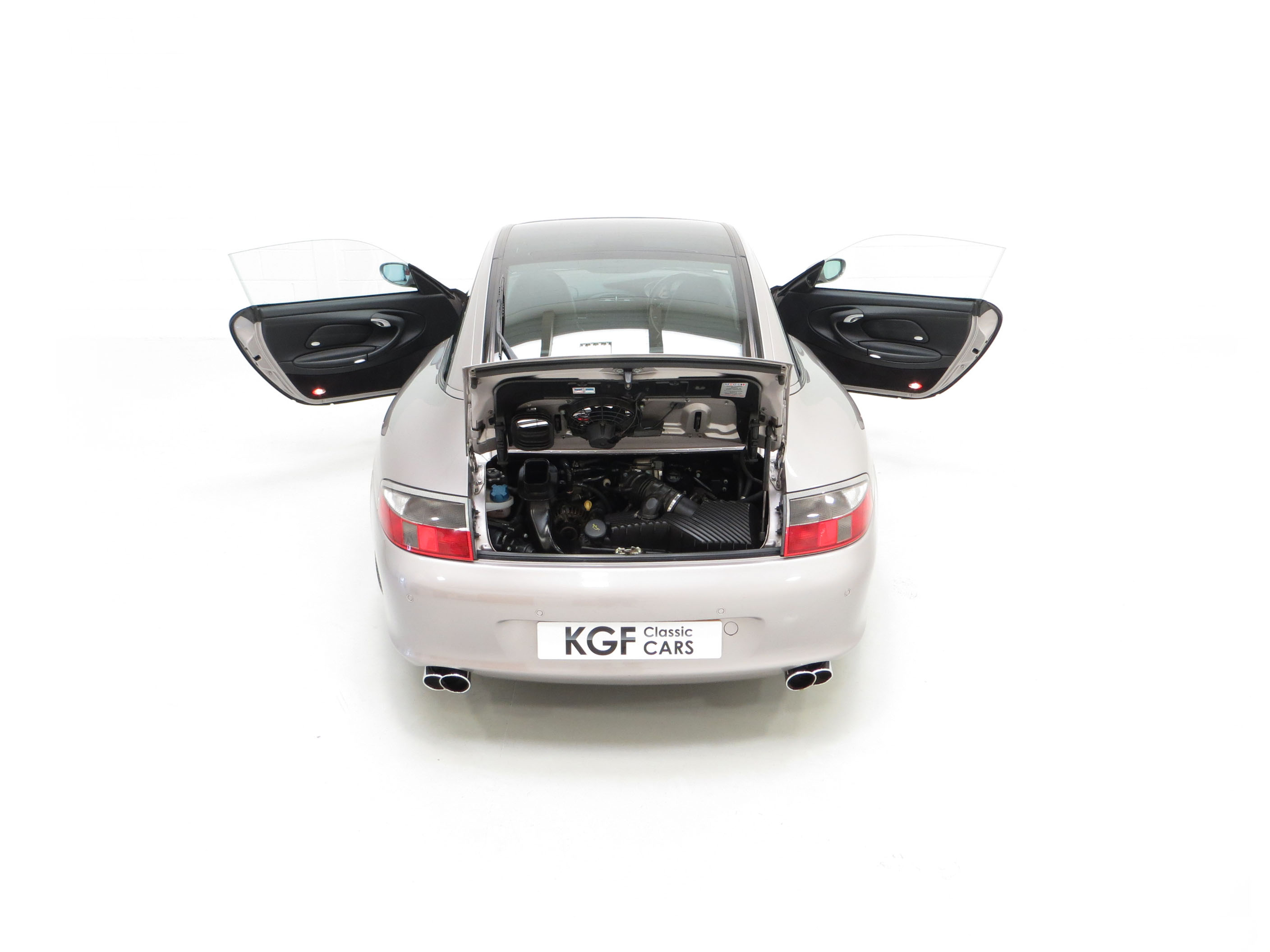 The legendary flat six 3.6-litre engine in this 911 develops 320bhp at 6800rpm and 370Nm of torque at 4250rpm. A top speed of 173mph is quoted with 0-62mph despatched in 5.7 seconds. Lifting the engine lid reveals a spotlessly clean engine bay complete with factory stickers and the Mobil 1 Porsche Label. The factory optional Tiptronic S system with steering wheel shift control operates perfectly in harmony with the PSM (Porsche Stability Management).
