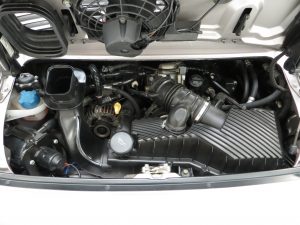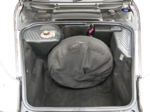 Sporting hand-crafted leather seats in 2+2 configuration finished in Black Leather, (Code AH), are factory optional. Having covered such low mileage, the supportive seats are in exemplary condition with firm seat structure and supple leather. Very light hairline creases to the driver’s seat bolsters can be seen. Door apertures display factory stickers. The luggage area is very clean and houses the unused space saver spare wheel still displaying rubber nobbles and coloured banding. The tightly grouped overlapping layout of the five gauges with the tachometer in the centre are an unmistakable testament to the 911’s racing heritage and everything functions correctly with precision including the climate control and CDR23 stereo. A rewarding and perfectly-engineered cockpit.