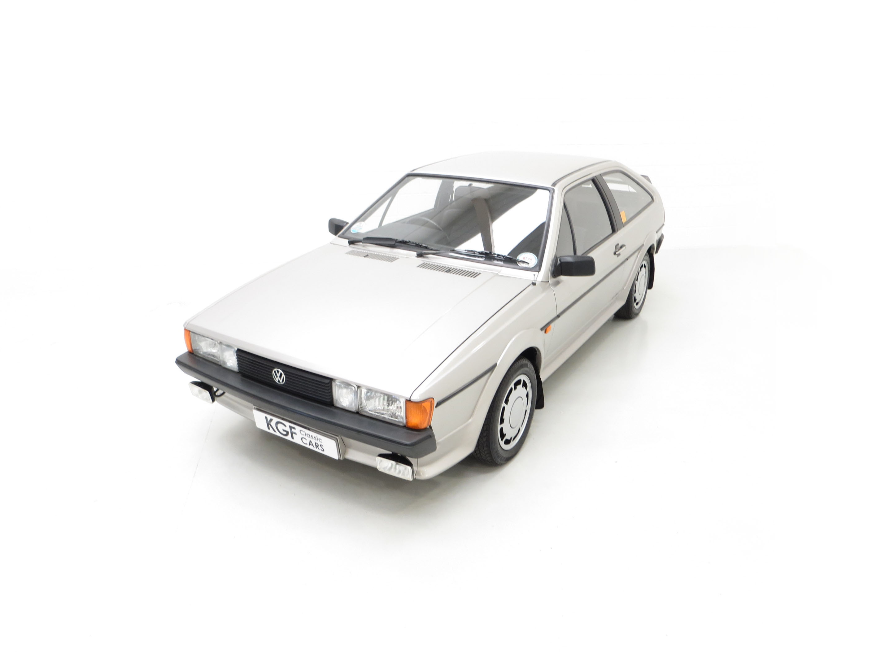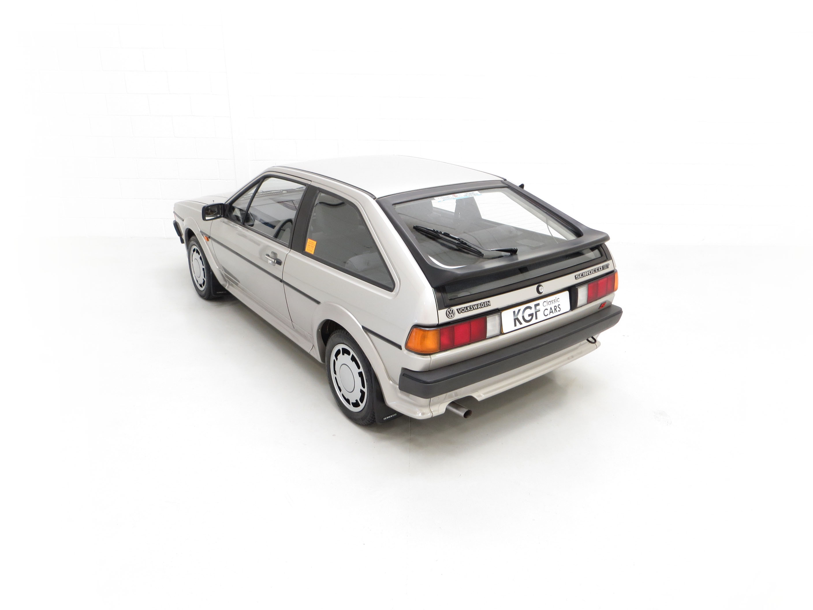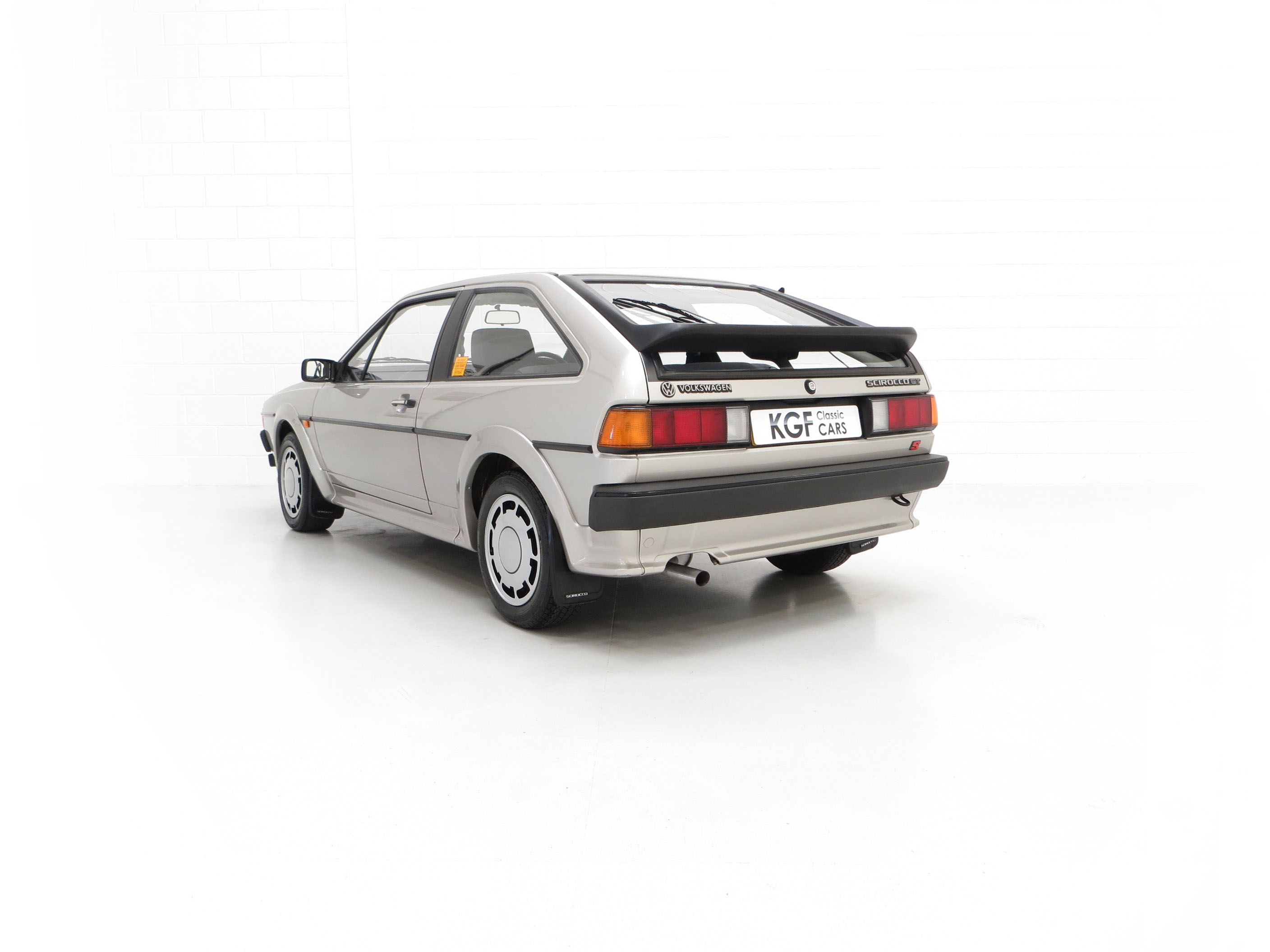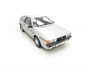 This stunning Volkswagen Scirocco is finished in Flash Silver Metallic, (Code LP7Y), one of only three colours available for the Limited-Edition GTS model. The paintwork boasts a uniform shine and high polished finish to the original factory panels. A previous conscientious owner has carefully touched in light scratches and stone chips and there is a very small scuff to the lower rear apron. The deliciously 1980’s body styling skirts and spoilers are fully intact with a tiny stone chip hole to one front light lens. The supplying Volkswagen main dealer was clearly keen on brand exposure with original branded number plates, rear screen sticker, windscreen service sticker and tax disc holder all still fitted. Remaining just as Volkswagen intended, this lovely Scirocco GTS is a rare survivor.