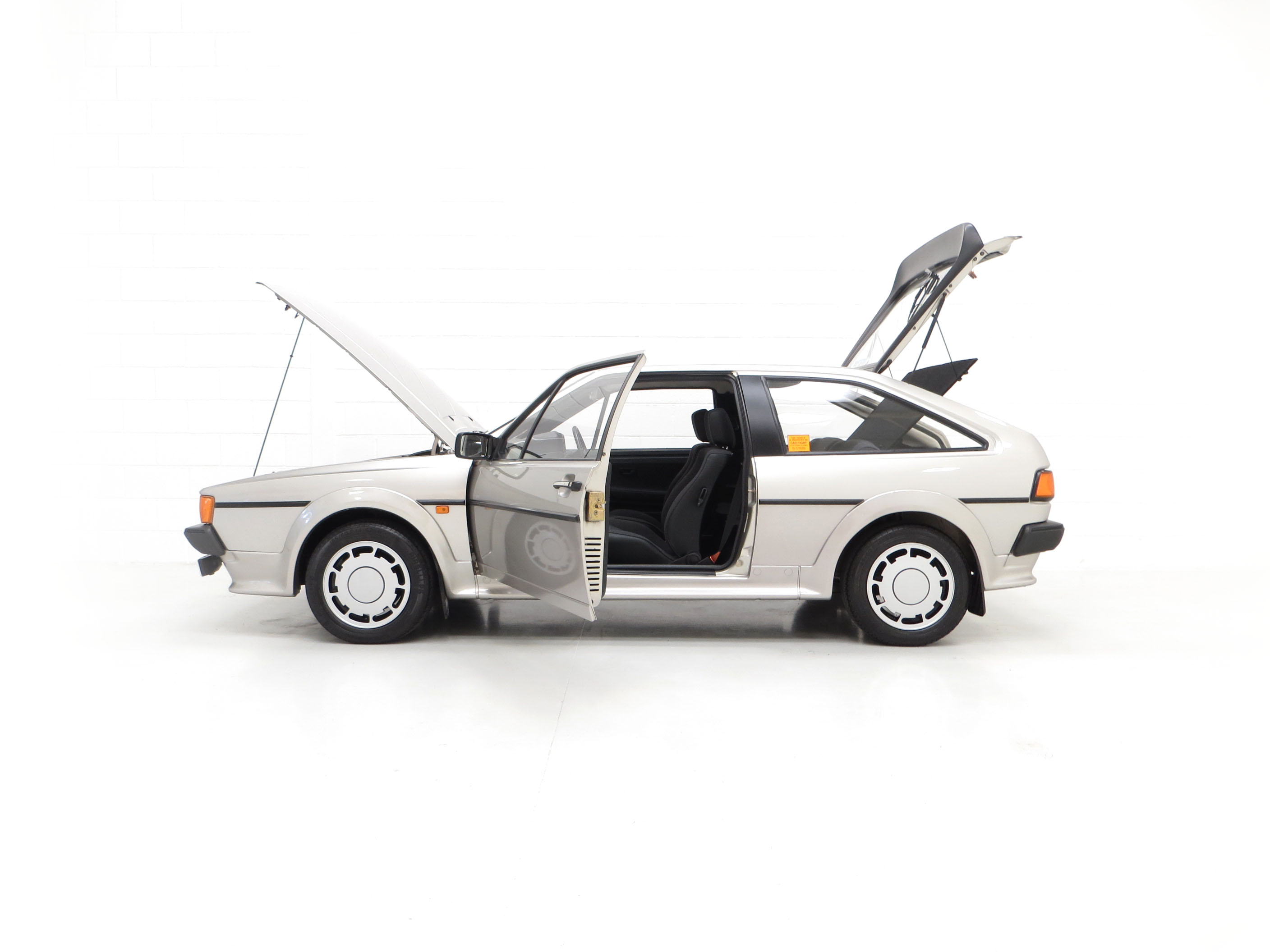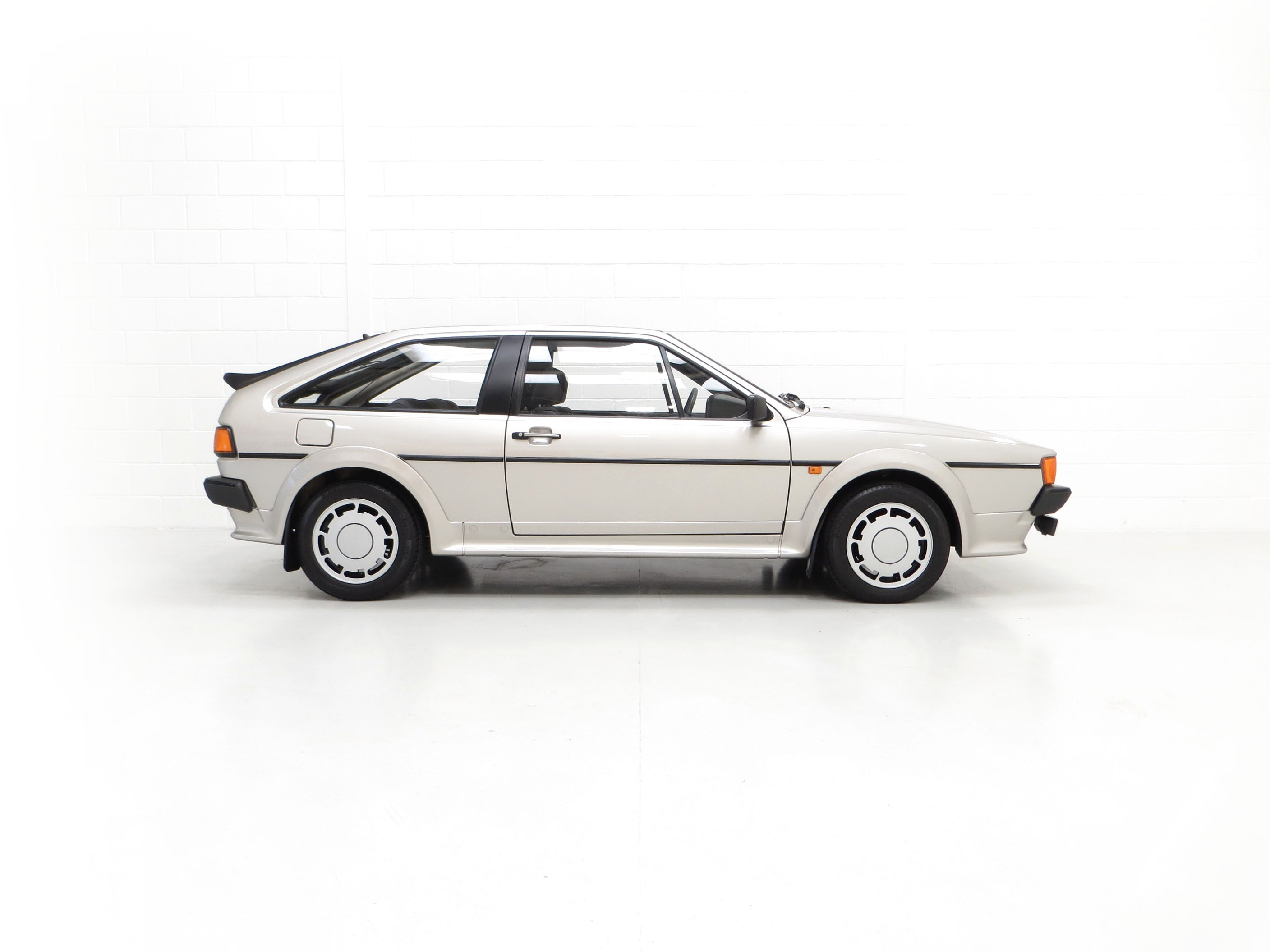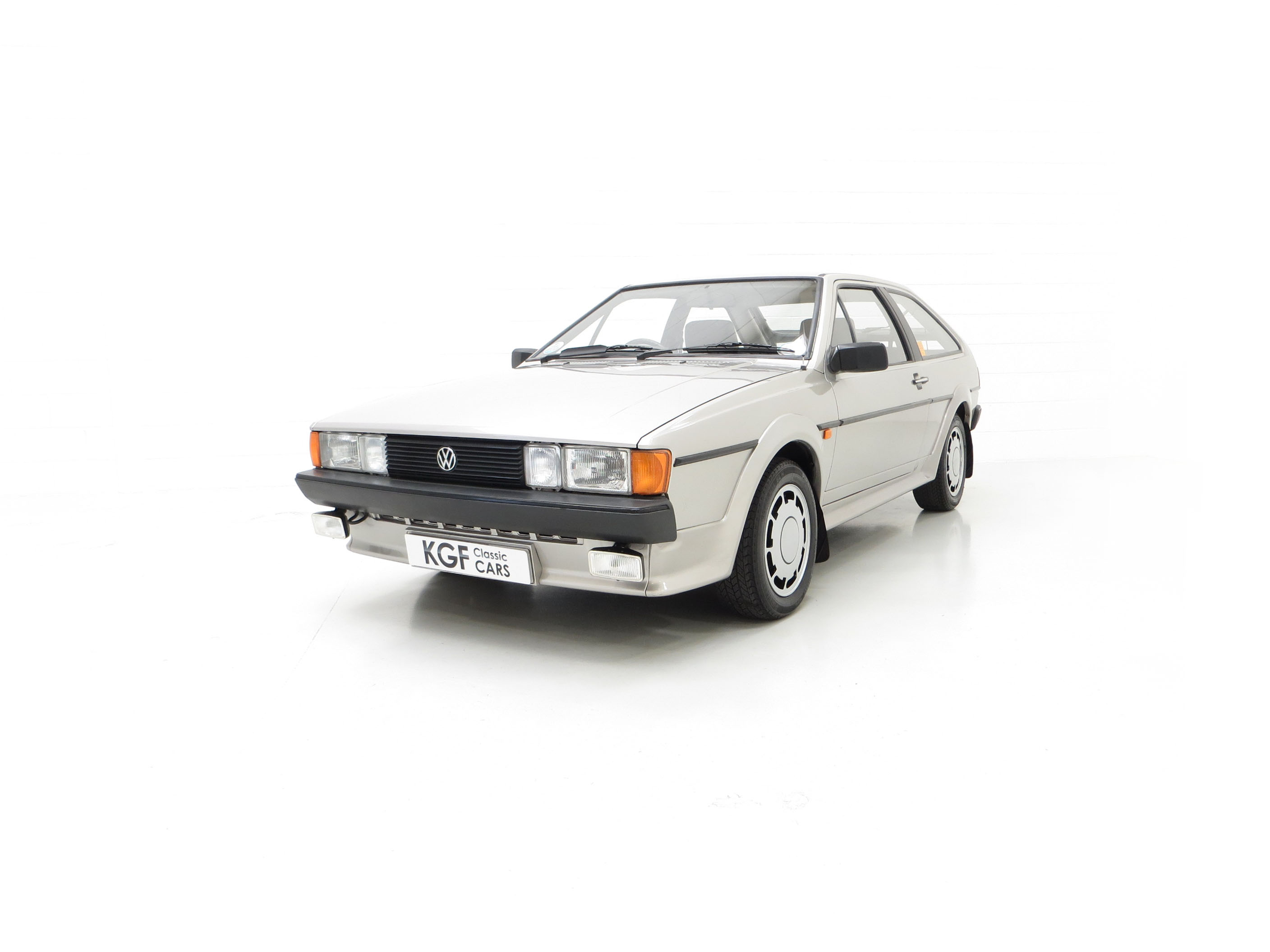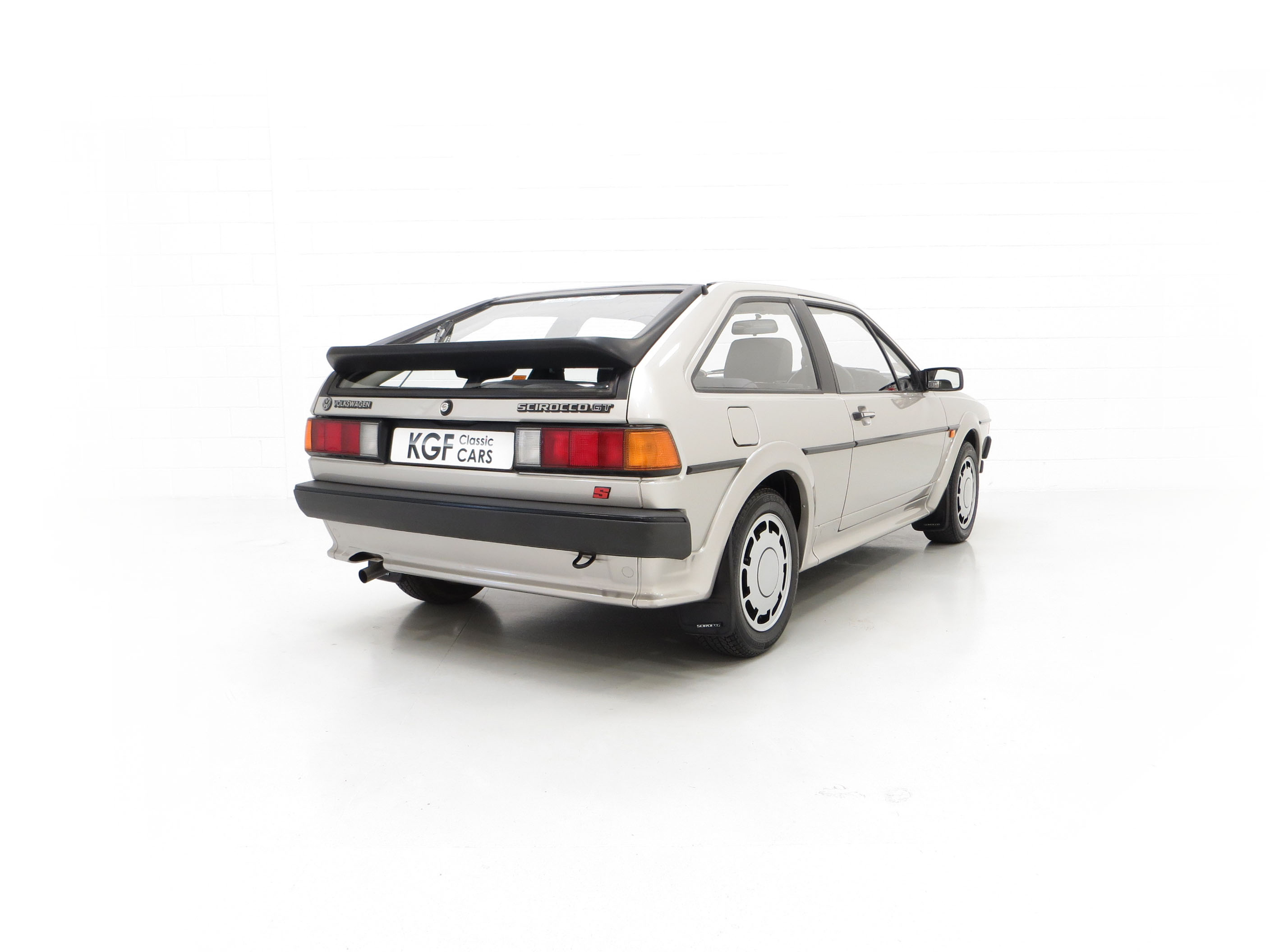 This stunning Volkswagen Scirocco is finished in Flash Silver Metallic, (Code LP7Y), one of only three colours available for the Limited-Edition GTS model. The paintwork boasts a uniform shine and high polished finish to the original factory panels. A previous conscientious owner has carefully touched in light scratches and stone chips and there is a very small scuff to the lower rear apron. The deliciously 1980’s body styling skirts and spoilers are fully intact with a tiny stone chip hole to one front light lens. The supplying Volkswagen main dealer was clearly keen on brand exposure with original branded number plates, rear screen sticker, windscreen service sticker and tax disc holder all still fitted. Remaining just as Volkswagen intended, this lovely Scirocco GTS is a rare survivor.