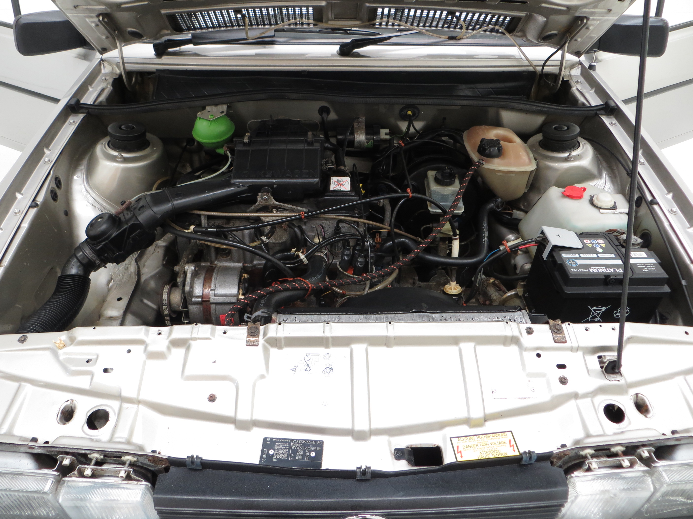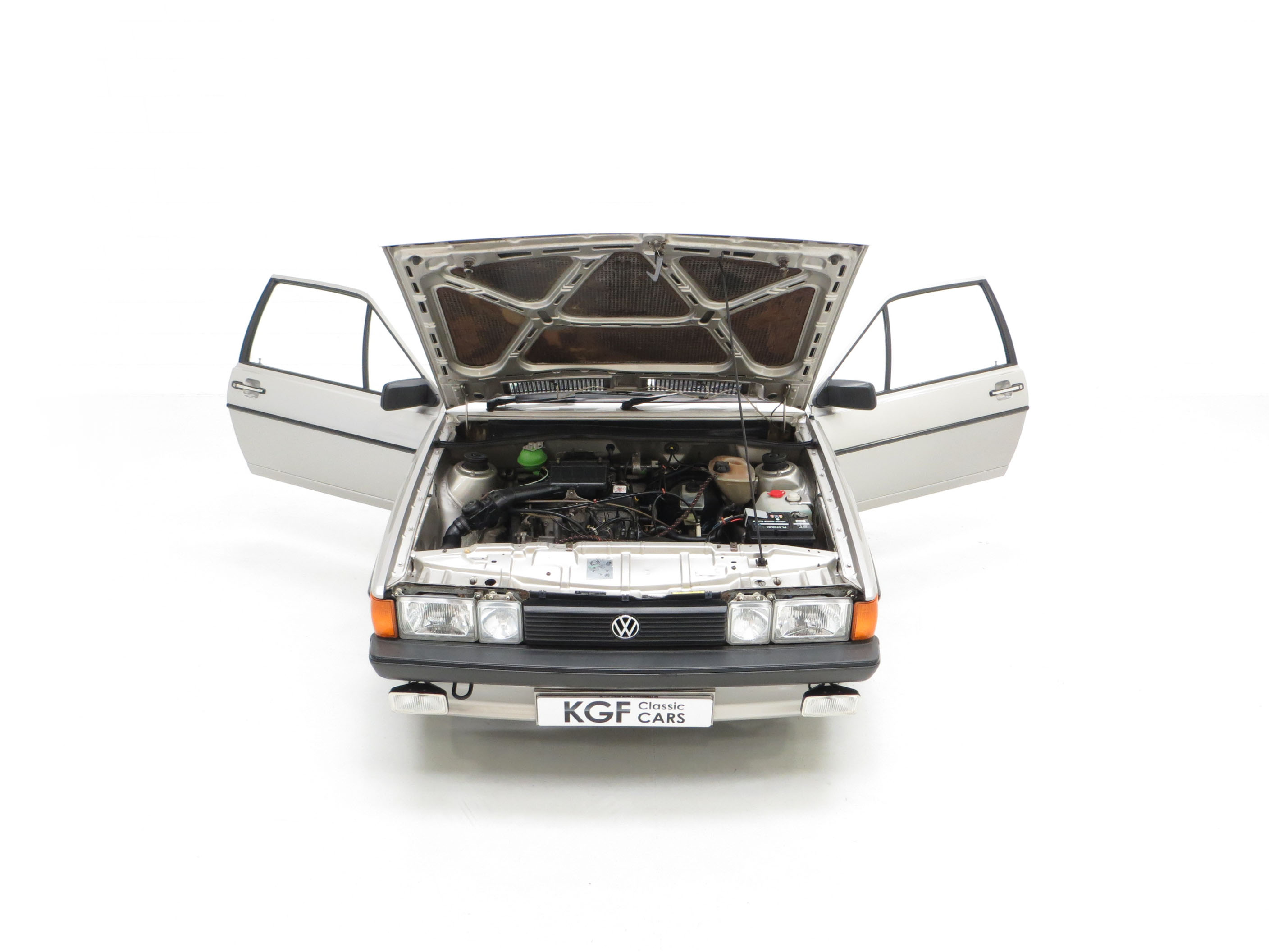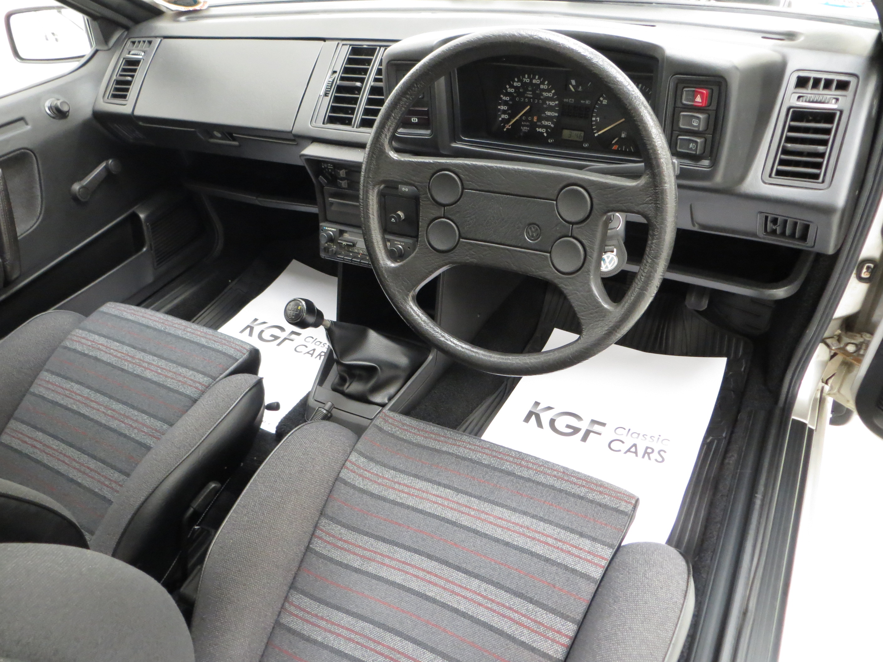 The legendary rock-solid Volkswagen build quality coupled with just 35,135 miles covered has ensured this iconic interior has remained in remarkable condition. The GTS sports interior in stylish black/red/grey cloth, (Code UL), is spotlessly clean and bright. The supportive sports front seats have firm shapely bolsters and no wear or nicks whatsoever. All doors cards, headlining and interior trim is in excellent order and the carpets remain protected by the dealer fitted genuine VW rubber floor mats. The fabulously retro dashboard and fascia houses fully operational equipment, including the Blaupunkt Oxford stereo, and all switchgear retains the quality functionality you would expect from 1980’s Volkswagen. The luggage area is pristine with immaculate polished inner wheel tubs and unmarked carpet. The original space saver spare wheel with jack and brace is present along with even the paper build label and factory inspection stickers!
