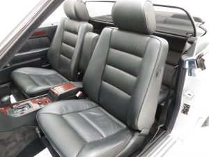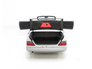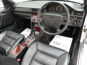 Luxury and opulence in abundance, a cabin space that was, and in many ways still is, ahead of its time. Features such as electrically adjustable head restraint height to compliment the electric front seats as well as the automatic seat belt feeders hint towards the ‘over engineering’ of the Mercedes-Benz W124. The contoured seats trimmed in sumptuous Black Leather, (Code 261), are ergonomically designed for optimum comfort with lateral support and seat-suspension designed to harmonise with the vehicles actual suspension. The fine wood veneer has a deep rich finish and the needles to the dials are bright orange thanks to being garage stored. The carpets have been protected from new by genuine Mercedes velour mats. The wind deflector and first aid kit are both present in the clean boot area and a replacement Sony head unit was fitted by Mercedes-Benz Gillingham in 2006. Outstanding Mercedes-Benz craftsmanship.