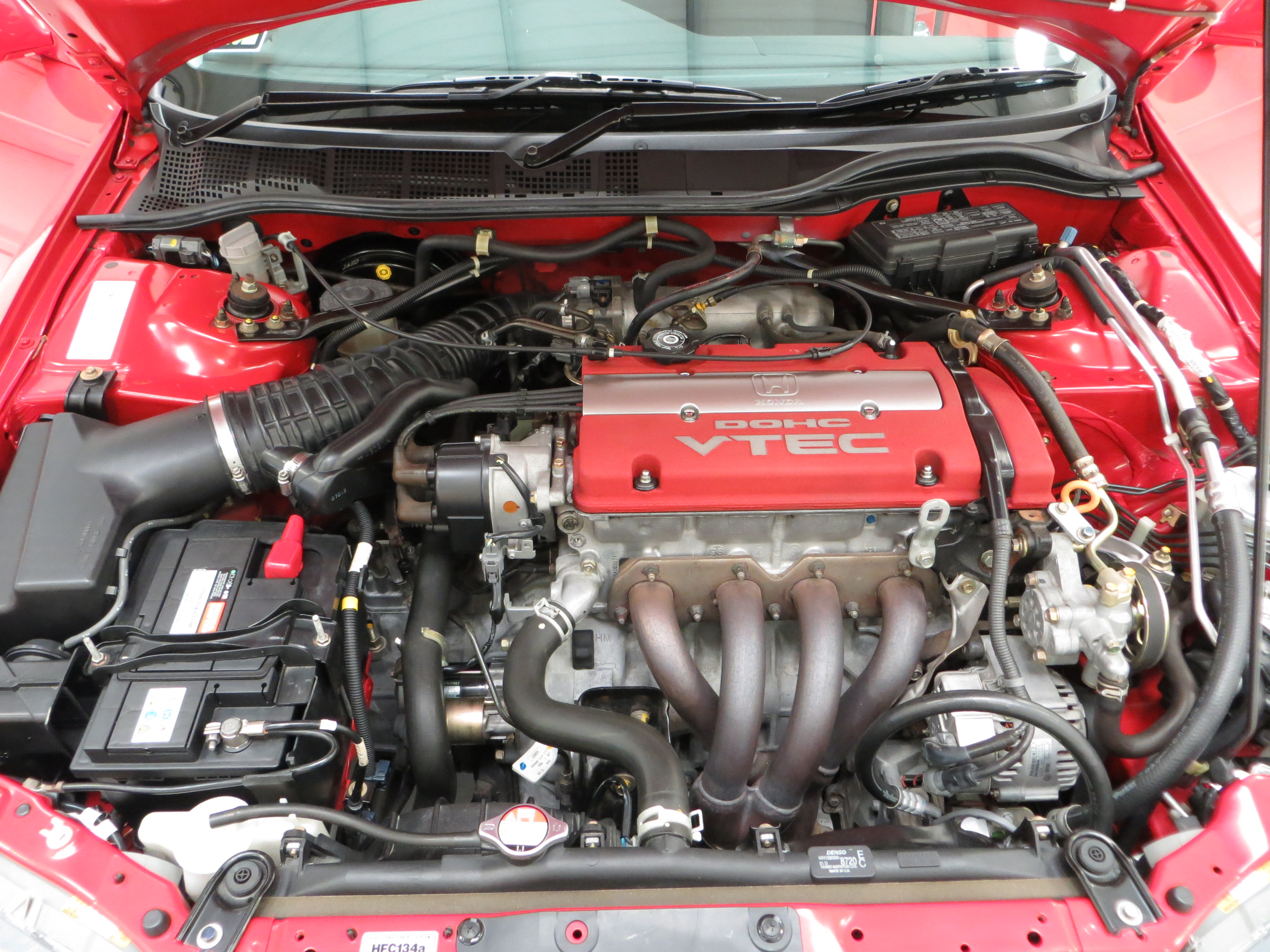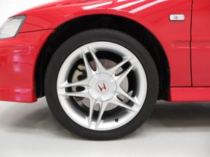 The high-gloss paint finish looks alluring finished in Vesuvio Red, (Code R502) and thanks to strict garage storage and an ultra-low 11,897 miles, is stunning. There are no dings or scuffs and the vehicle has never had a machine polish still boasting the preferred factory full protection. The sculpted front spoiler has a few diminutive stone chips, barley visible to the naked eye. The body coloured door mirrors still have factory check stickers to the underside and dealer branded number plates, boot lid and rear window sticker are affixed. The HID light clusters are crystal clear and all glass is original Honda branded with tiny delamination to one corner of the front screen. A single-minded sports machine and no doubt, the very best example to be offered.