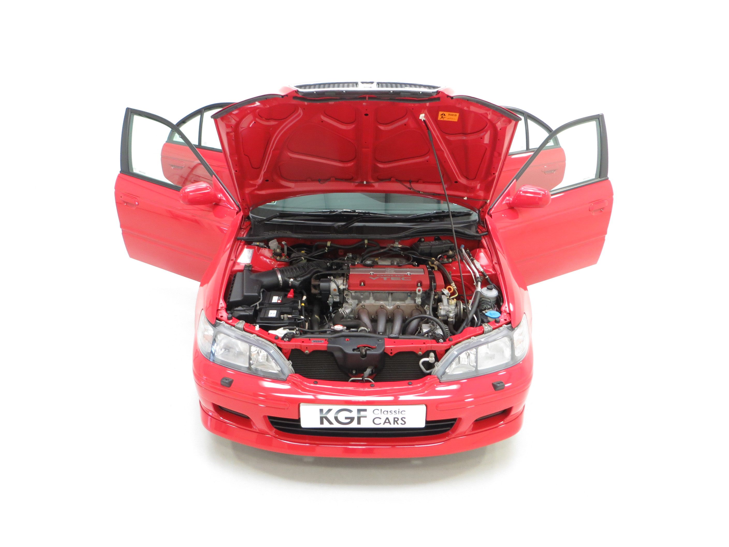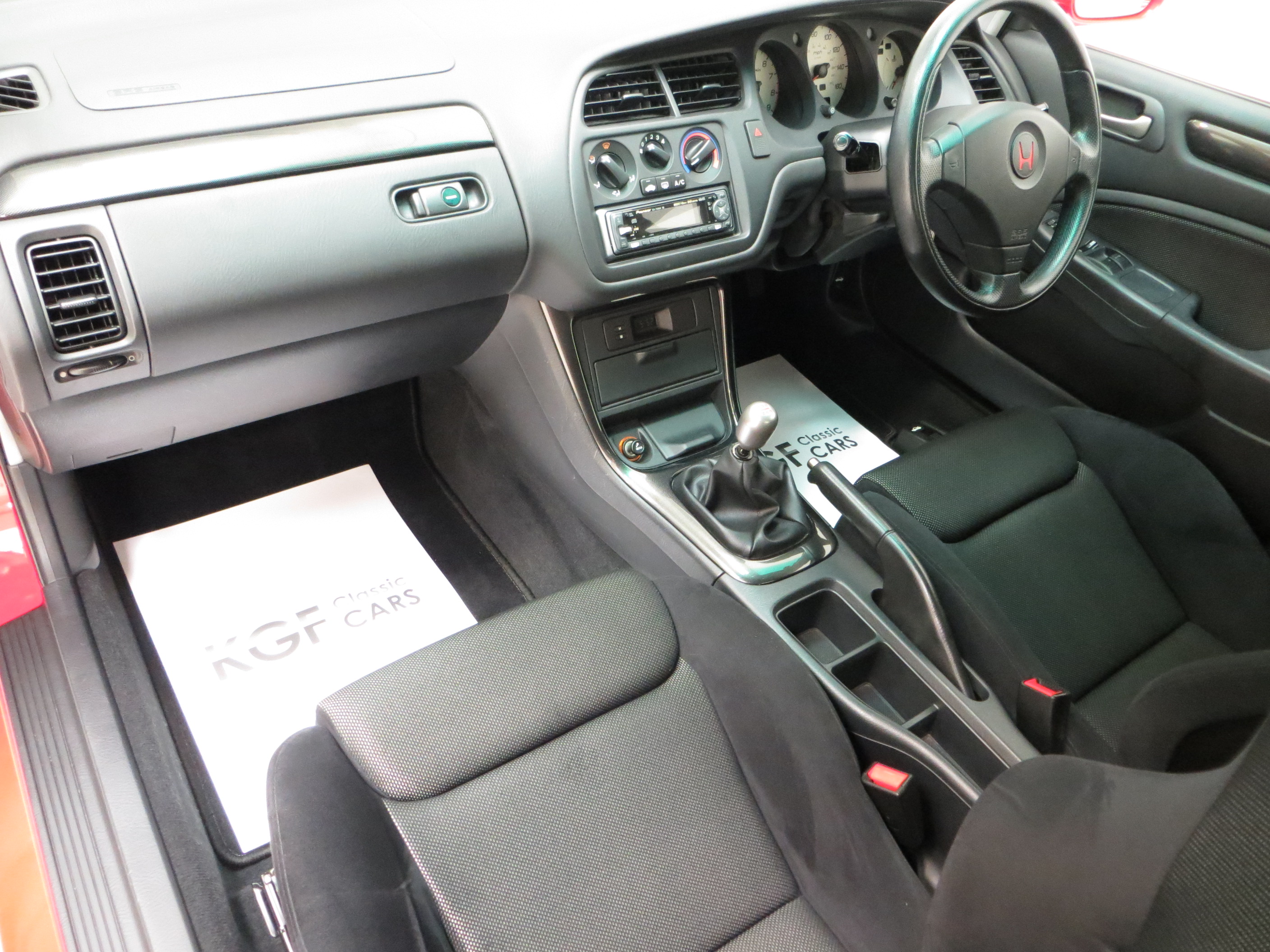 The 2.2 litre DOHC VTEC engine includes detailed engineering refinements to increase airflow at high engine speeds, reduce friction and speed up exhaust gas flow, resulting in an exhilarating 209bhp. When the engine speed reaches a certain point, the VETEC cuts in, the cam profile changes and the results are breathtaking. A top speed of 142mph and 0-62mph in 7.5 secs is quoted. All this in the safe knowledge the car has been maintained exclusively and regularly by the supplying Honda main dealer. The Type-R’s close-ratio gearbox, performance clutch and helical limited slip differential permit rapid acceleration and improve traction out of corners. This car has trigger-like responsiveness.