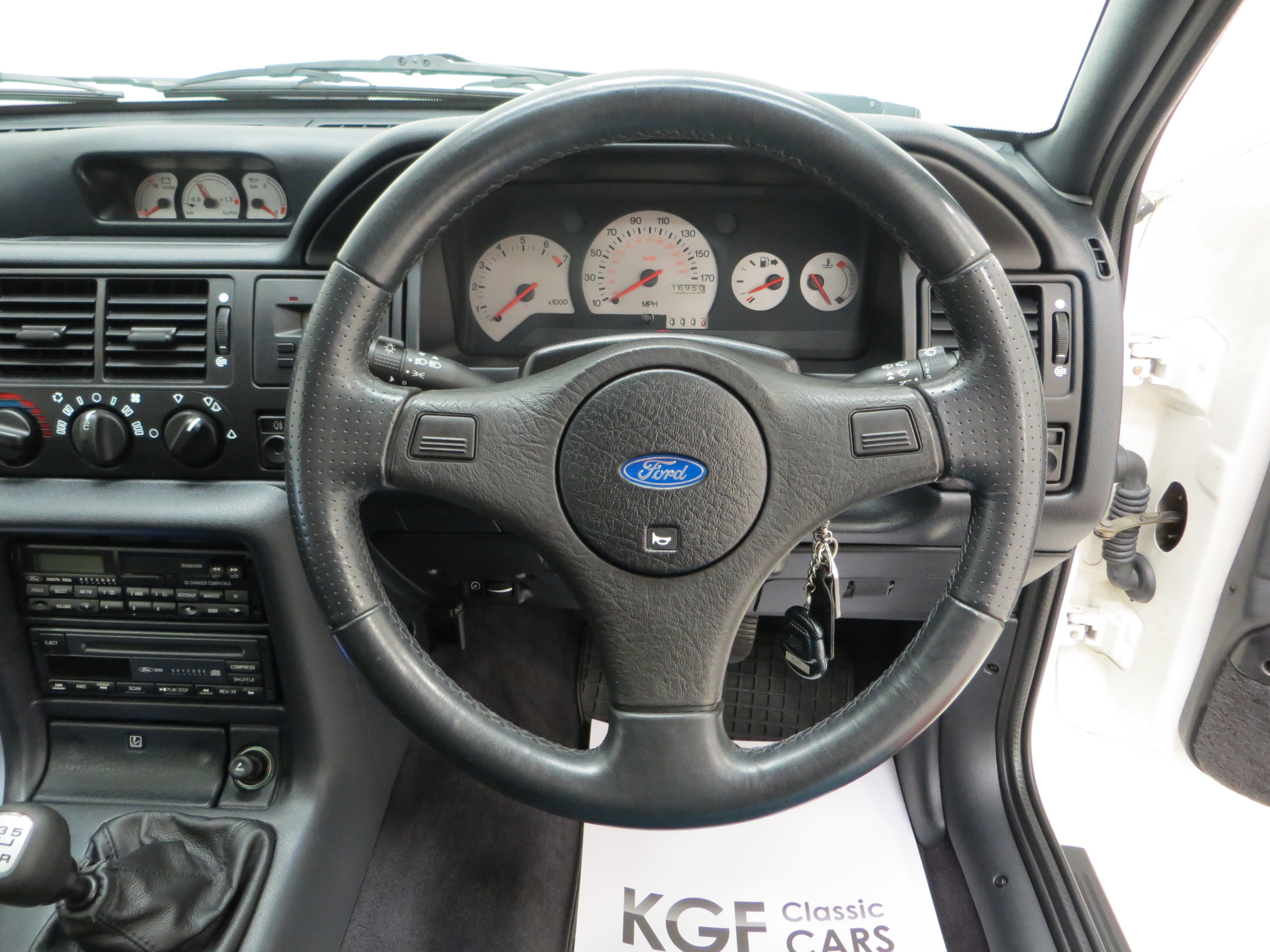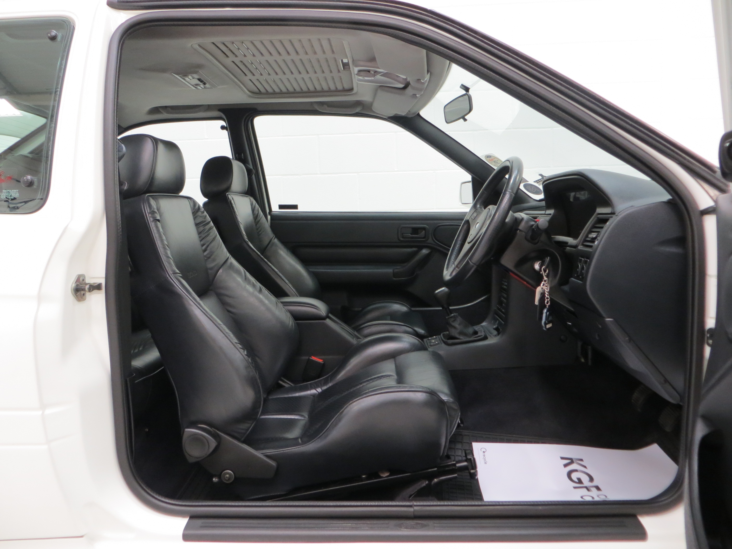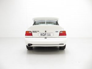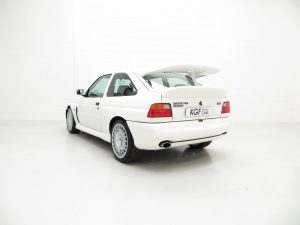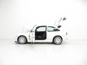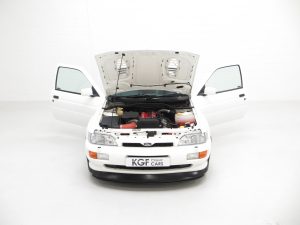 Built at the Rheine Assembly Plant in Germany and registered new on the 8th December 1992 by Ford RS Dealer, Grays of Guilford, making this model one of the highly sought-after 2,500 large turbo homologation specials. The supplying dealer wrote to the first owner, Mr Christopher Pegg, confirming his request to have the car delivered to his home address prior to registration with the omission of window etching, fitting of front spoiler, fitting of number plates and to dewax only, not valet the car. Mr Pegg cossetted his pride and joy covering just 2,469 miles before selling the car to Kevin Rogers after 10 years in August 2002. Mr Rogers worked closely with Mark Burley, the owner of Grove Garage who confirms in a letter dated 7th March 2016 that he ‘personally serviced the car and also completed the power upgrade conversion, Ahmed Bayjoo spent several days mapping the car on the road and it was fitted with one of our first prototype rear beam setups which to this day are still manufactured and sold.’