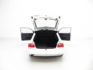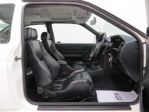 Body colour front bumper with black lower splitter, louvred bonnet air intakes, wing air extraction grilles, aerodynamic rear wing with lower boot spoiler, electro-luminescent instrument cluster, oil pressure gauge, turbo gauge, voltmeter, quartz digital clock with ambient temperature, delayed courtesy light, map reading lights, glove box illumination. Factory Options: Luxury Pack comprising of; Opening rear quarter windows, electrically operated and heated door mirrors, ‘Quickclear’ heated windscreen, heated washer jets, three-spoke leather covered steering wheel, central double locking, tailgate release, lights on warning, rear centre armrest, rear head restraints, sunroof, electric windows. Air conditioning, CD player model 2040.
