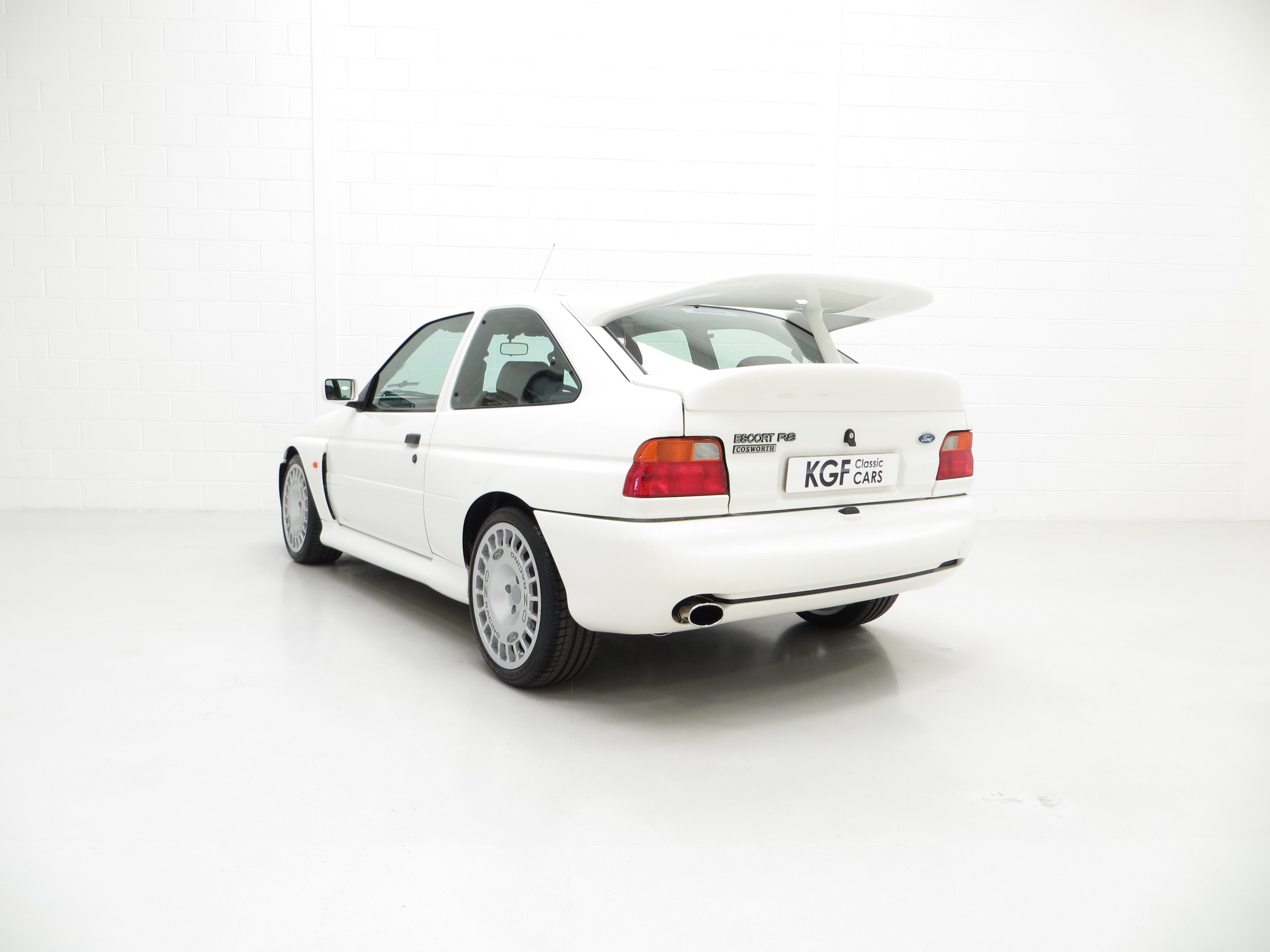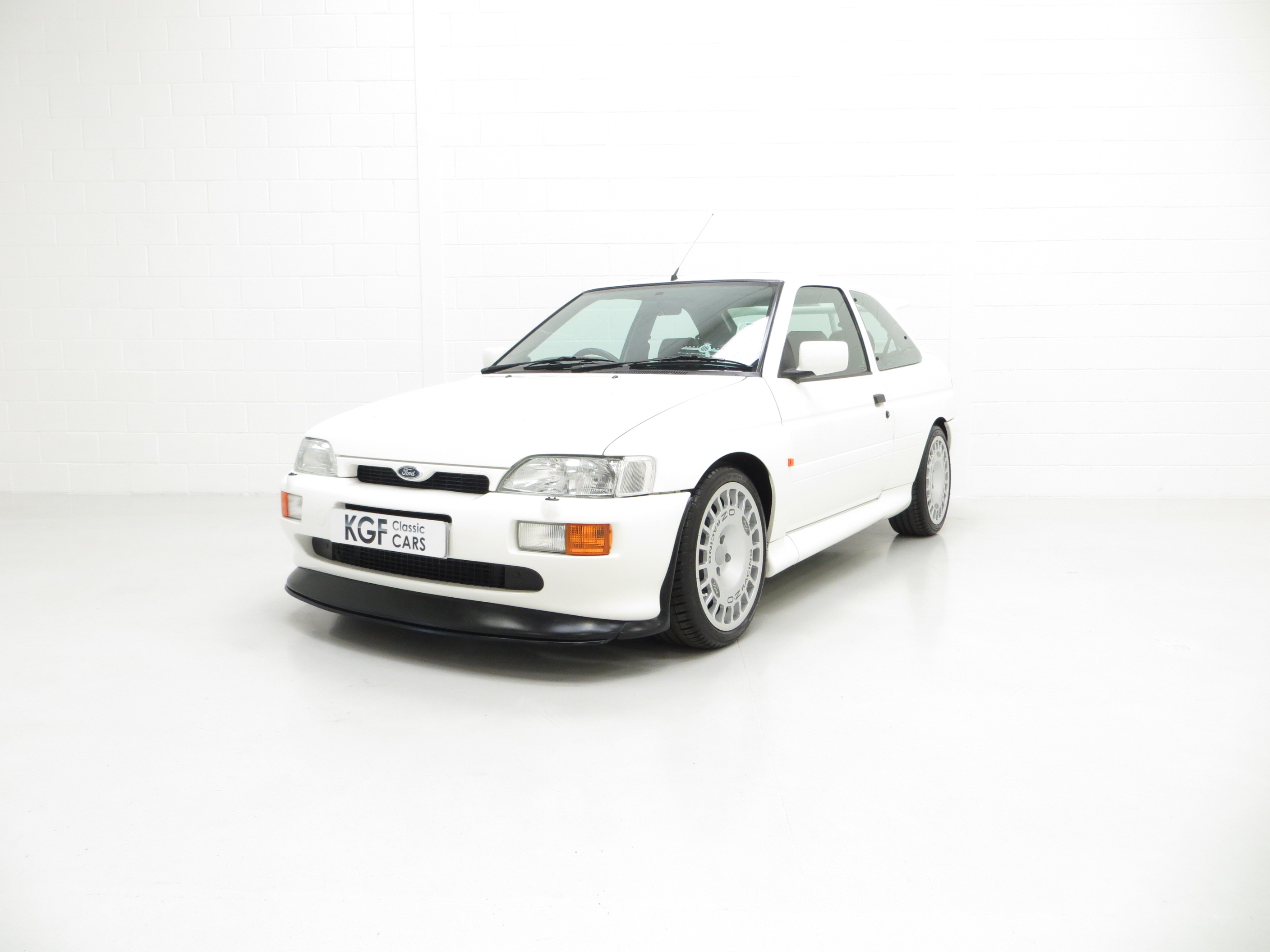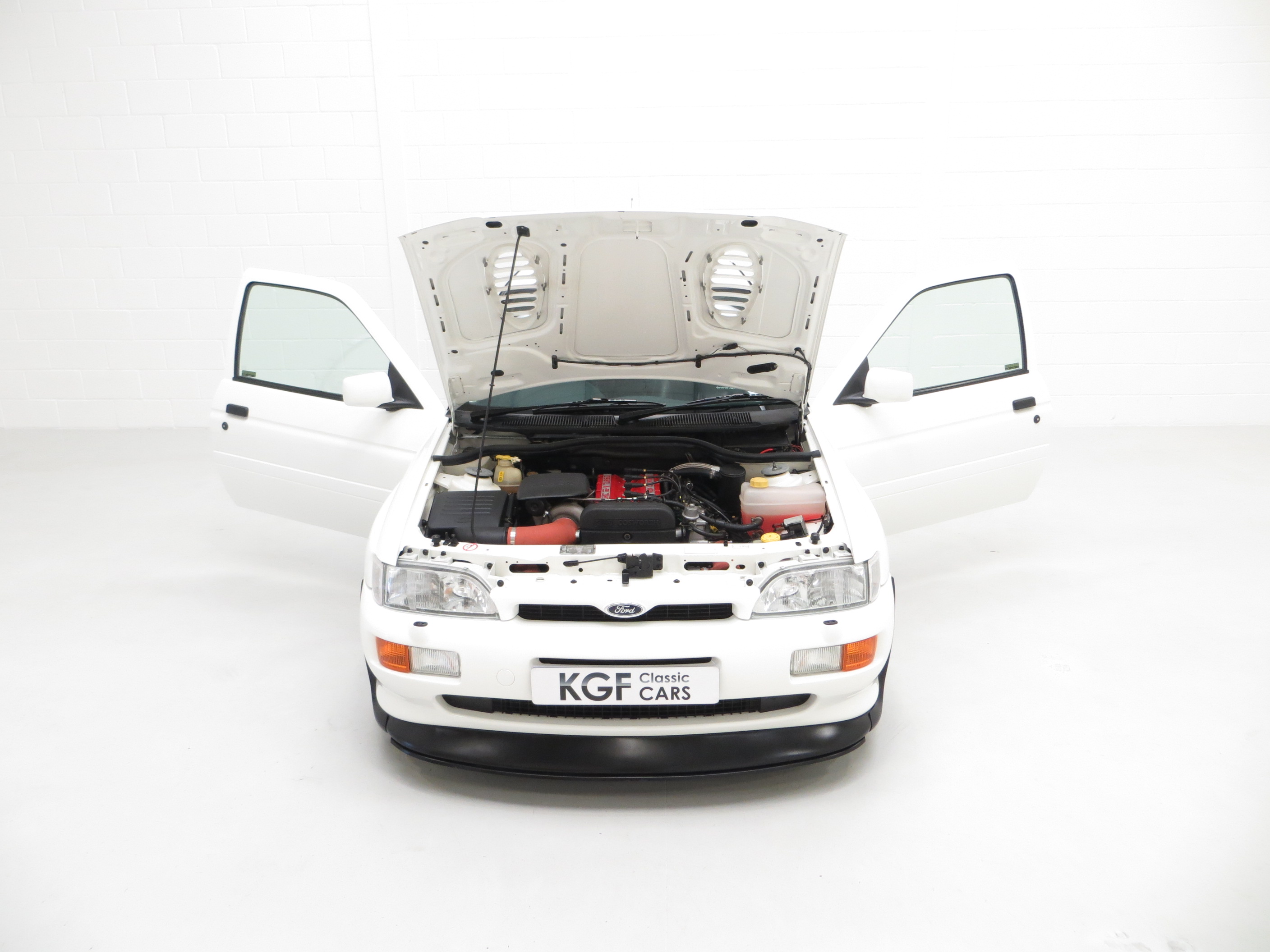 The Ford Escort RS Cosworth was a sports derivative and rally homologation special of the fifth generation Ford Escort. It was designed to qualify as a Group A car for the World Rally Championship. It was available as a road car from 1992-96 in limited numbers from Ford’s Specialist Vehicle Engineering, (SVE), team. It combines the hand-assembled engine expertise of Cosworth and the coach-building crafts of Karmann. In order to accommodate the larger Cosworth engine and transmission Ford developed the car around the chassis and mechanicals of its predecessor, the Sierra Cosworth. A very rare car with only 7,145 examples being produced and this one of the early 2,500 Big Turbo examples built for homologation. (Source Wikipedia, 1995 Edition One RS Brochure and the RS Owners Club).