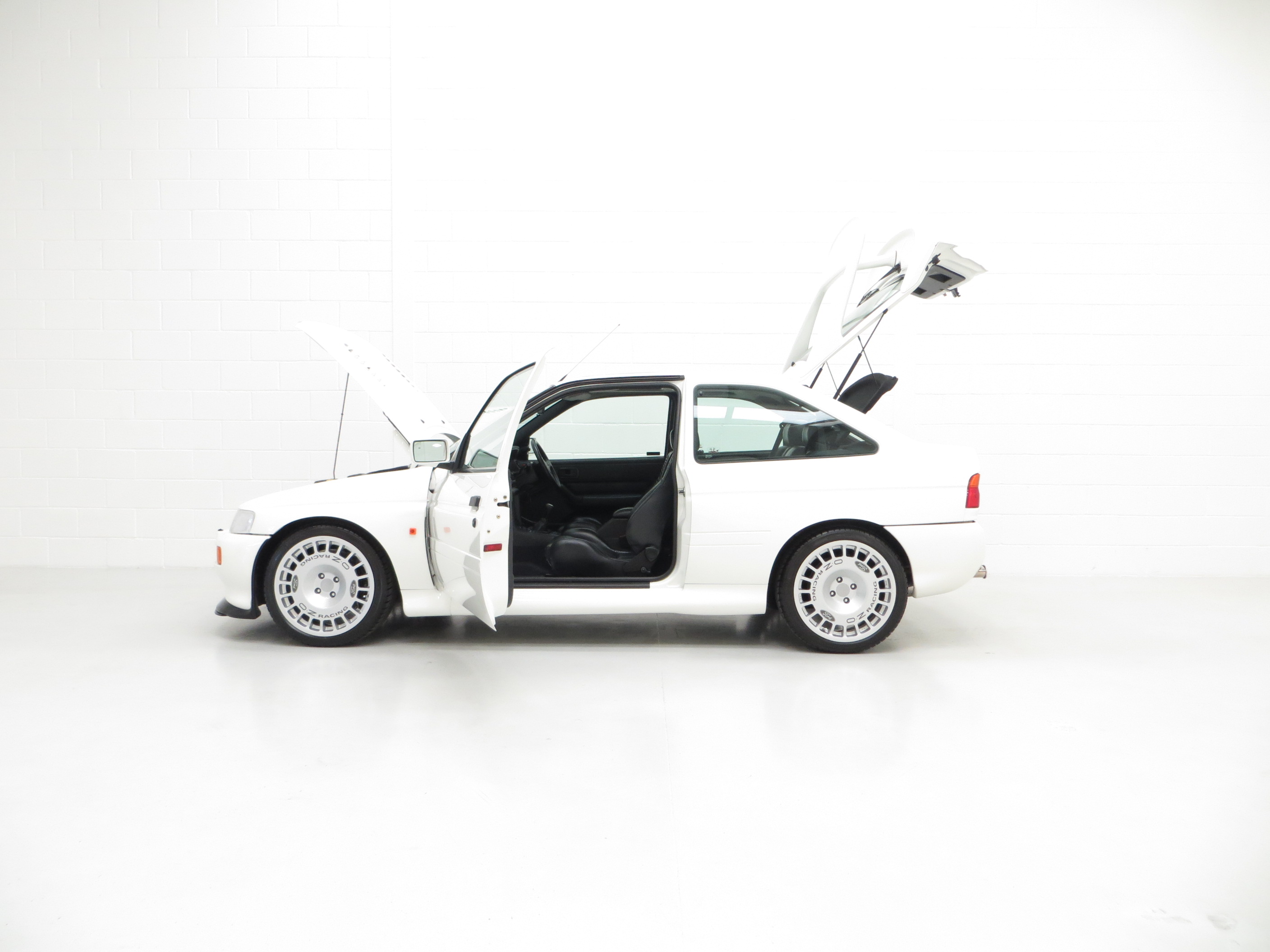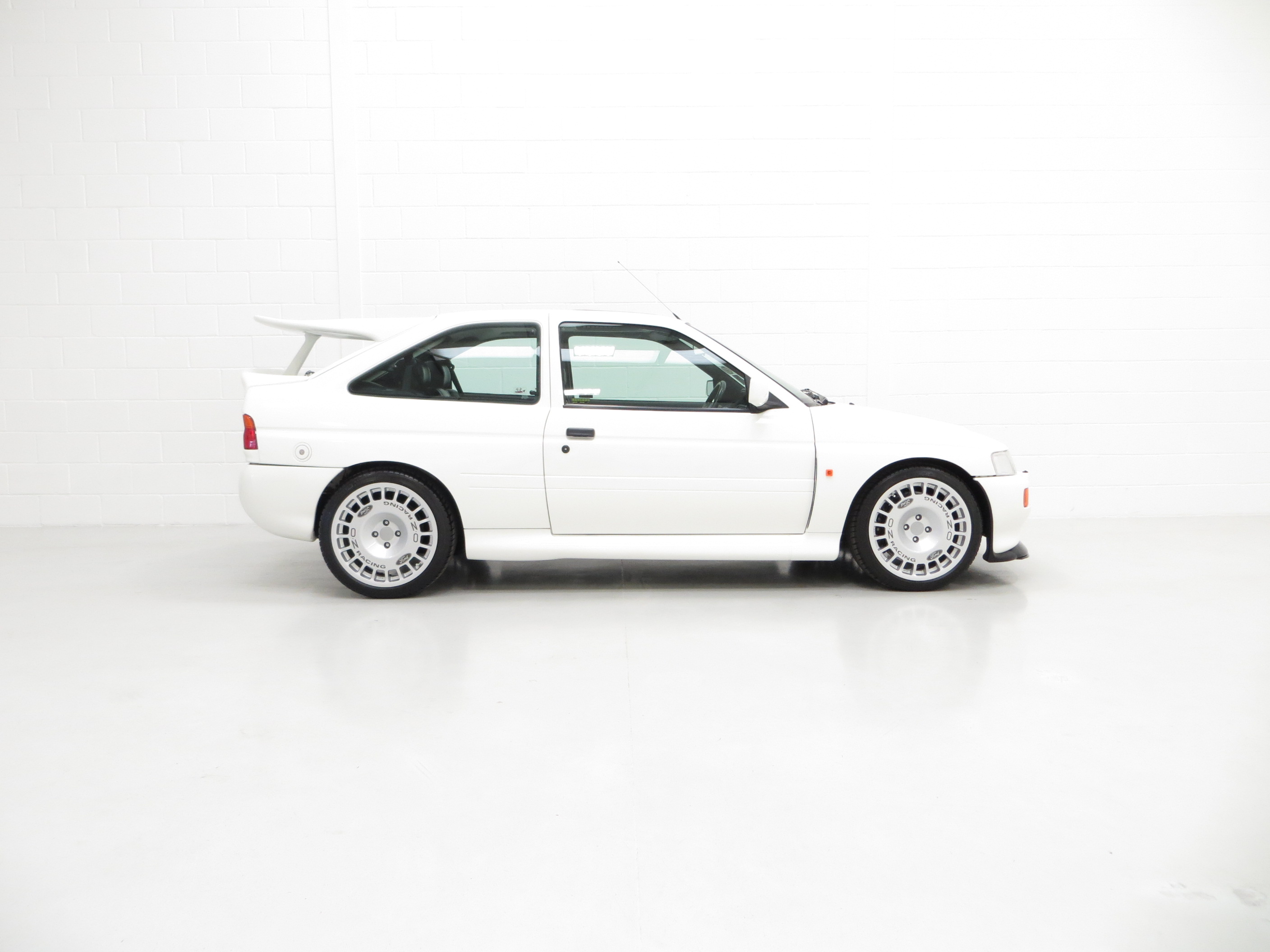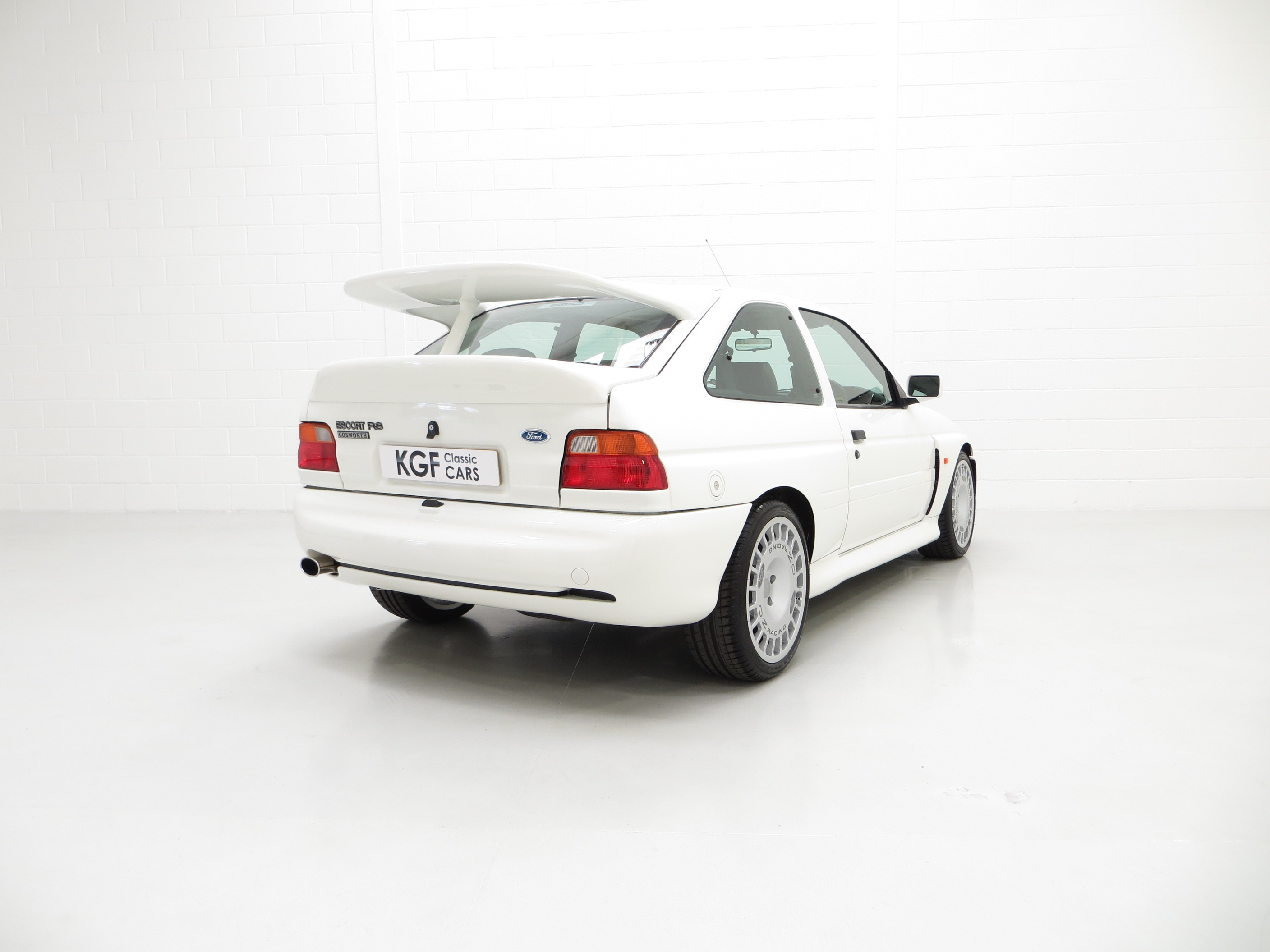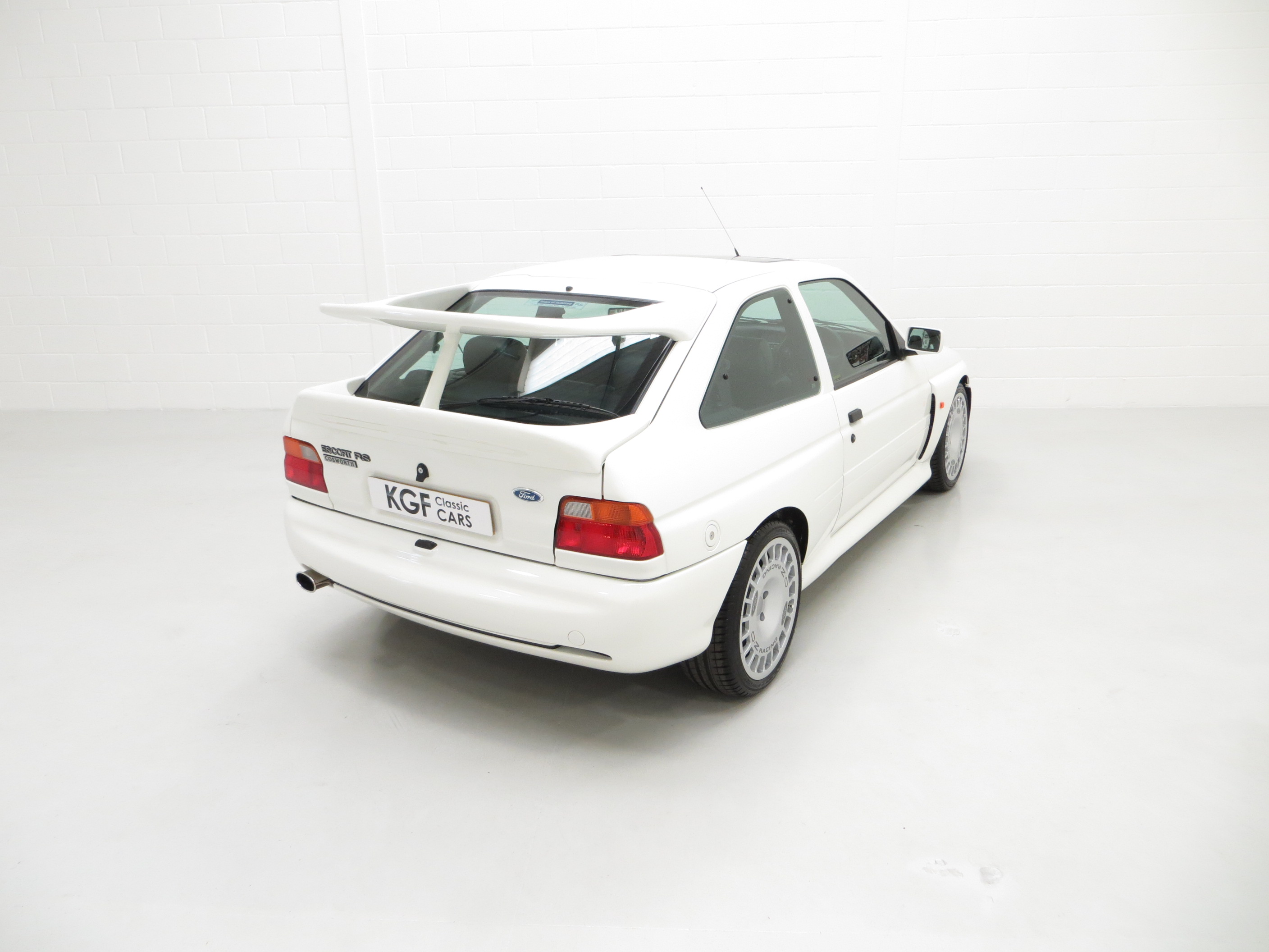 The Ford Escort RS Cosworth was a sports derivative and rally homologation special of the fifth generation Ford Escort. It was designed to qualify as a Group A car for the World Rally Championship. It was available as a road car from 1992-96 in limited numbers from Ford’s Specialist Vehicle Engineering, (SVE), team. It combines the hand-assembled engine expertise of Cosworth and the coach-building crafts of Karmann. In order to accommodate the larger Cosworth engine and transmission Ford developed the car around the chassis and mechanicals of its predecessor, the Sierra Cosworth. A very rare car with only 7,145 examples being produced and this one of the early 2,500 Big Turbo examples built for homologation. (Source Wikipedia, 1995 Edition One RS Brochure and the RS Owners Club).
