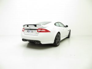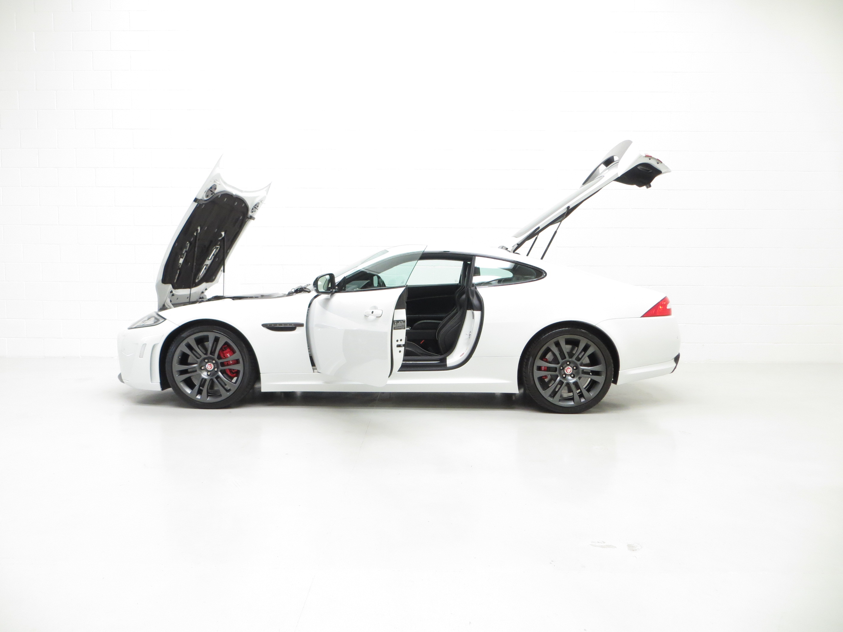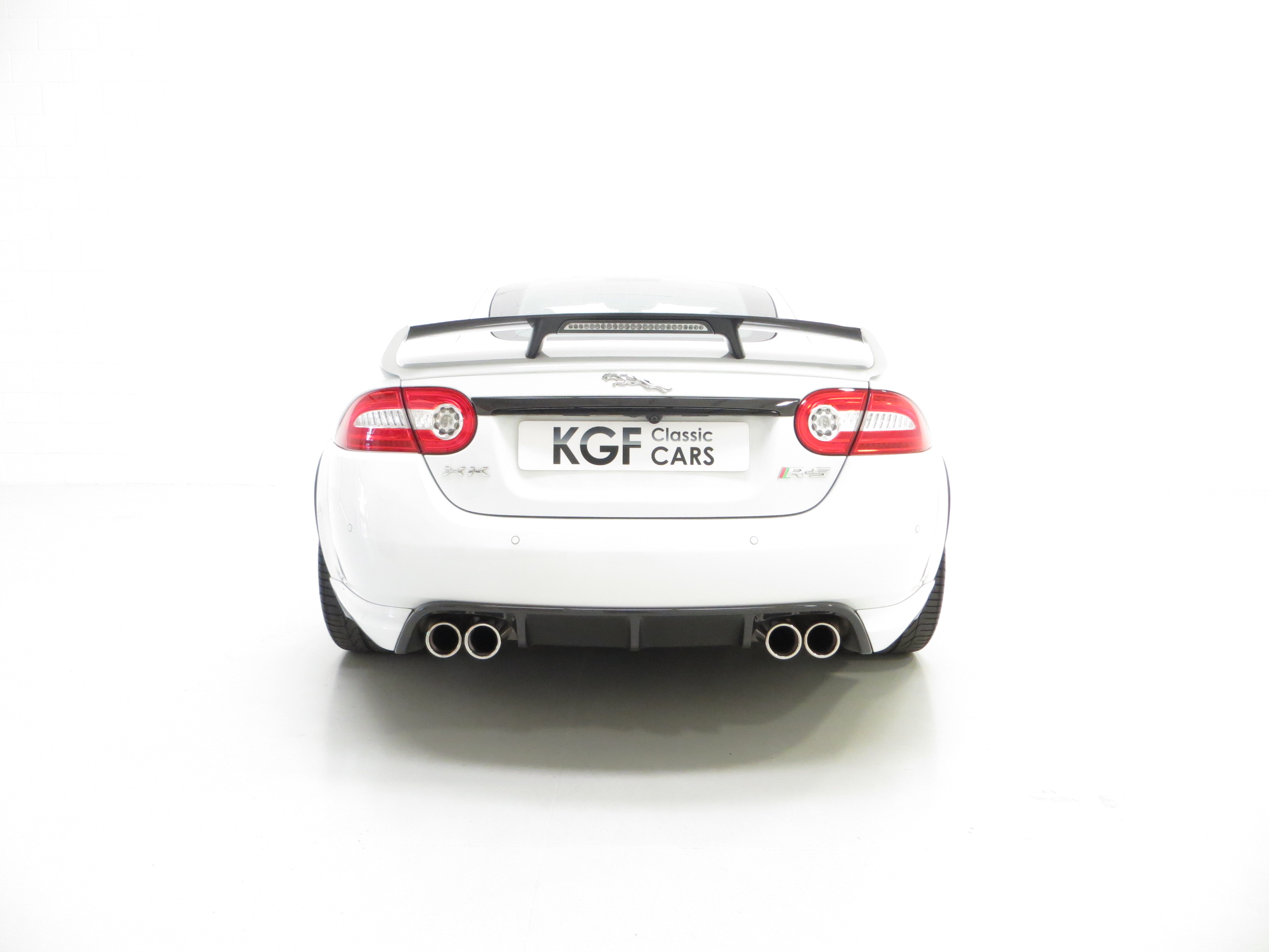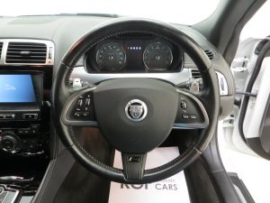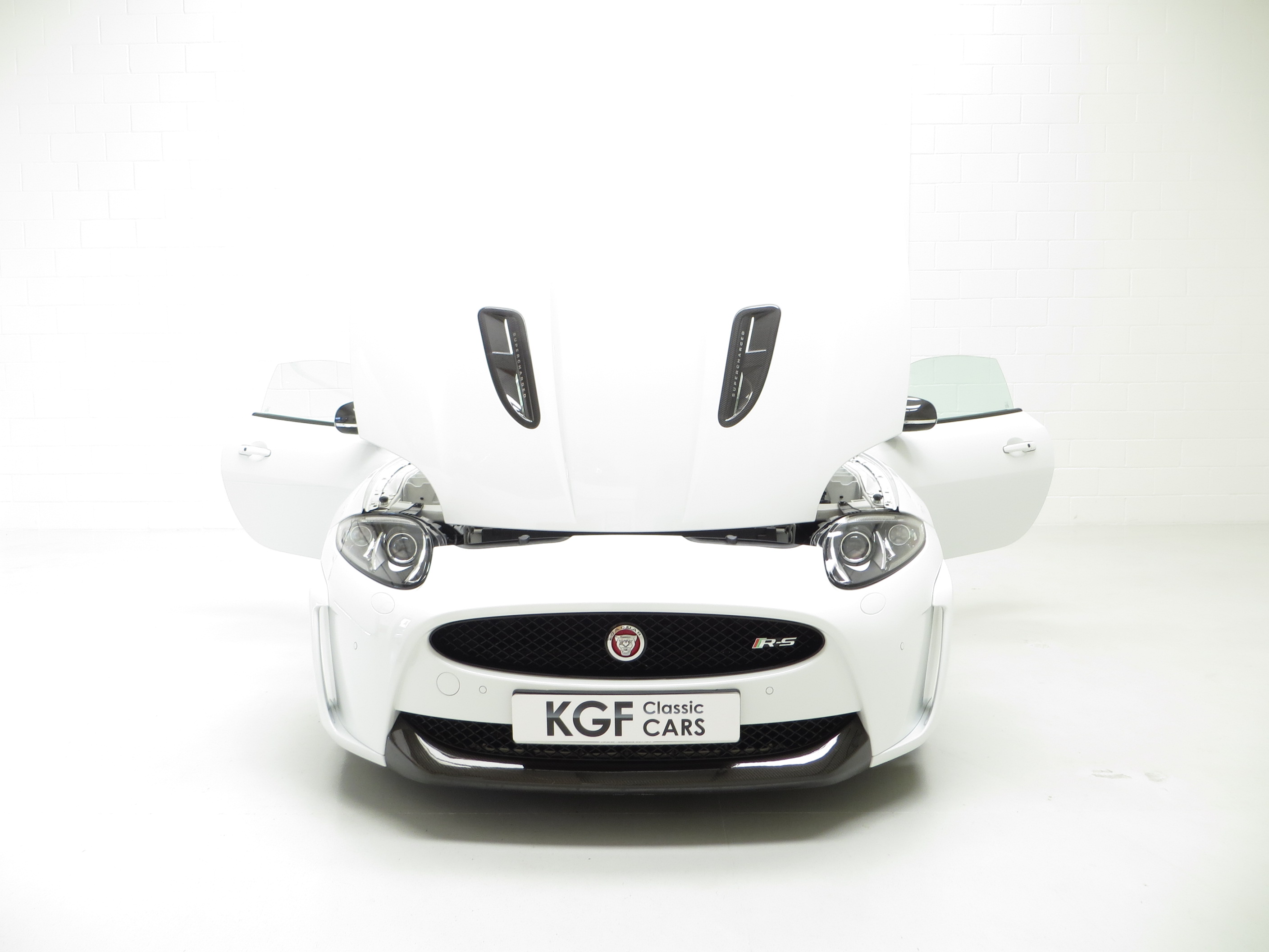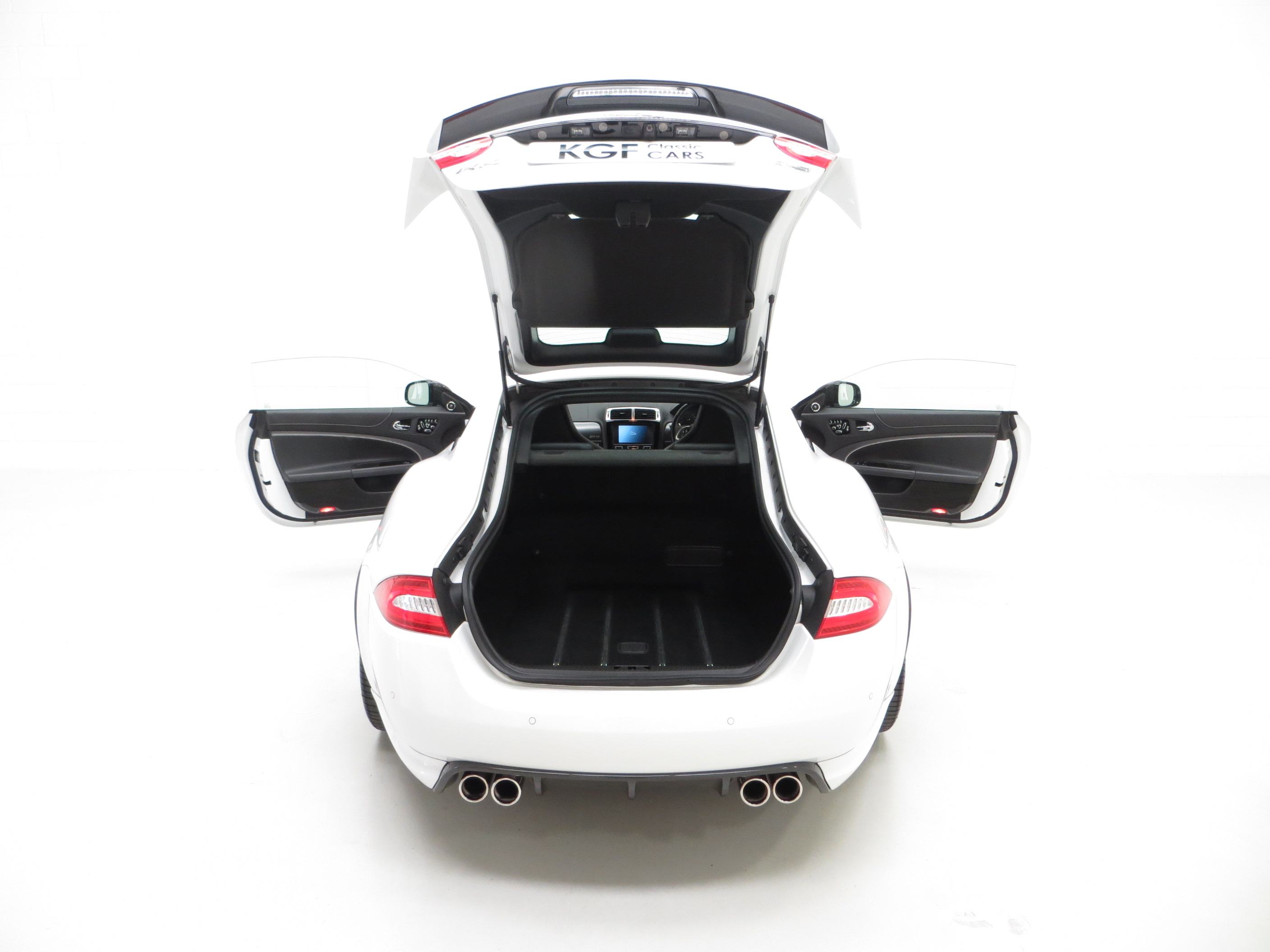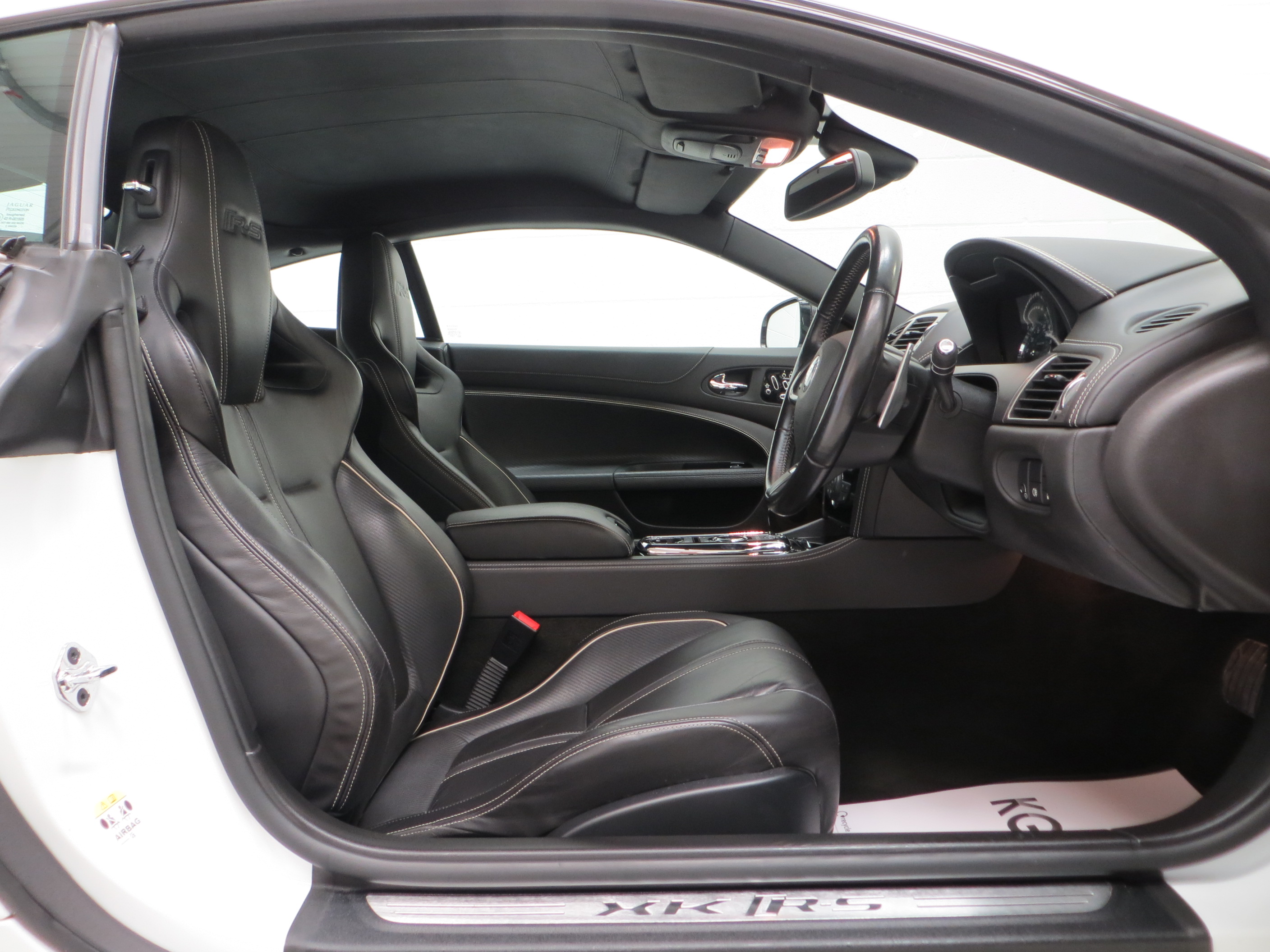 Rear apron featuring carbon fibre diffuser, gloss black power vents, rear wing with carbon fibre inlay, Bi-Xenon with LED daytime running lights, heated folding door mirrors, front and rear parking sensors, JaguarDrive Control with Winter and Dynamic Mode, cruise control with speed limiter, auto headlights and wipers, bright stainless steel pedals, electric memory seats and steering column, heated steering wheel, XKR-S tread plates, dual zone climate control, keyless start, message centre, 7 inch colour touch screen display with navigation, Bluetooth, DAB radio, Bowers & Wilkins 525W surround sound system, 6 disc in-facia CD. Factory Options; Carbon fibre engine cover, reverse park camera, Piano black veneer.