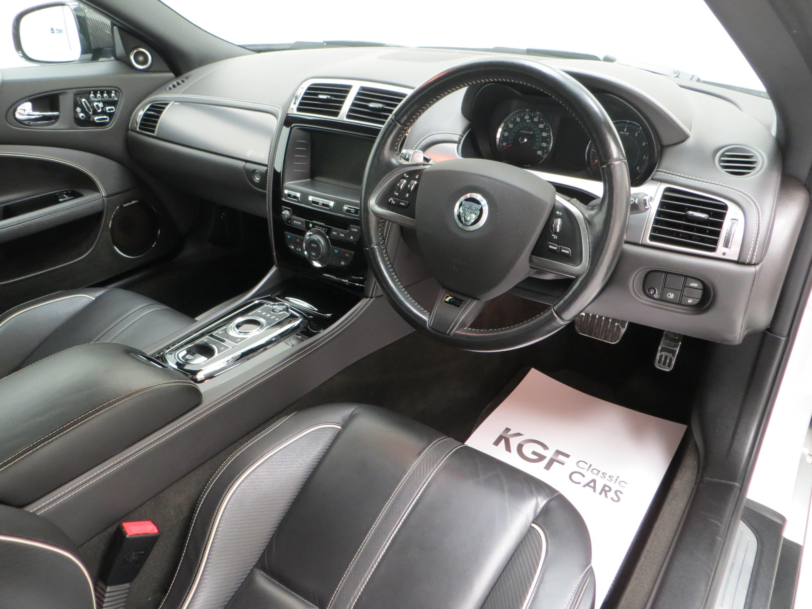 The jewel in this ultimate Jaguar is the 5.0 litre V8 supercharged 550PS petrol engine developing a thumping 680Nm of torque. Top speed is limited to 186mph and 0-60mph is despatched in 4.2 seconds. The performance active exhausts with quad tailpipes sound amazing and with annual full Jaguar main dealer service history the next owner will have reassurance. Opening the bonnet will reveal a spotless engine bay and the desirable expensive carbon fibre engine cover. The 6-speed electronic automatic transmission with Jaguar Sequential Shift is controlled via the JaguarDrive Selector and offers the perfect combination of a Grand Tourer and outright sports car. Tremendous.