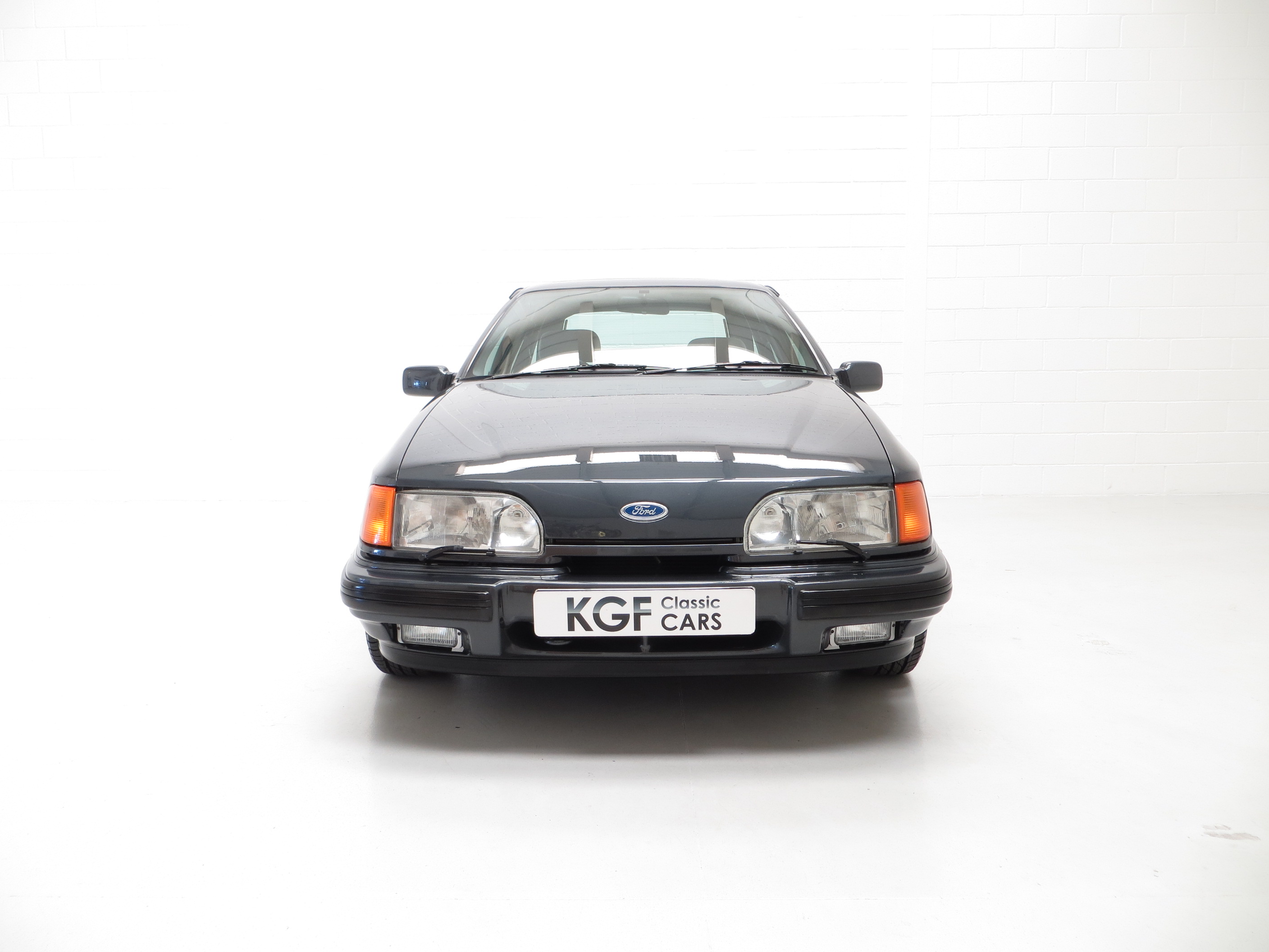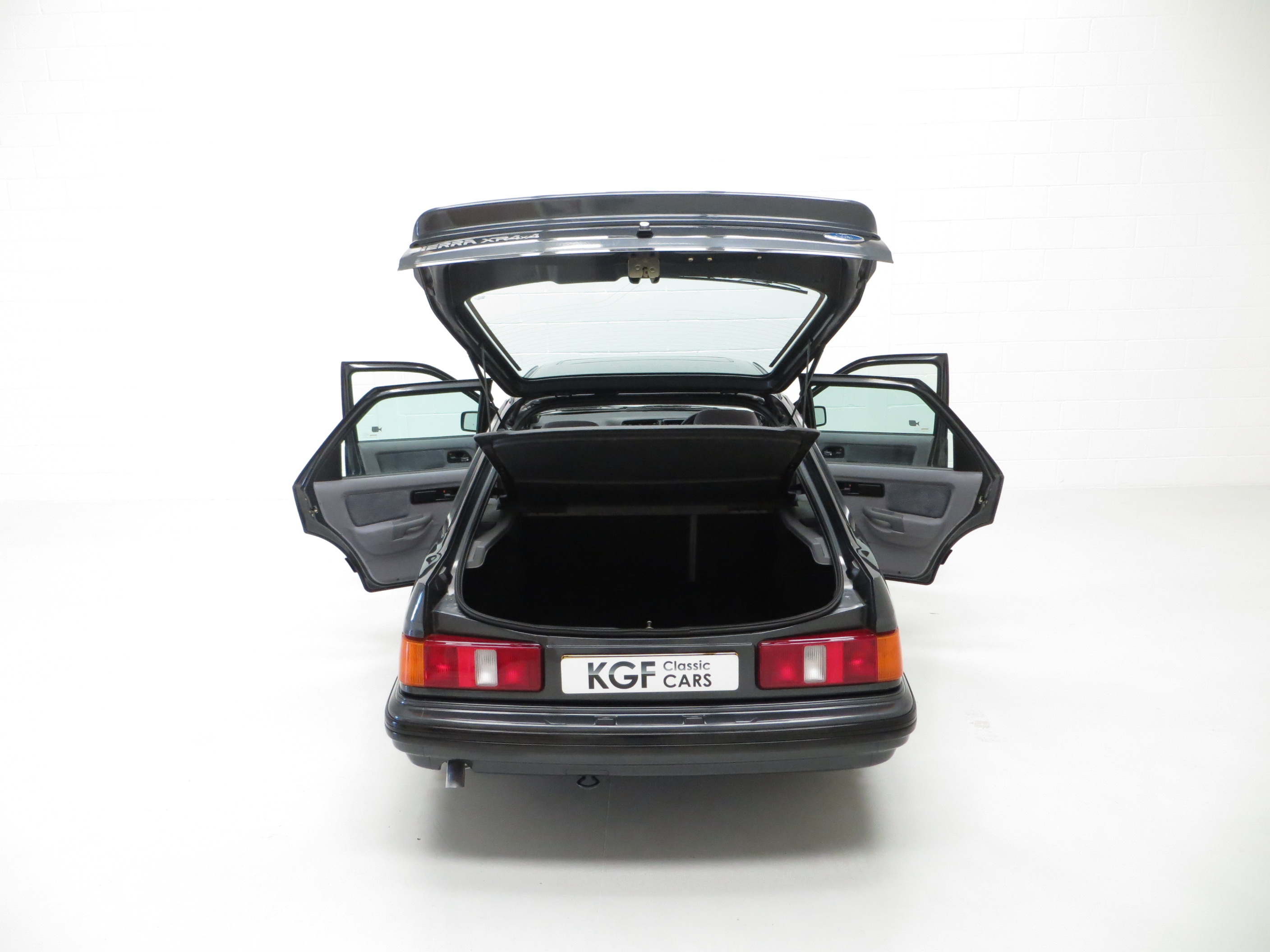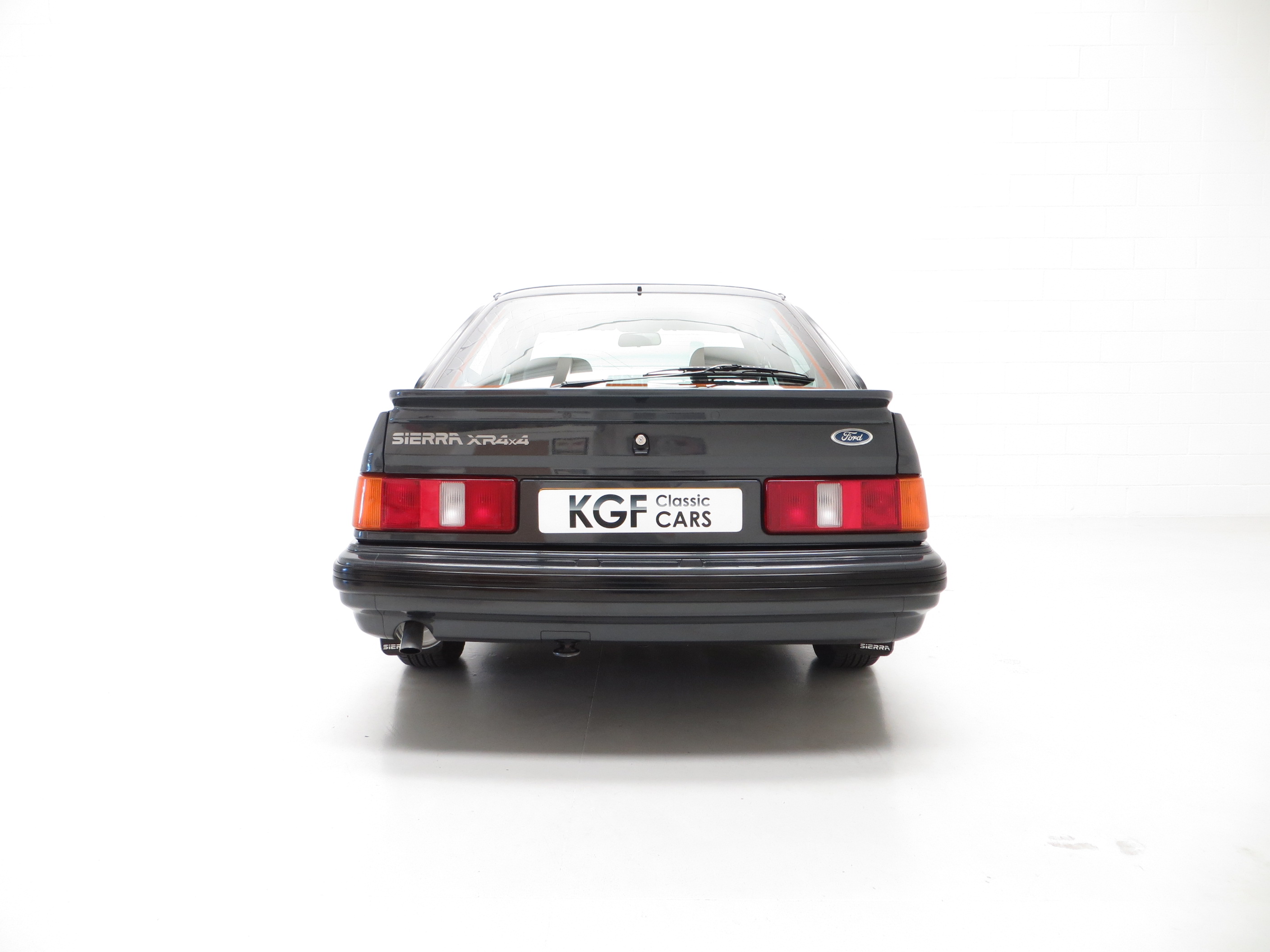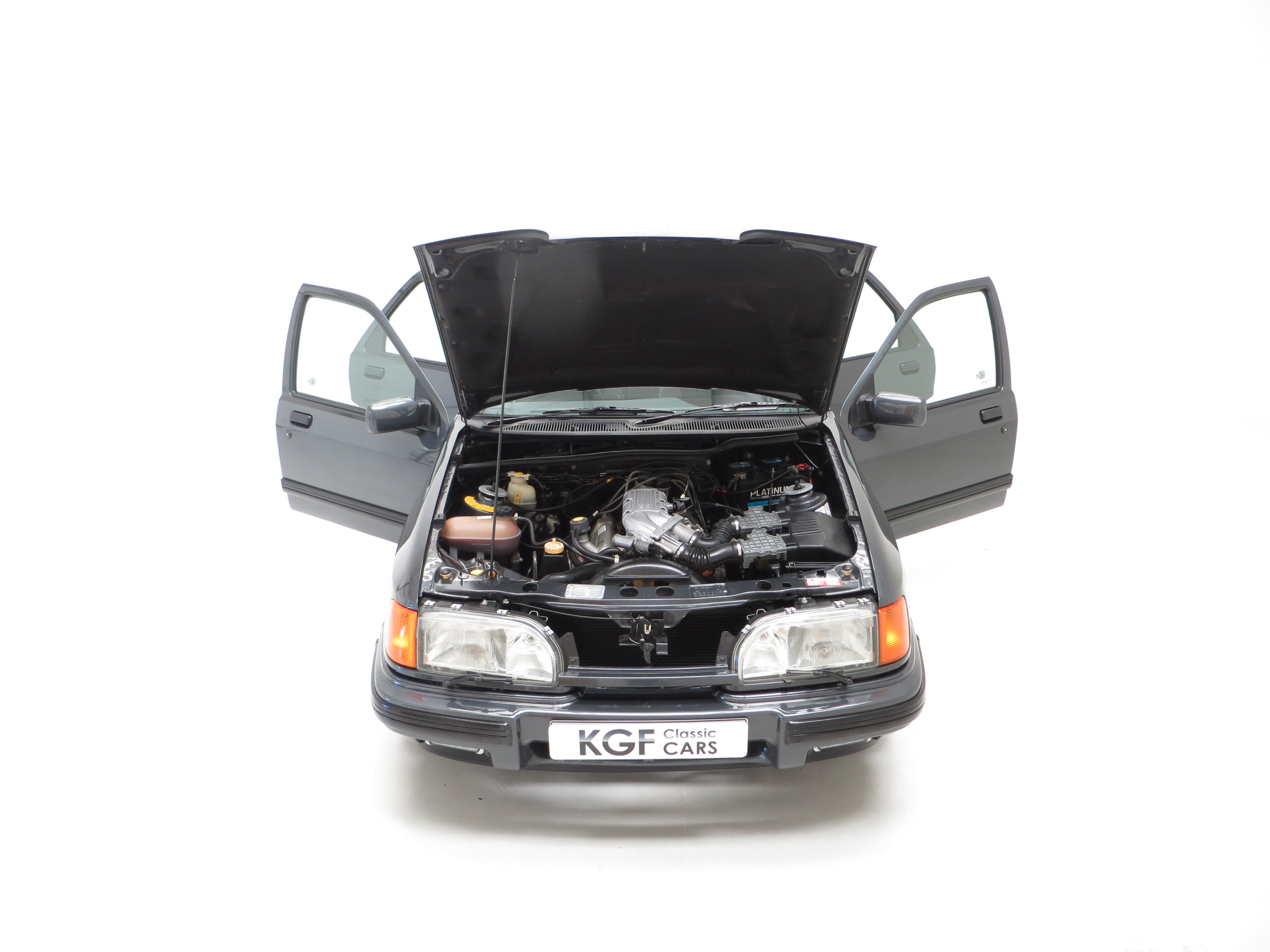 This outstanding Ford Sierra XR4x4 is simply incredible having covered just 22,404 miles from new with only two owners. The factory optional and original Flint Grey Metallic paintwork, (Code T9), is exceptionally clean with a deep polished and uniform shine throughout. Close scrutiny will reveal nothing other than miniscule markings and a virtually undetectable ding to the boot lid. Remaining in completely standard form, all trim sections and coloured coded body styling remain in near perfect condition and the original glass displays factory etching. The headlamps are correct Carello fitment and all other light clusters original Ford items. The underside is completely untouched and a welcome absence of excess applied underseal allows easy inspection to see just how clean this car is. Very special and certainly one of the best remaining examples.