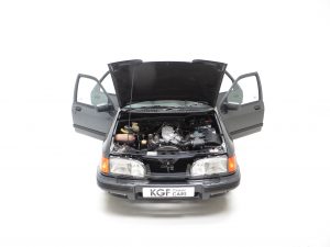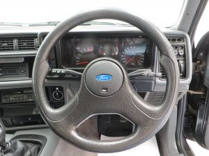 Only the Sierra Sapphire Cosworth in the range boasted more power at the time than brilliantly sounding 2.9 EFi V6 engine fitted to this XR4x4. Featuring the robust EEC IV engine management system, the power output was quoted at 150bhp at 5700rpm and 233Nm of torque at 3000rpm, achieving a top speed of 127mph and 0-60mph in 8.2 seconds. Remaining in totally standard specification, the engine bay is spotless and displays factory plates, stickers and slam panel stamp and the original inner wings with Ford emblem and date stamps clearly visible. Even the green PDI dabs haven’t worn away! The permanent four-wheel drive system offers real sure-footedness and the five-speed gearbox is light and effortless.