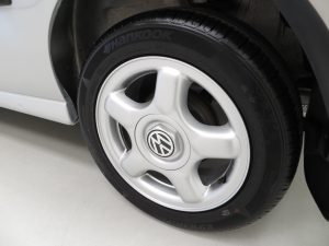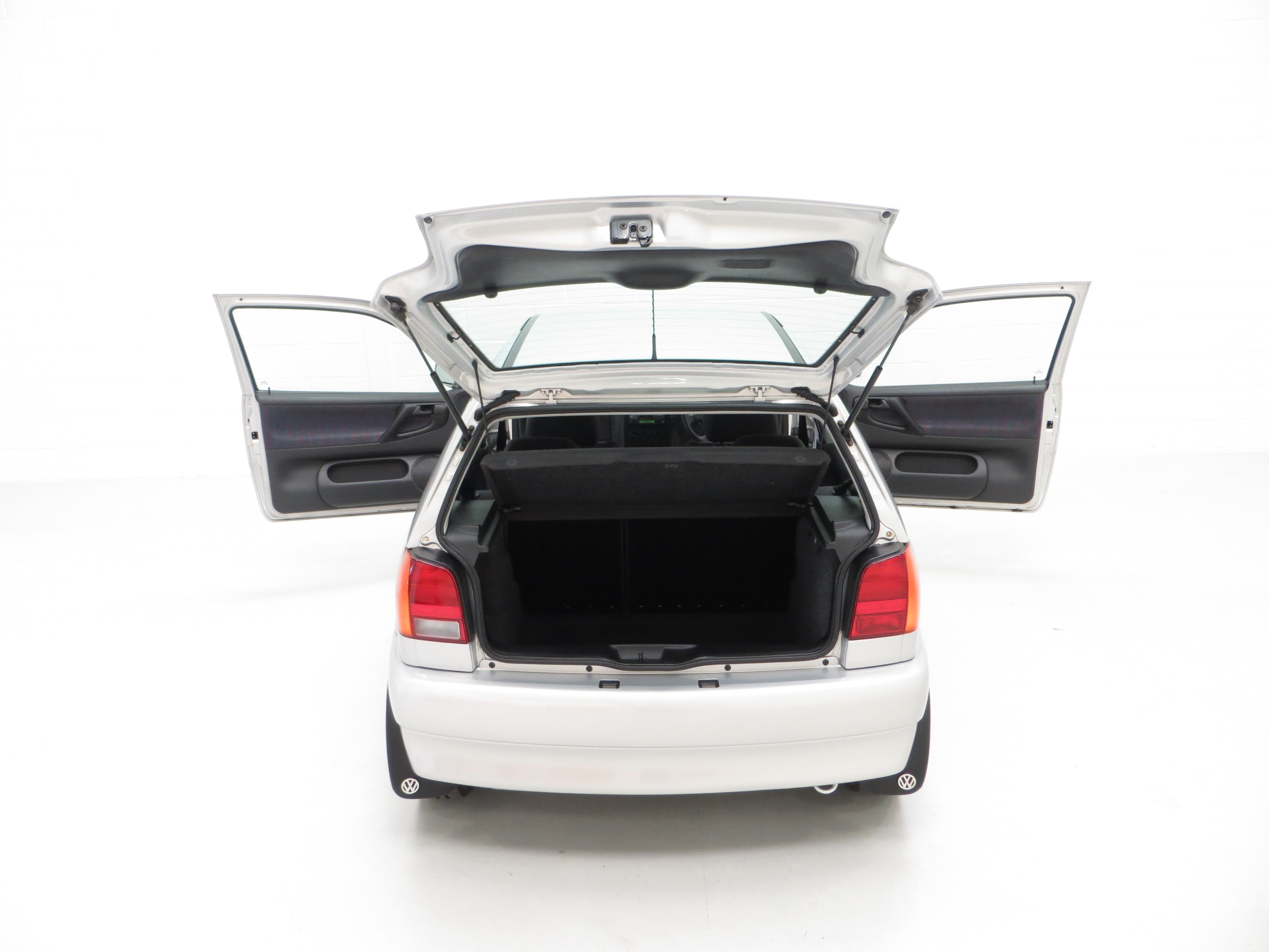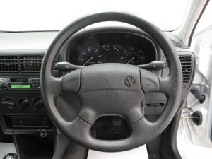 Driver’s airbag, side impact beams, rigid safety cell with front and rear crumple zones, green tinted heat insulating glass, halogen headlamps, power assisted steering, engine immobiliser, central locking, electric front windows, electric heated door mirrors, front and rear adjustable head restraints, Sony Volkswagen XR-3759 radio cassette. Factory Options; Metallic paint, alloy wheels. Dealer accessories; Mud flaps, tailored Polo floor mats, locking wheel bolts.
