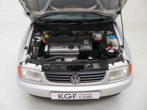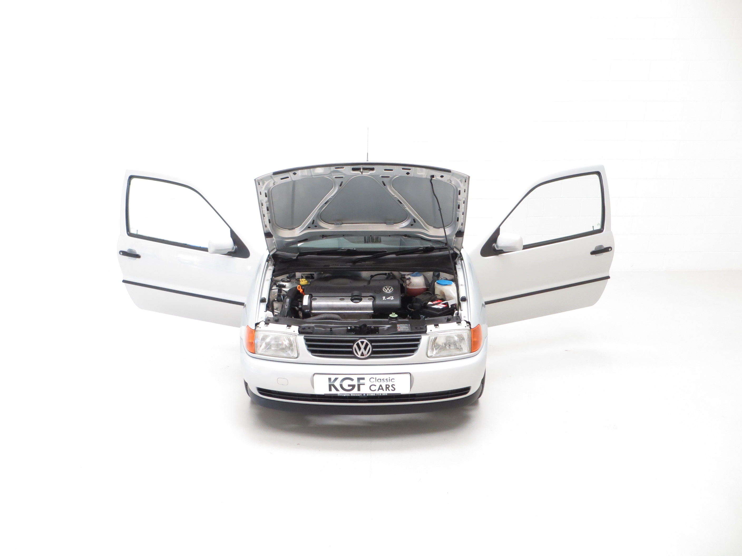 This wonderful Polo 1.4CL has covered just 22,608 miles in the ownership of Mother and Son from new. Finished factory optional Satin Silver Metallic, (Code X1), the original panels are pin straight and the paint finish boasts a bright uniform shine throughout. The car has been garaged and truly cherished throughout and the underside is in excellent untouched condition. Meticulous close scrutiny reveals little more than touched in frontal stone chips and all trim sections are virtually as new with only some very light marks where the offside door rubbing strip has served its purpose. An exceptional example throughout and commensurate with the very low mileage credentials.