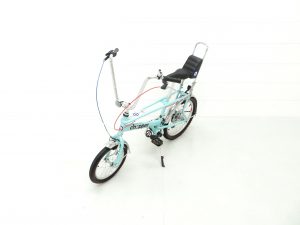 The Raleigh Chopper, although an icon of the 1970’s and where it saw the majority of its phenomenal success, was first launched in 1969 by the Raleigh Bicycle Company in Nottingham, England. The bikes design was influenced by dragsters, chopped motorcycles and beach buggies and it quickly became a cultural icon, especially among young people. Throughout the evolution of the Chopper from the Mark 1 to the Mark 5, the essence of the design has changed very little, but certain safety flaws linked to the Mark 1 and 2 had to be overcome following negative press in the 1970’s where it was in some cases labelled as a dangerous toy! These included the tendency for the bike to perform involuntary ‘wheelies’ particularly when giving a friend a ‘backie’ on the long padded high-back seat and also the groin catching T-Bar frame mounted gear lever. Thankfully after an absence of almost 25 years the Chopper was relaunched with a more conventional seat to deter the offering of ‘backies’ and re-siting of the gear lever to the handlebar, a more personal equipment friendly location! Whilst the original Choppers have gained highly collectable status and soaring prices, the limited-edition releases are extremely sought after among collectors.