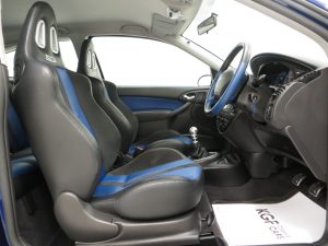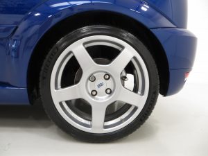Fitted with the thumping Ford 2.0 Duratec RS four-cylinder 16v unit the power output achieved is 212bhp at 5500rpm and 310Nm torque at 3500rpm. The maximum speed is 144mph while 0-60 is dispatched in just 6.4 seconds! The engine bay is clean with factory plates, stickers, labels and wing stamps visible. Correct for an early car is the black throttle cable ‘trumpet’ grommet with blue collar. The sturdy Ford MTX-75 gearbox with a standard heavy-duty AP Racing clutch, as fitted by Ford from new, offers the ultimate rally road car experience.